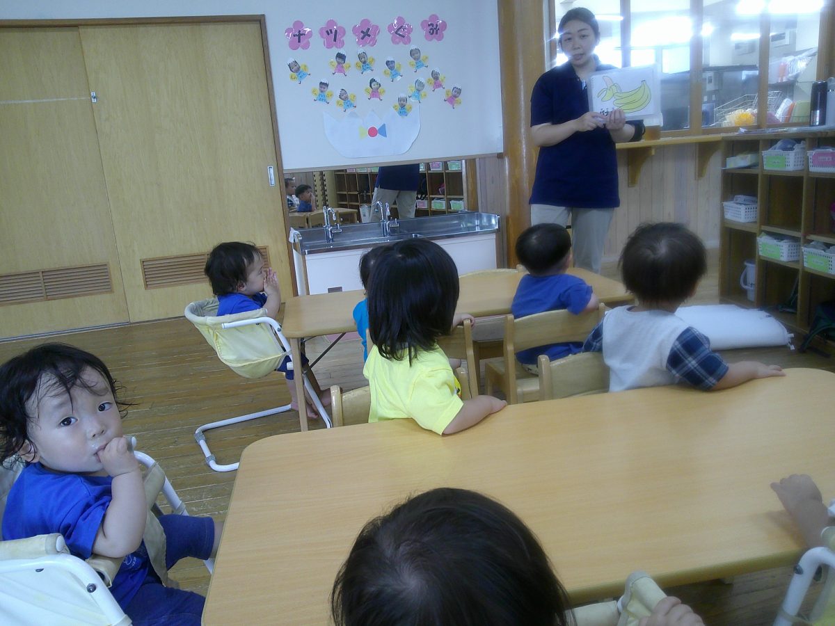 フラッシュカードではカードと先生を良く見ています👀🍌!