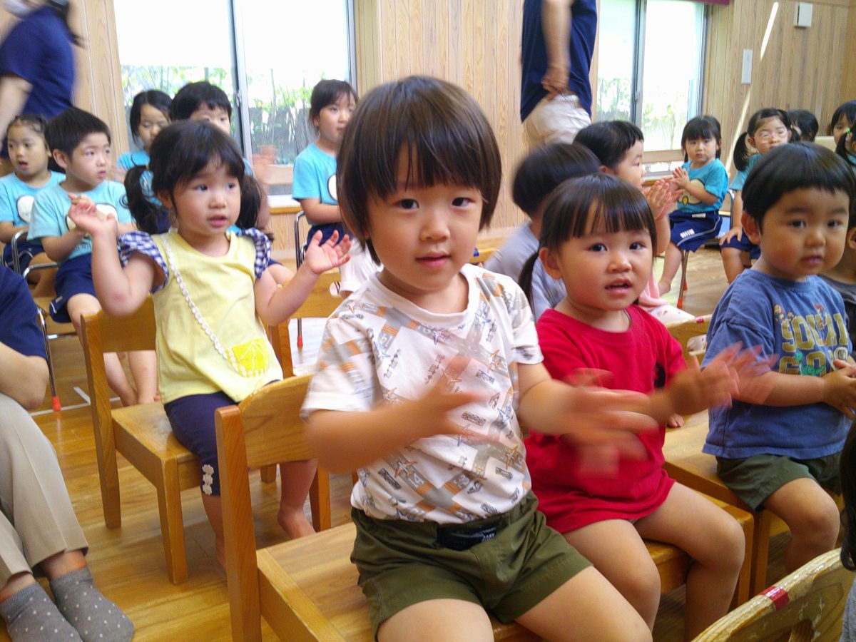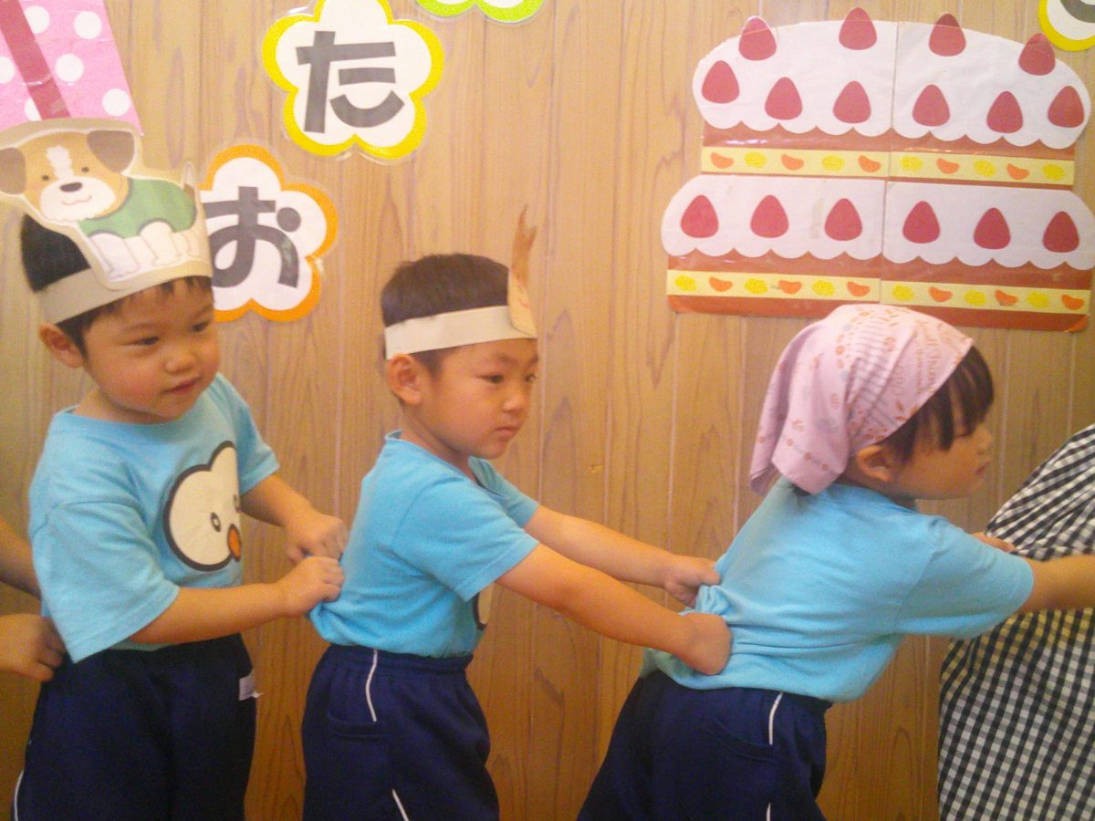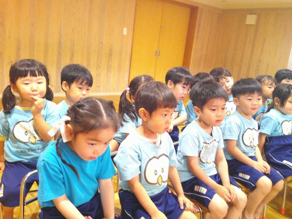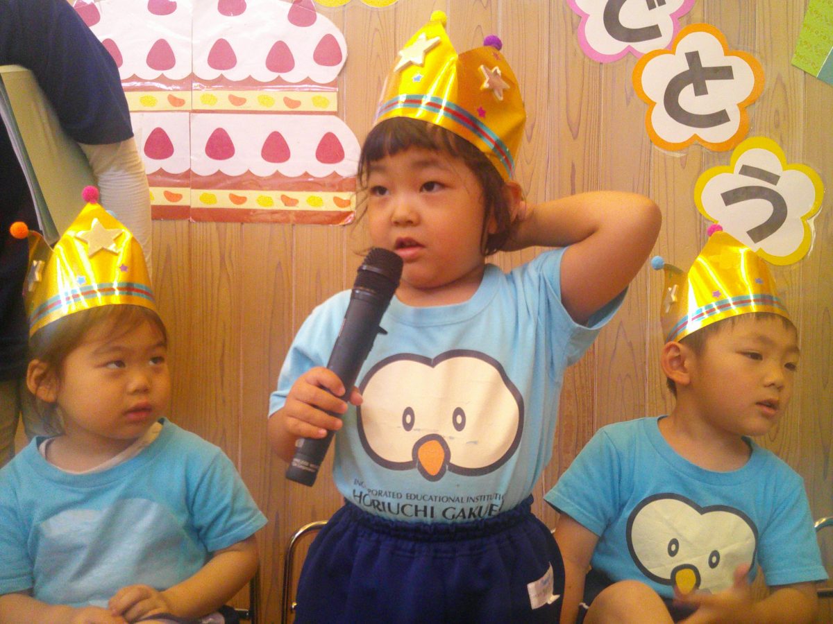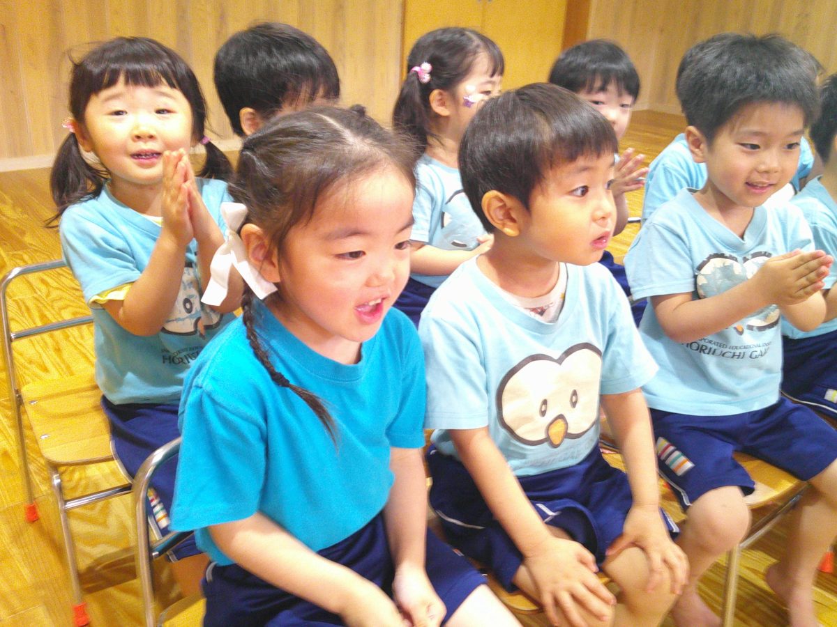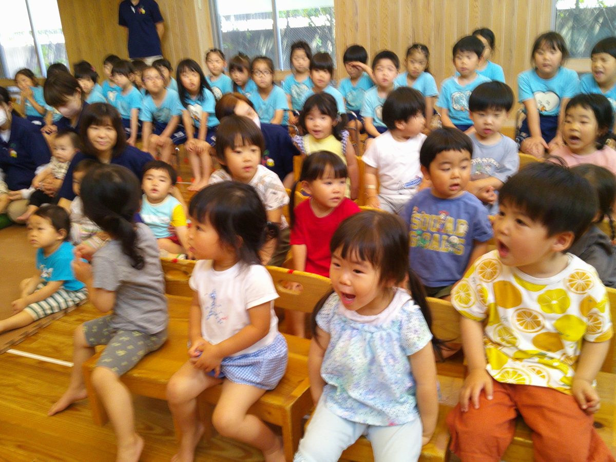 誕生会ではみんな夢中で、出し物や誕生日の友だちを見ていました🎂