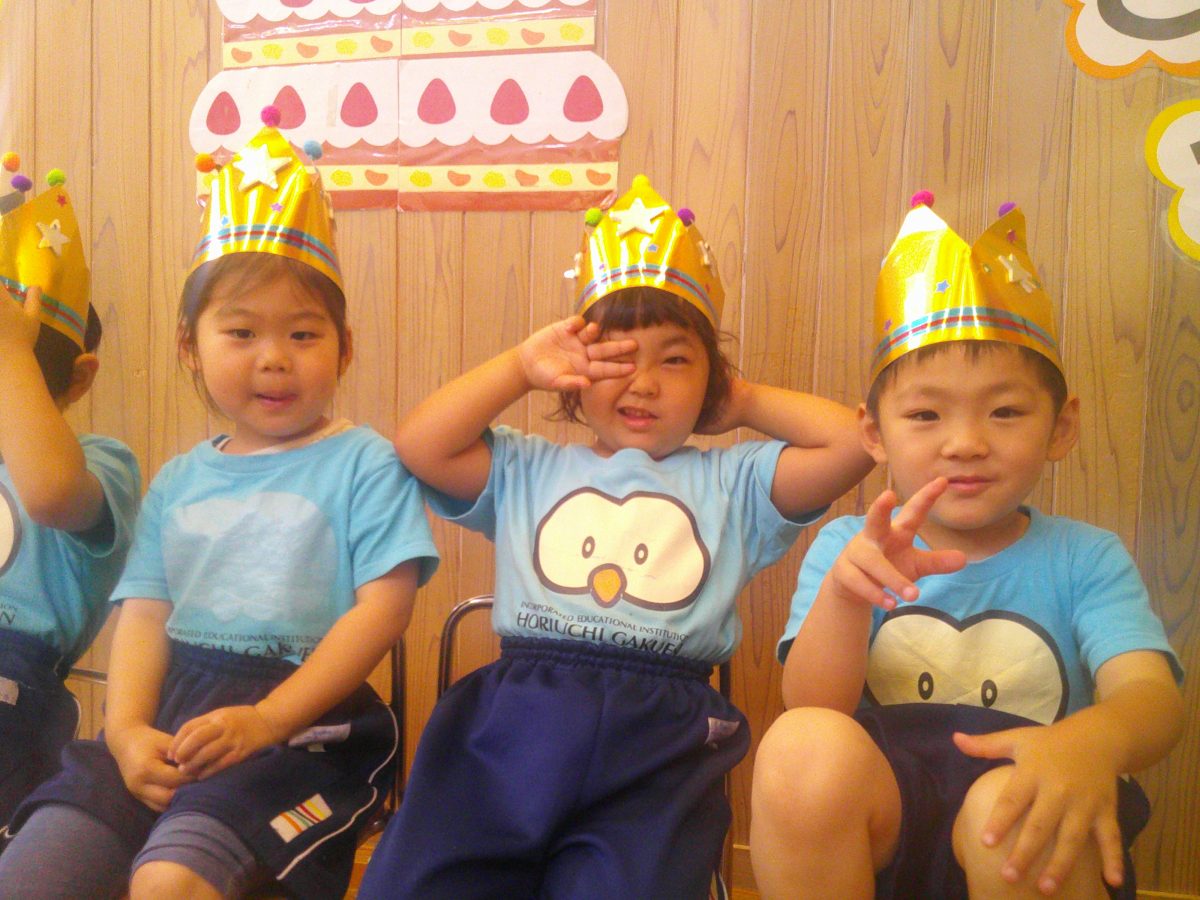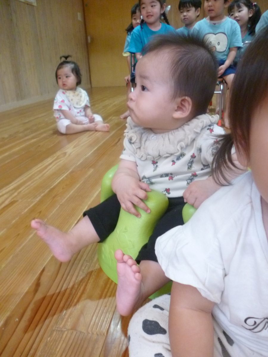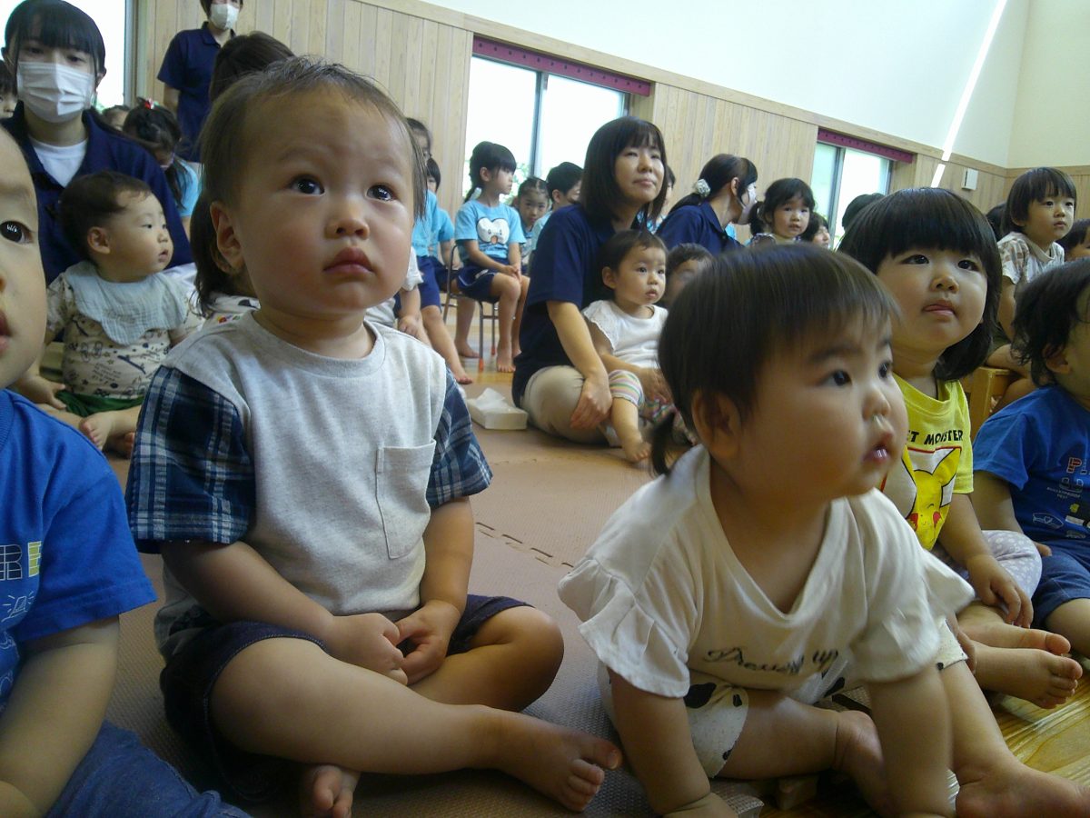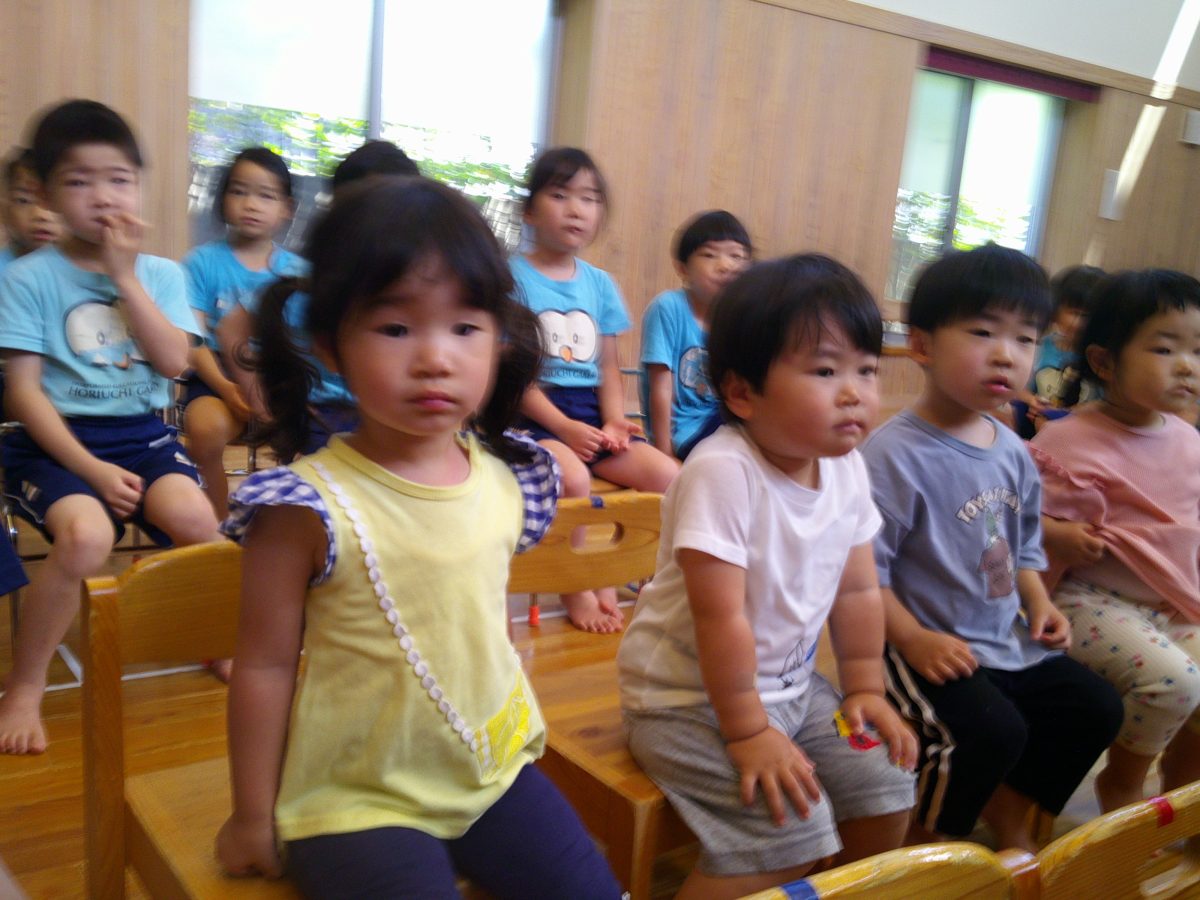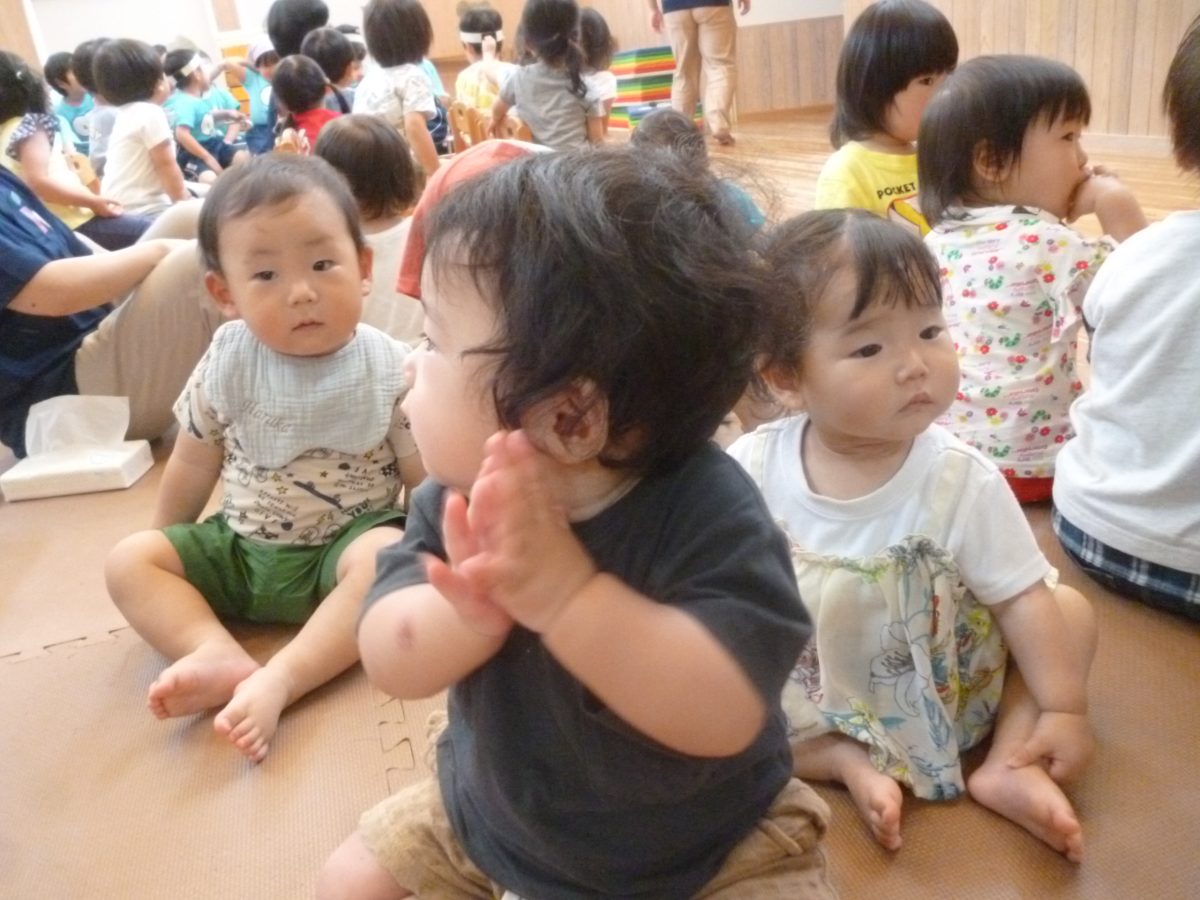 誕生会ではみんな夢中で、出し物や誕生日の友だちを見ていました🎂