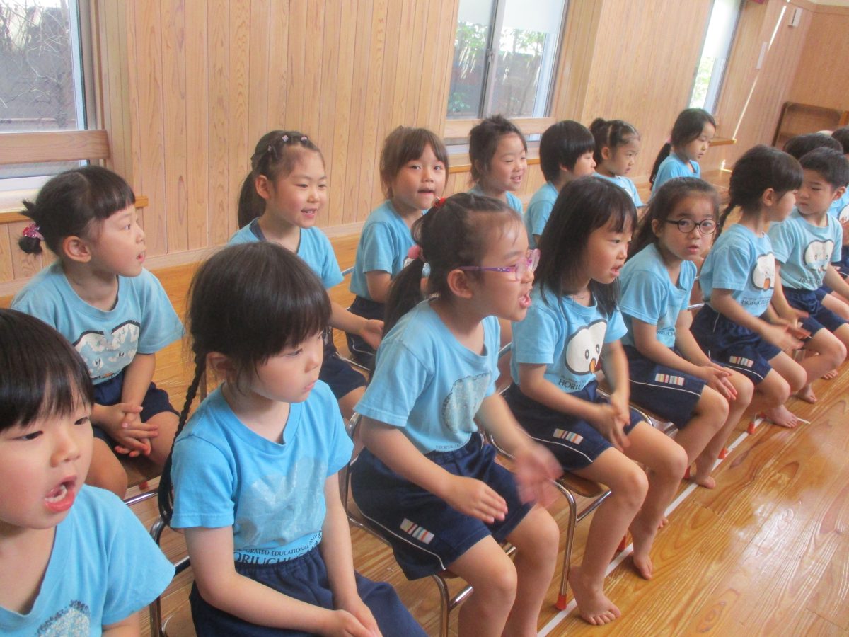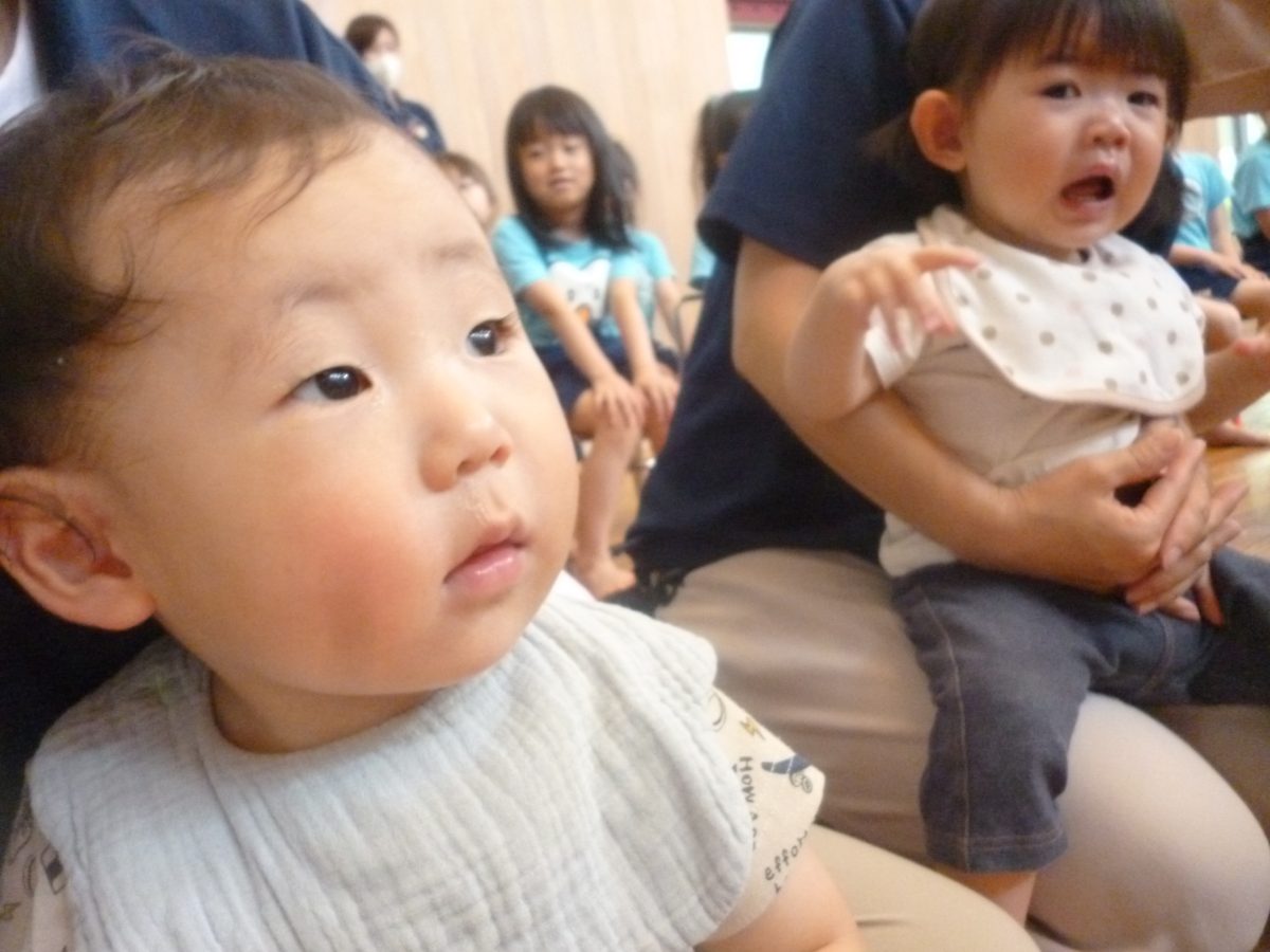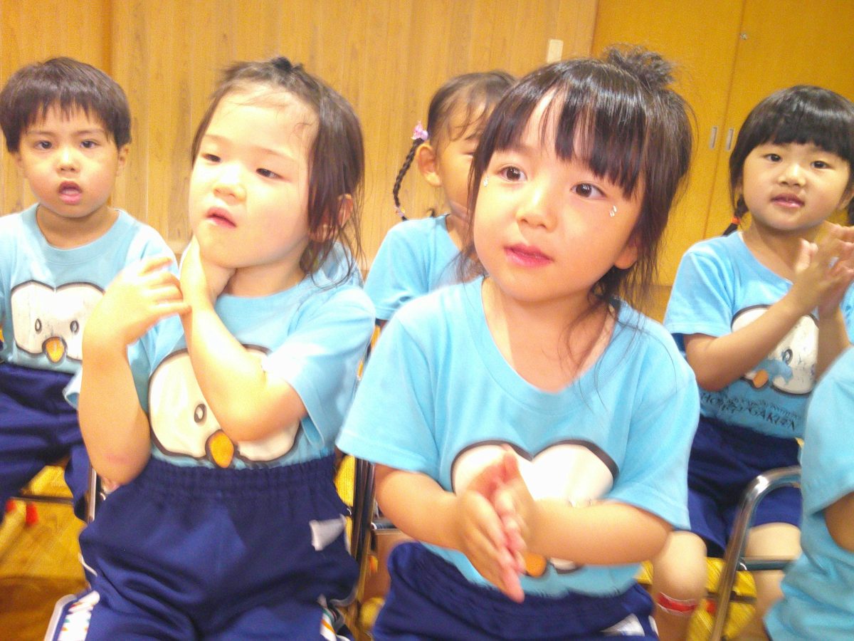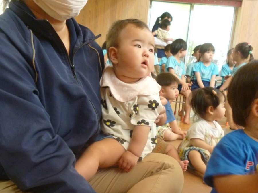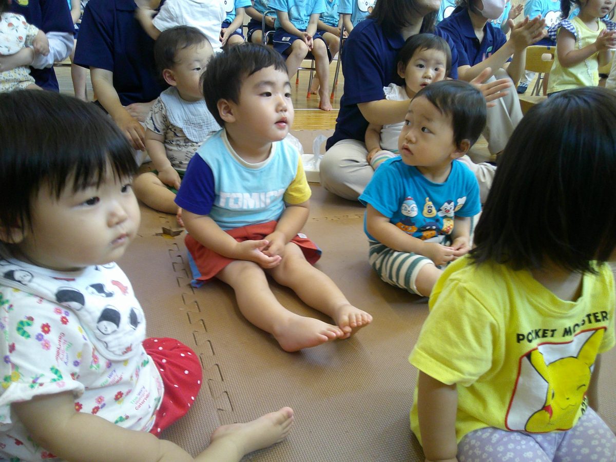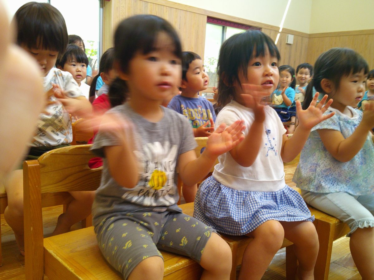 誕生会ではみんな夢中で、出し物や誕生日の友だちを見ていました🎂