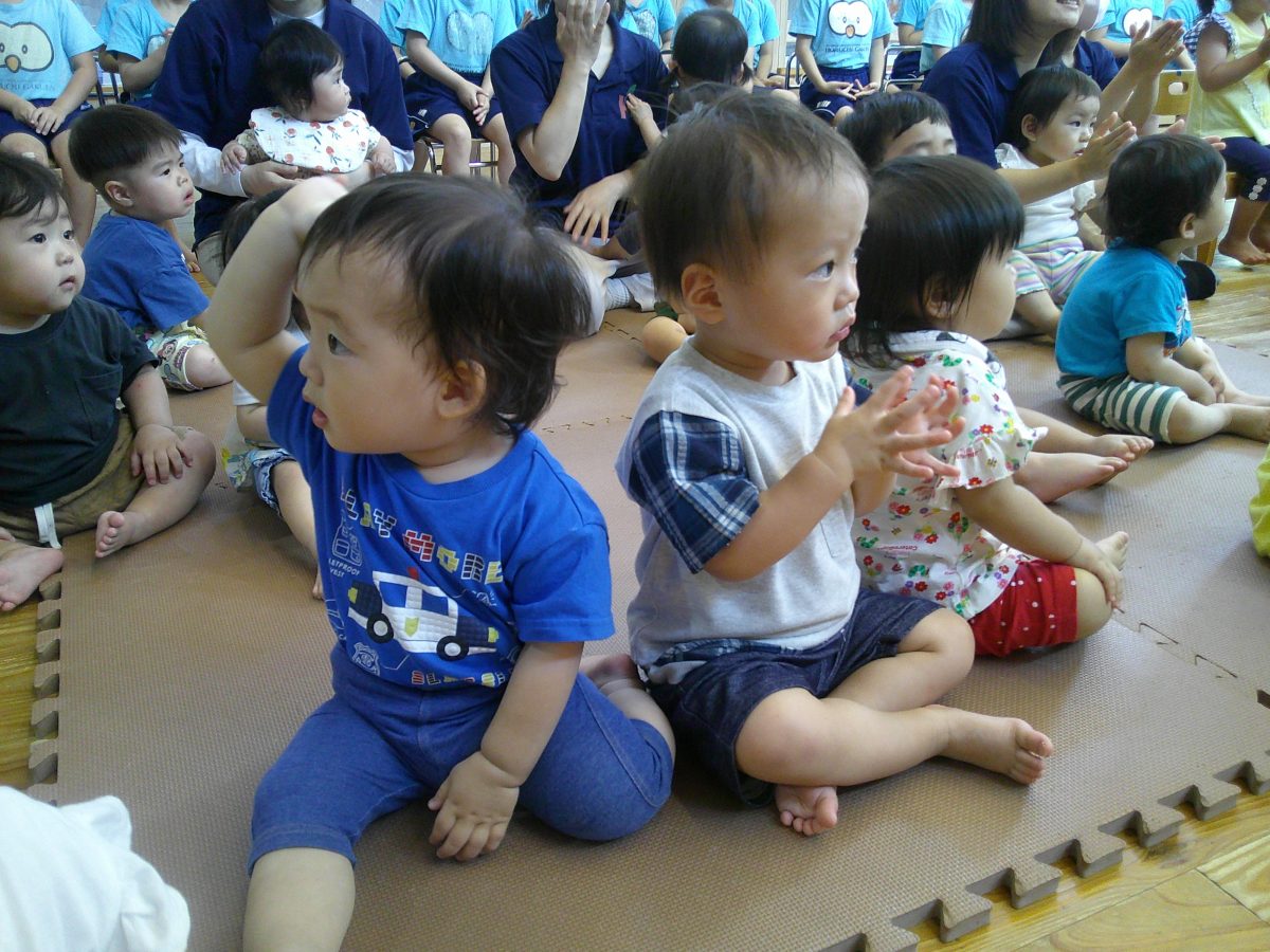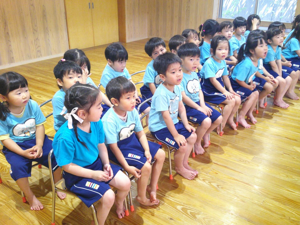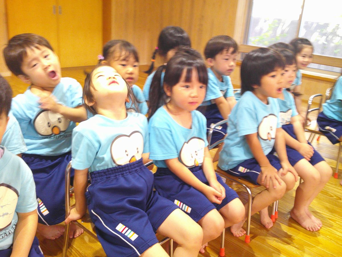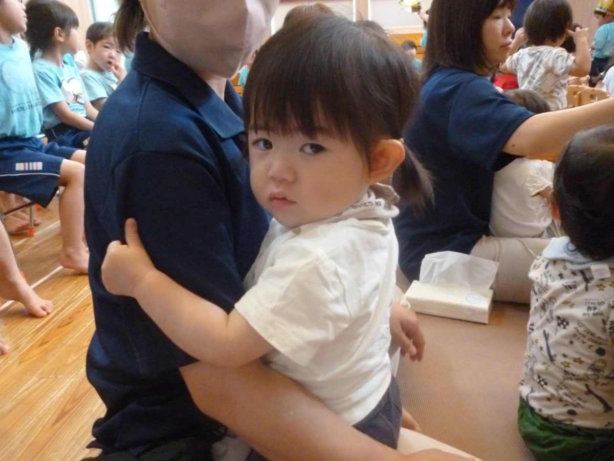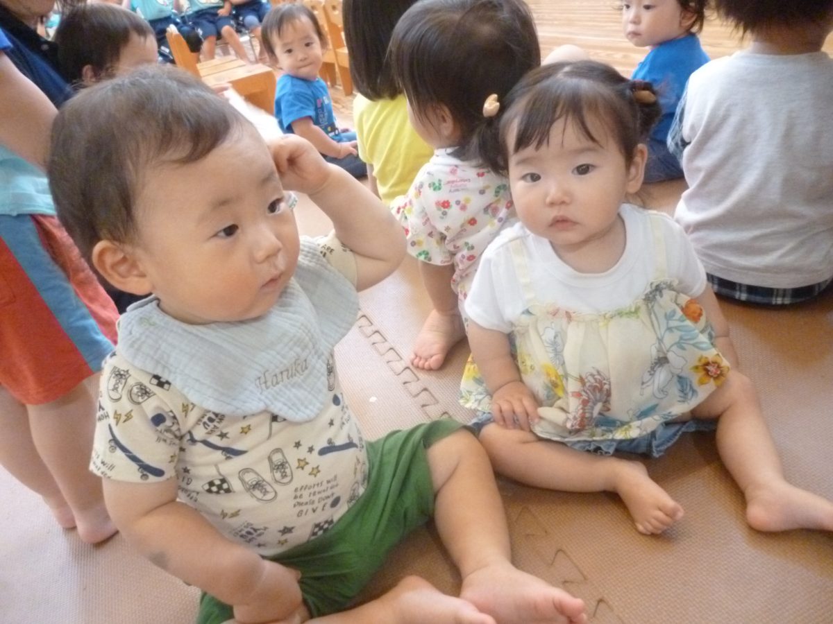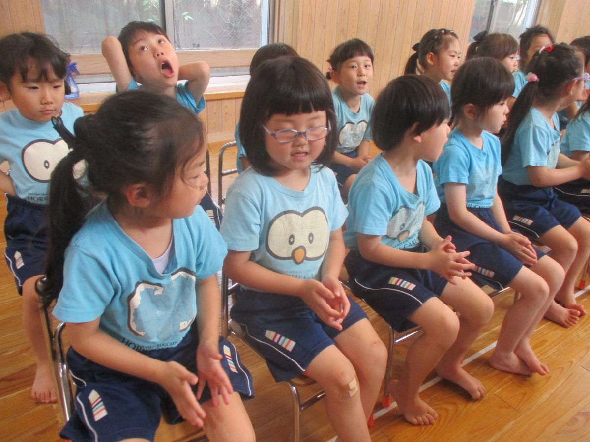 誕生会ではみんな夢中で、出し物や誕生日の友だちを見ていました🎂