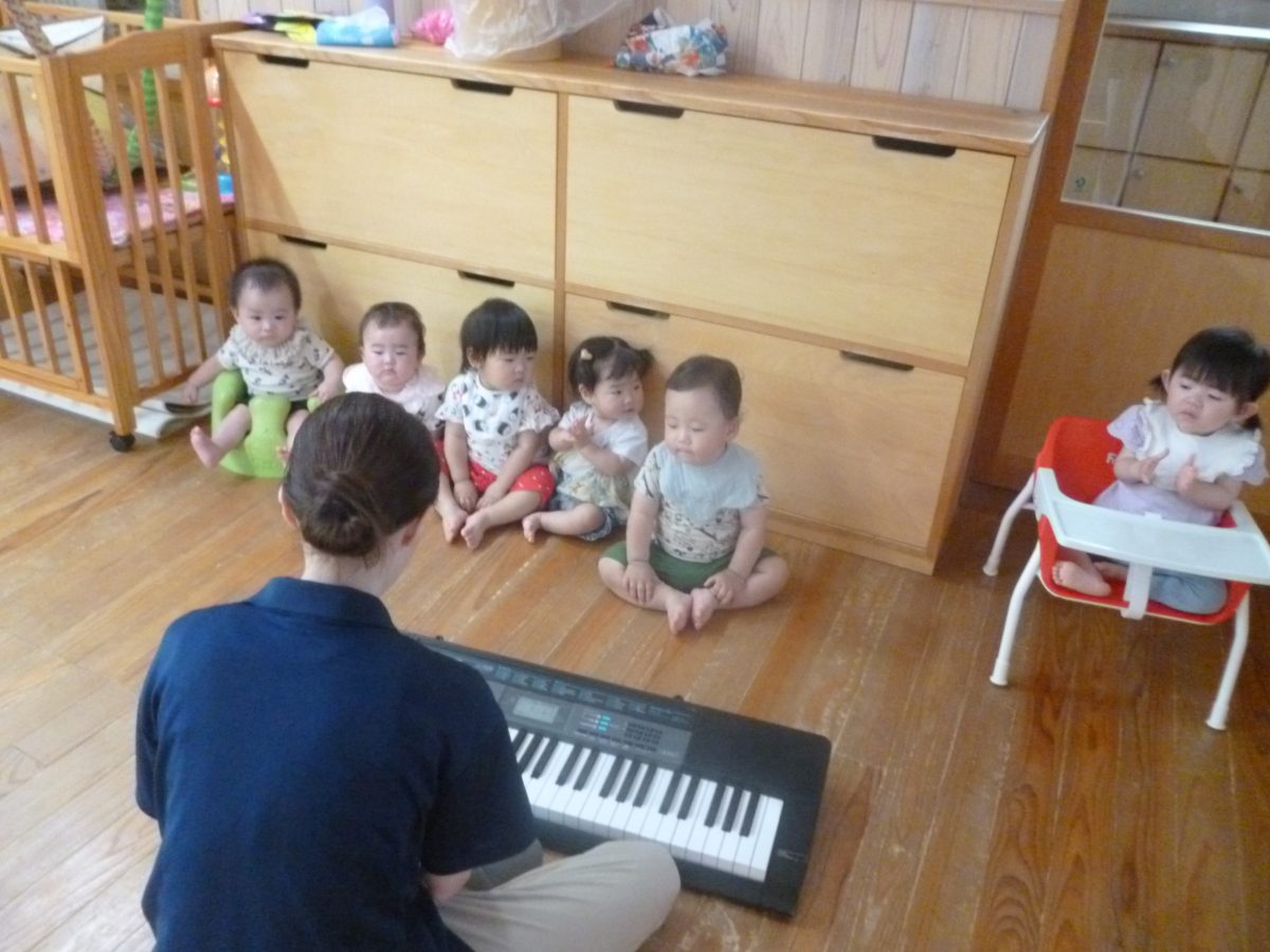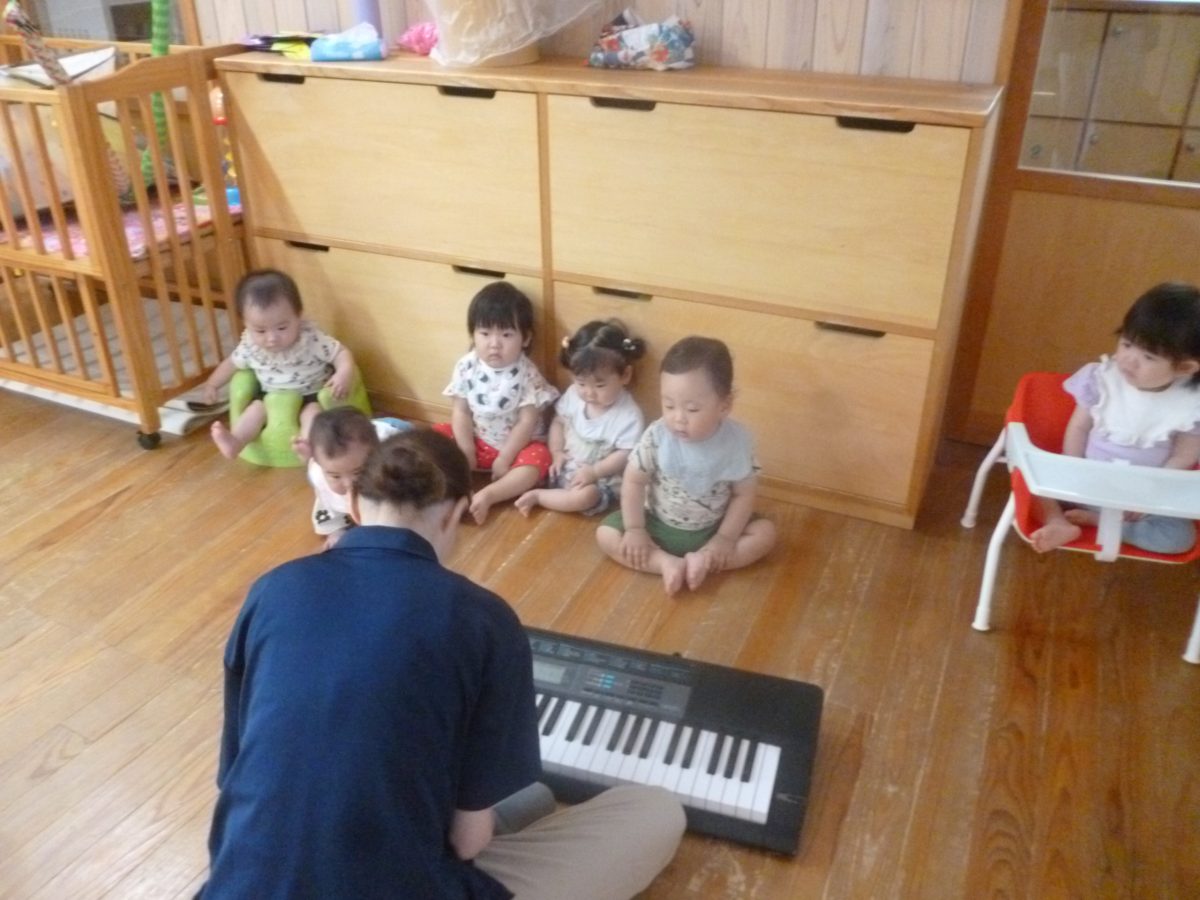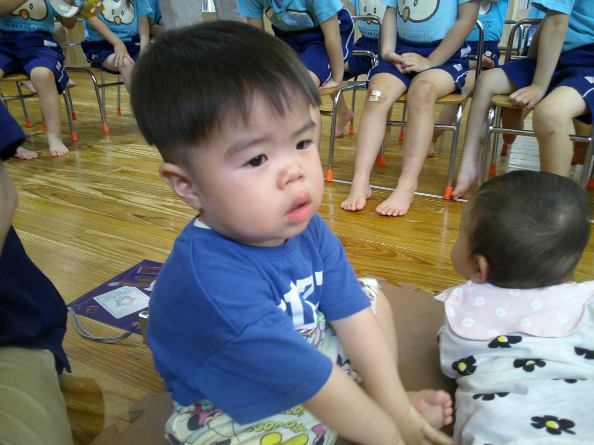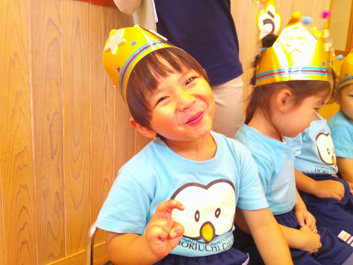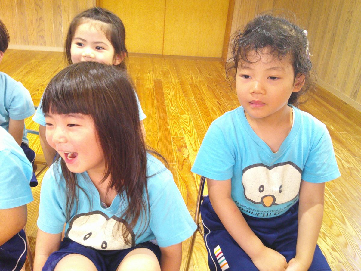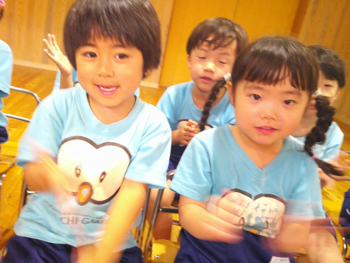 誕生会ではみんな夢中で、出し物や誕生日の友だちを見ていました🎂