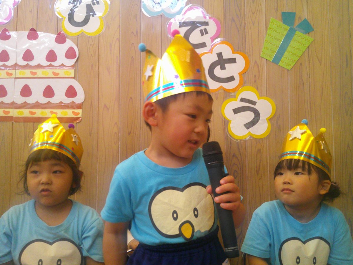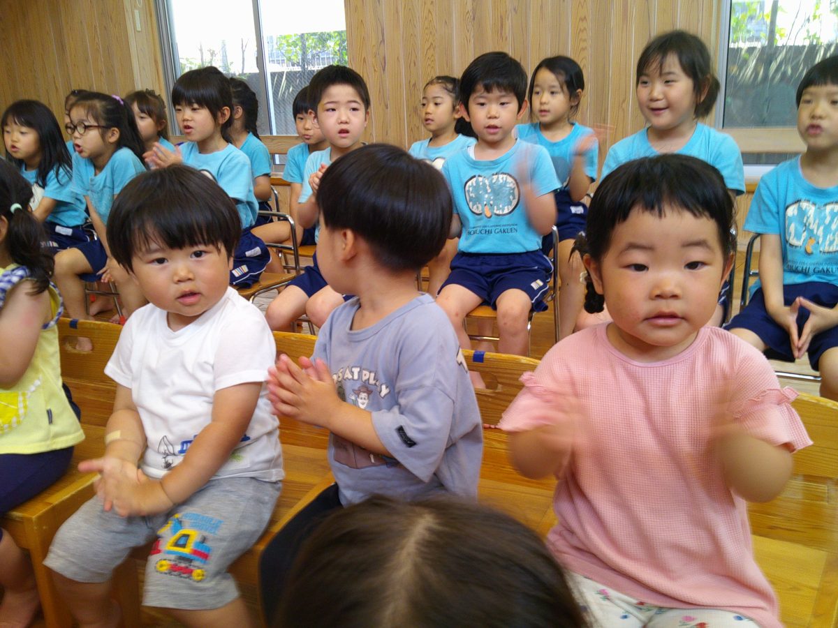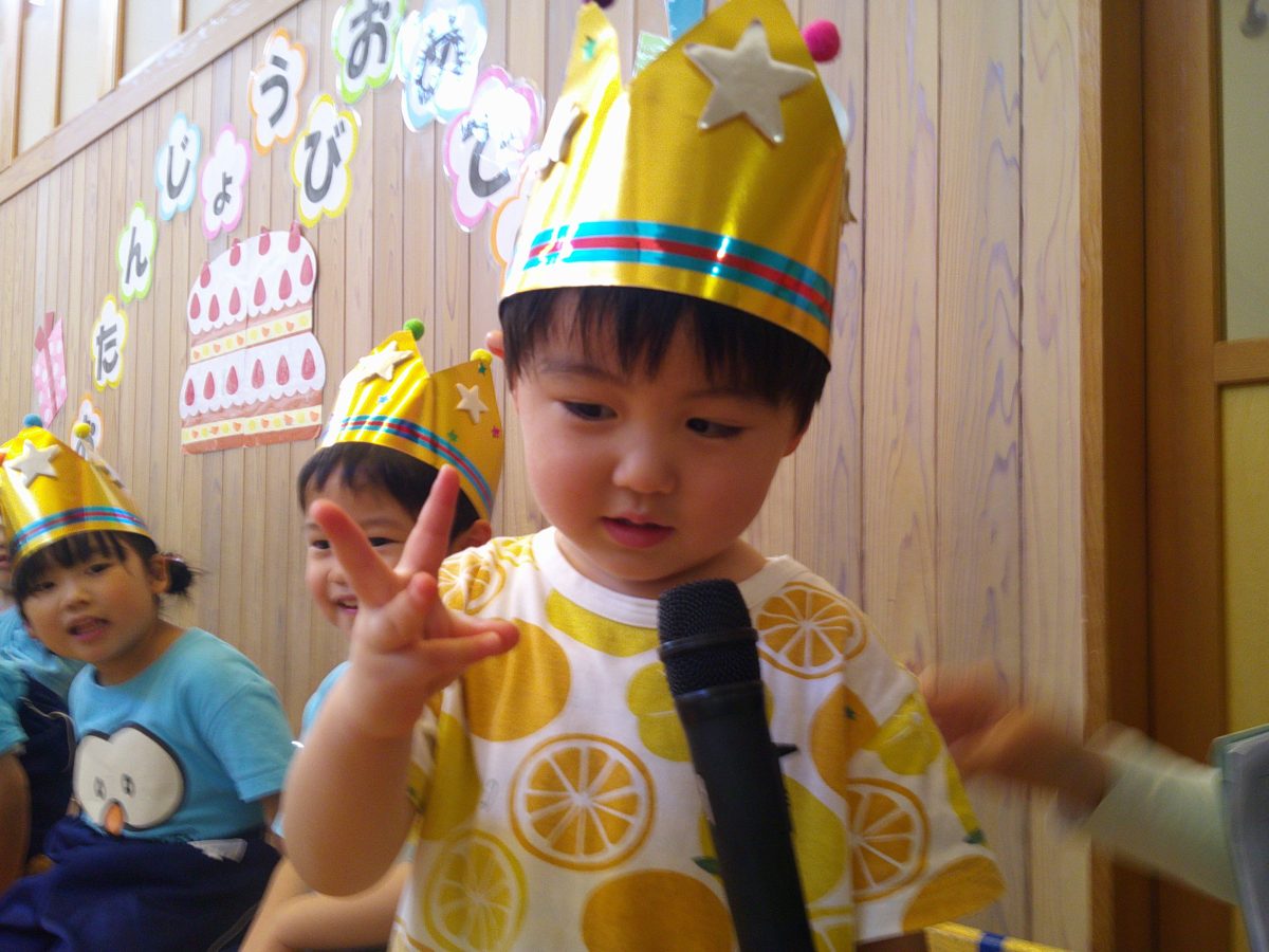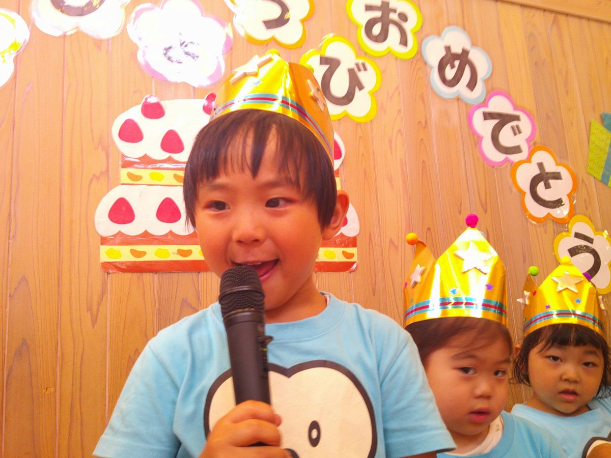 今日はお誕生会🎂 サクラ組さんは大きな声でお祝いです🎉