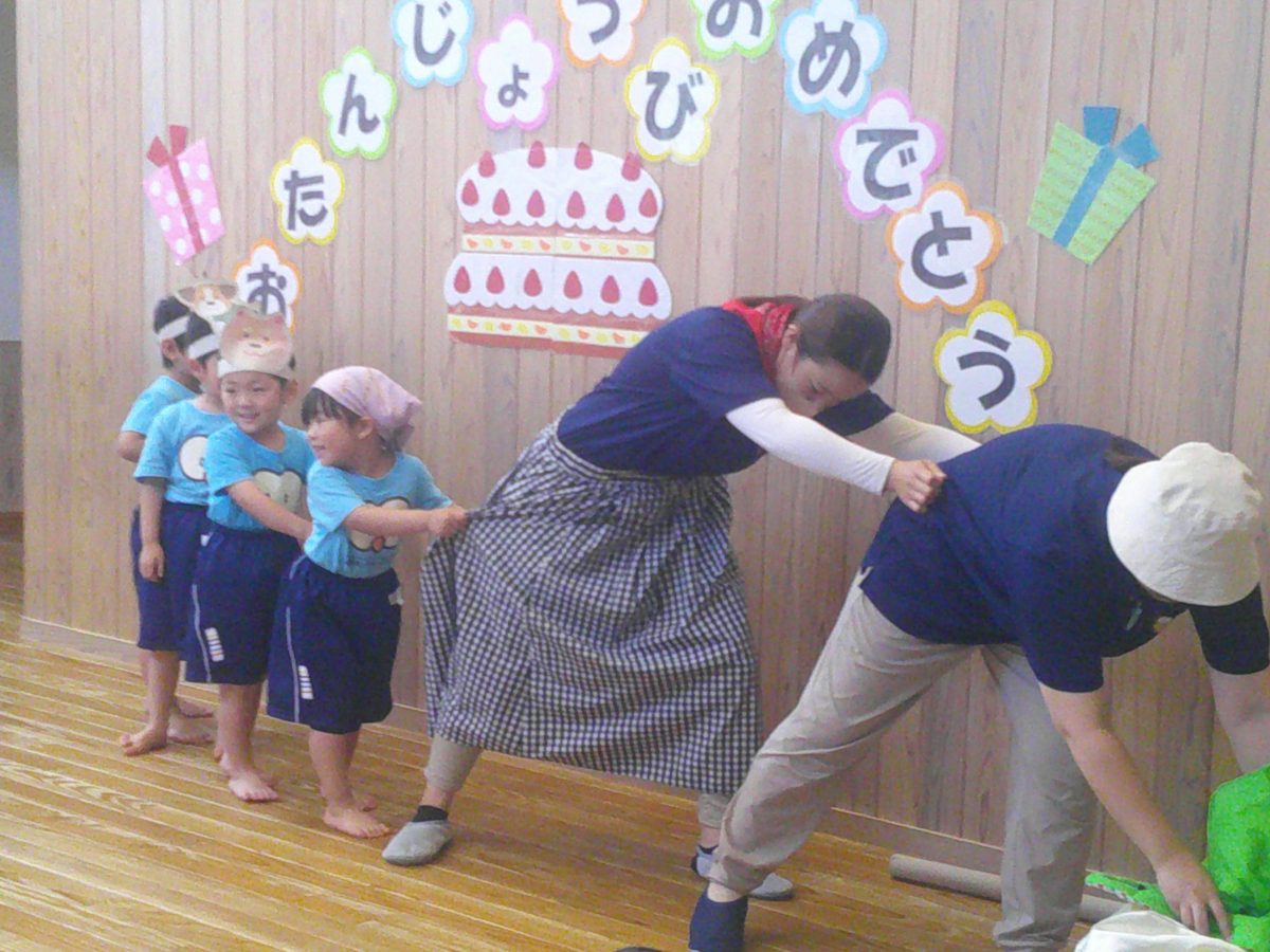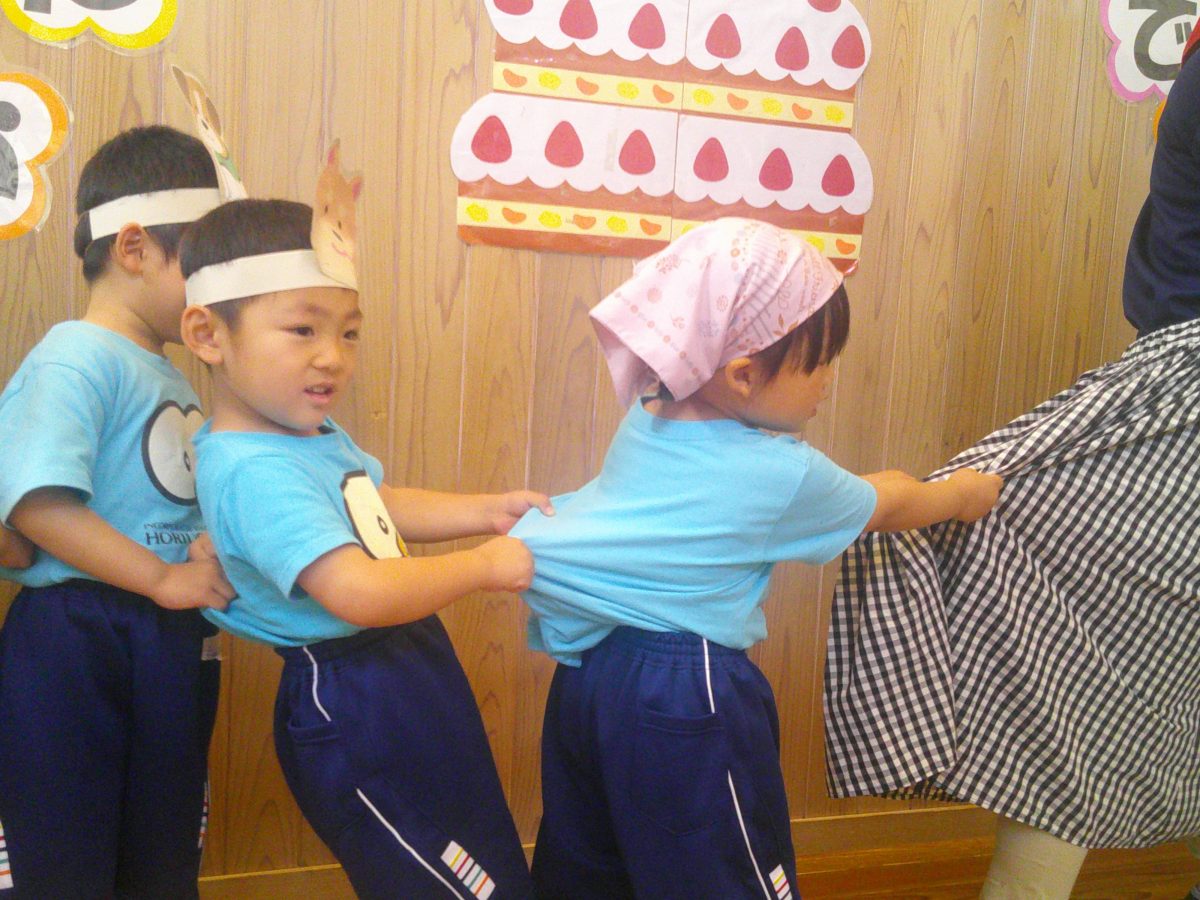 お誕生会では、「うんとこしょ どっこいしょ」と掛け声でお手伝い。カブが抜けるとニッコリです😄