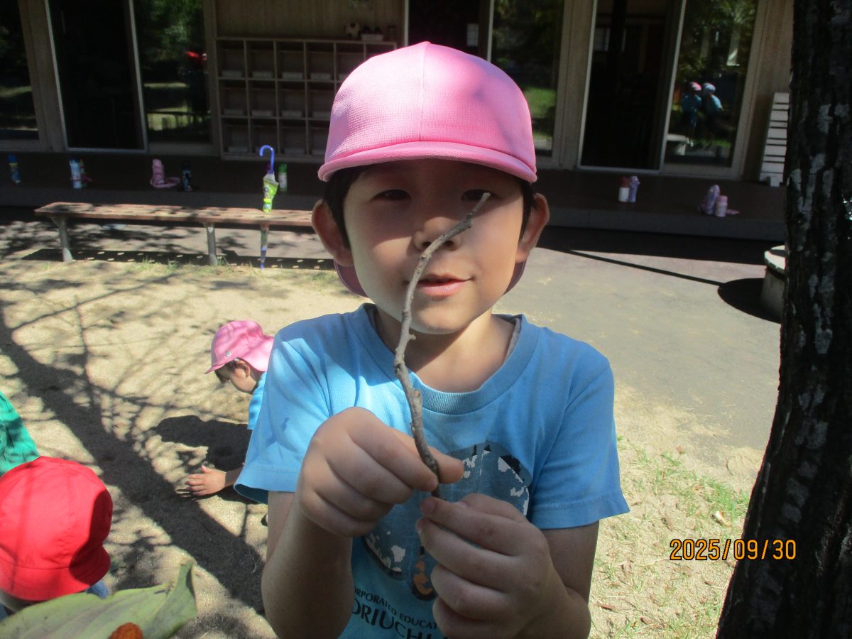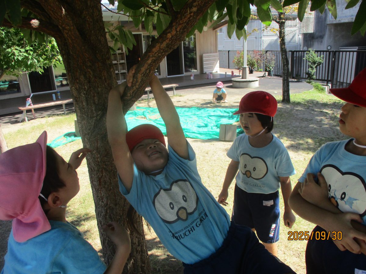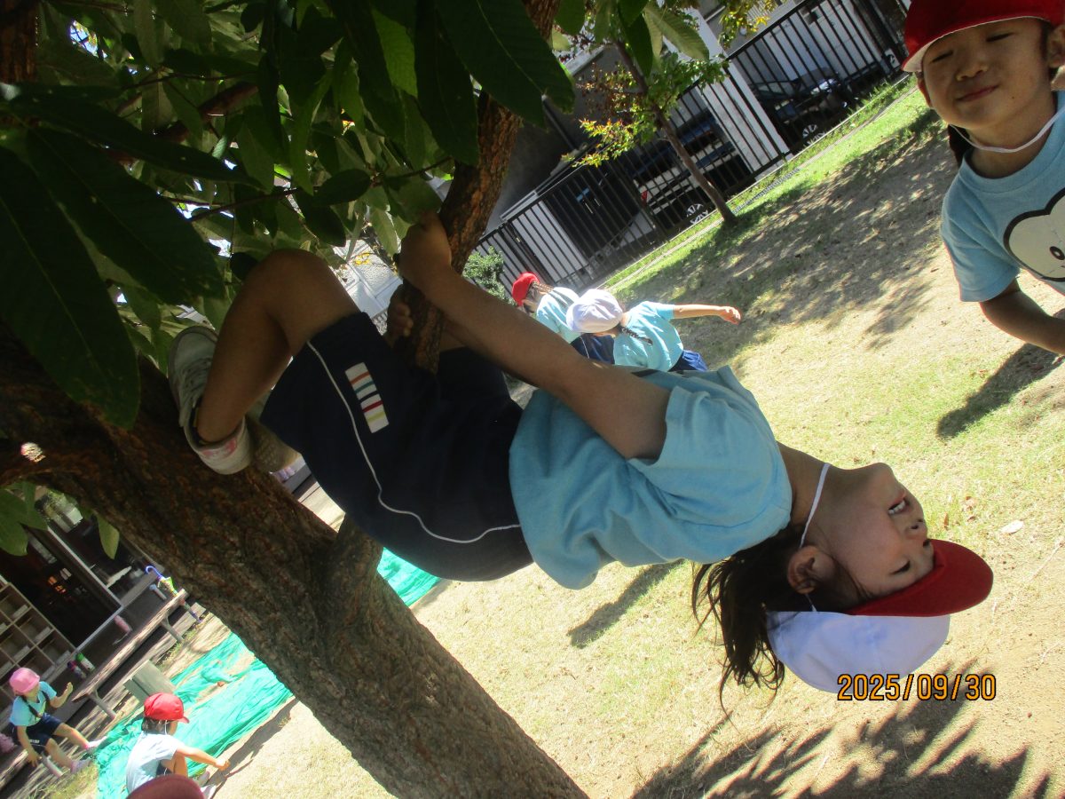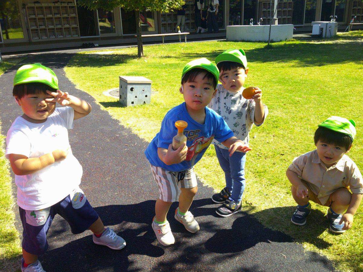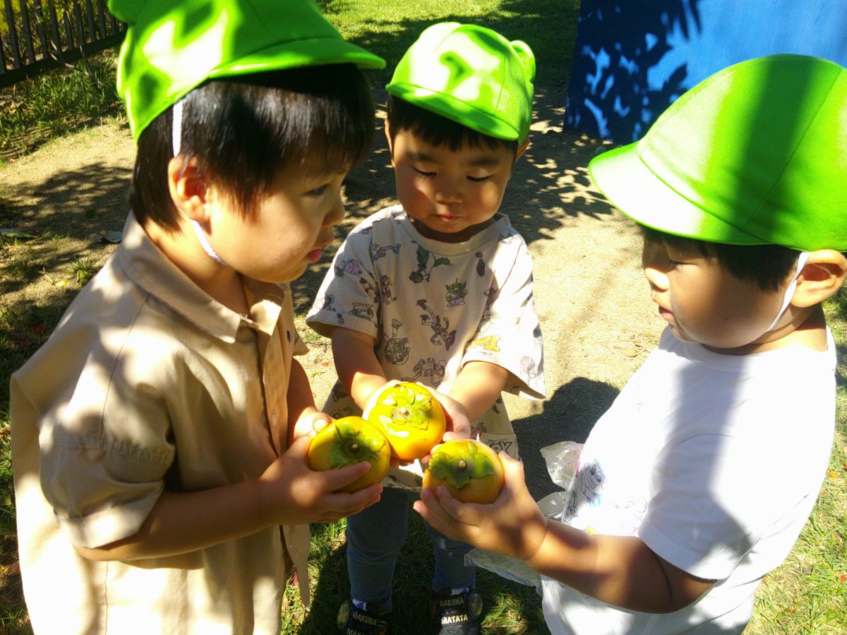 園庭では、砂場あそびや柿の実、クヌギの実拾いに夢中の子ども達でした😆💕