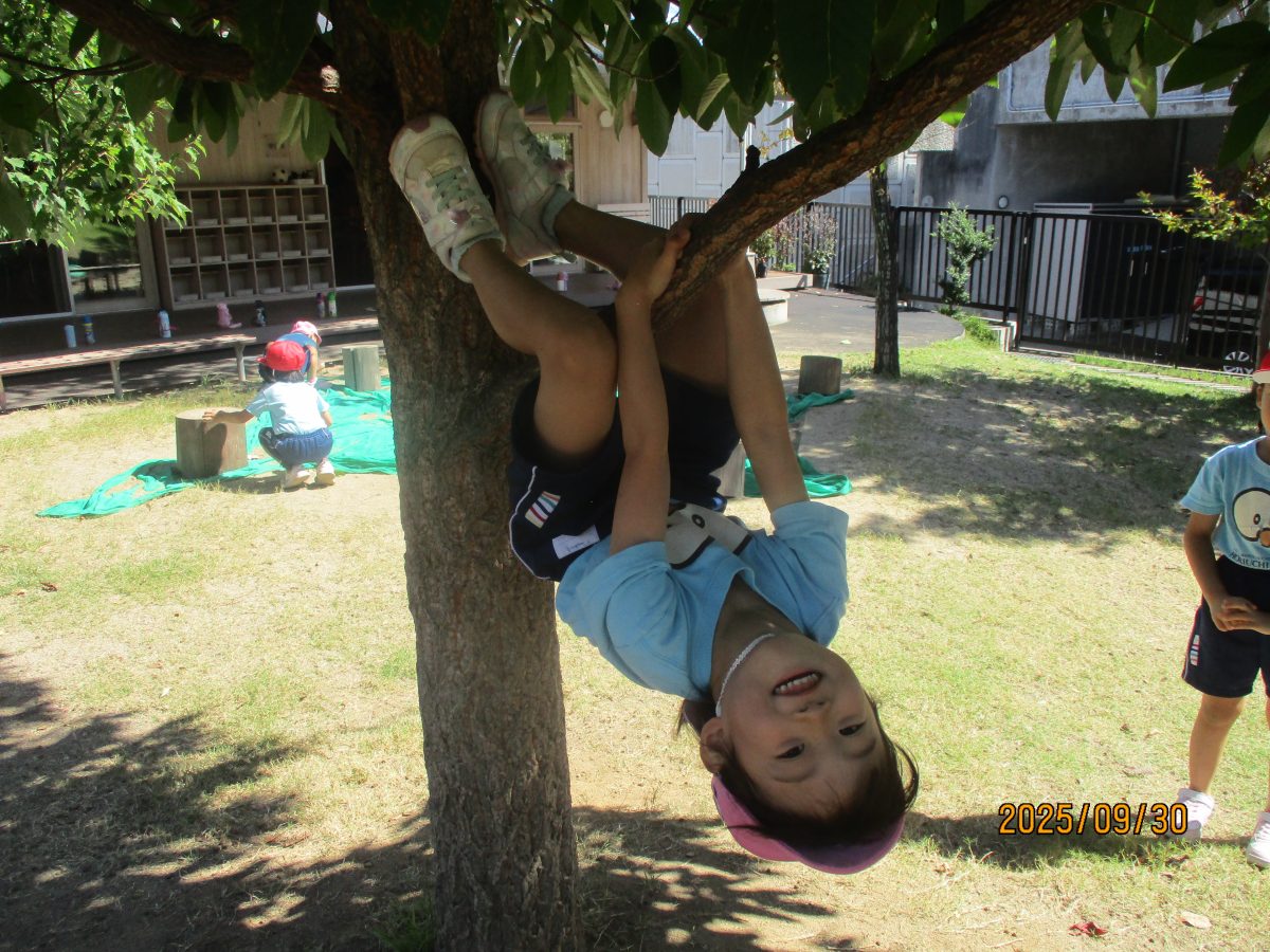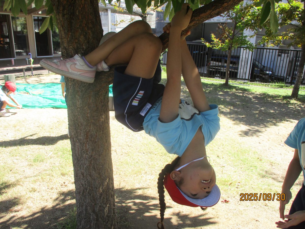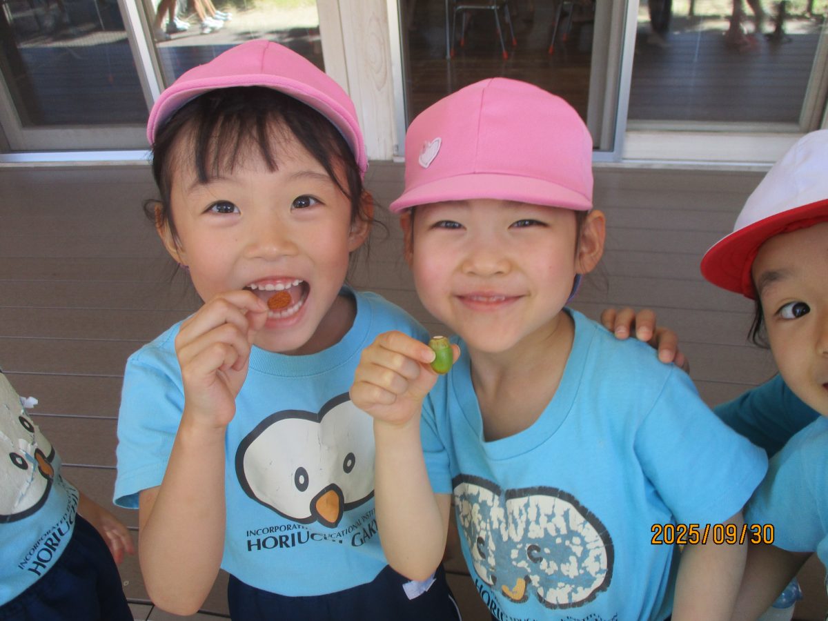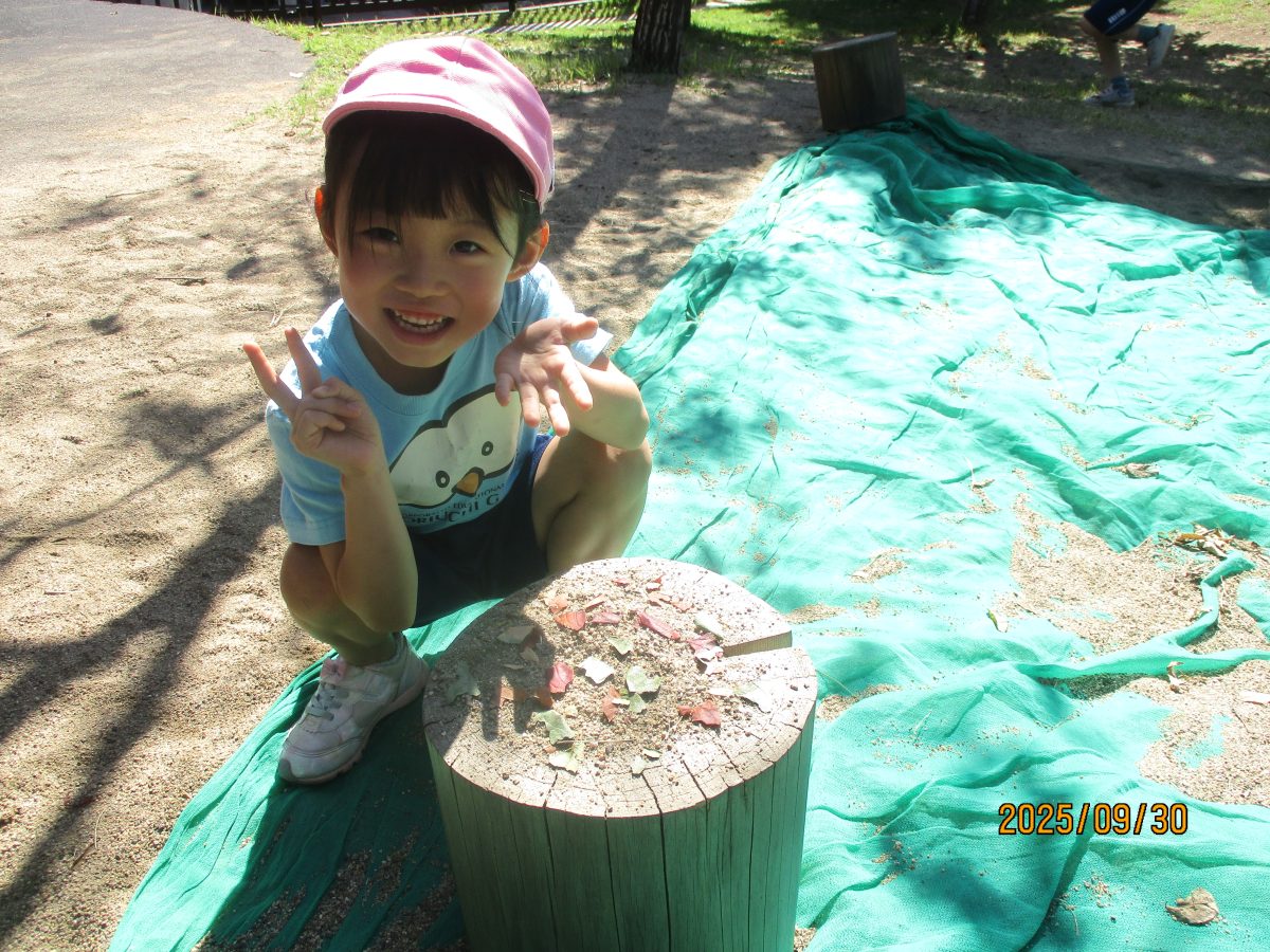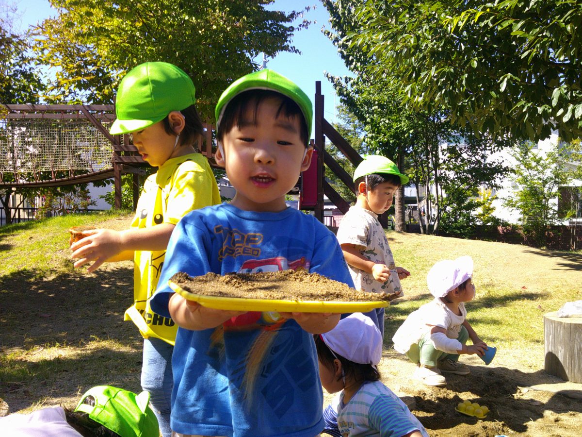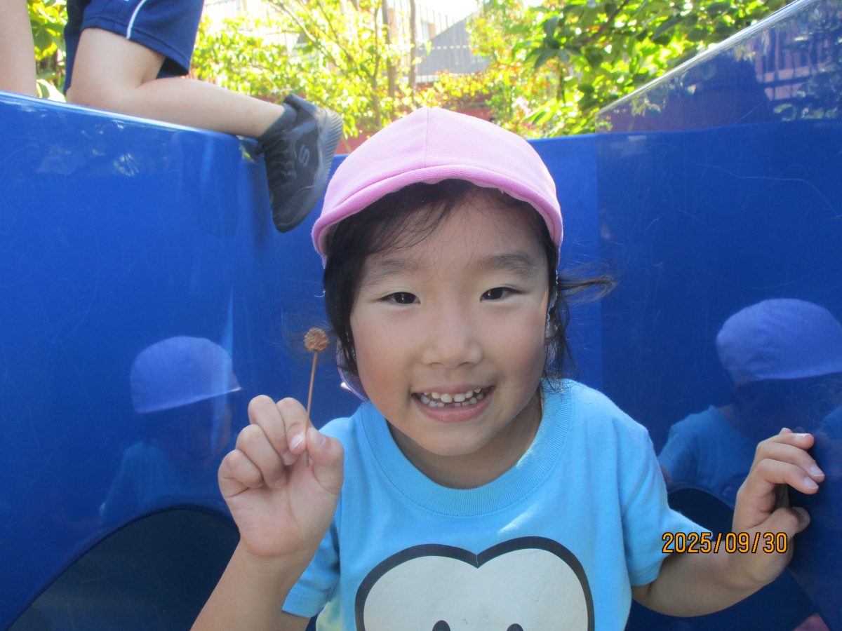 園庭では、砂場あそびや柿の実、クヌギの実拾いに夢中の子ども達でした😆💕