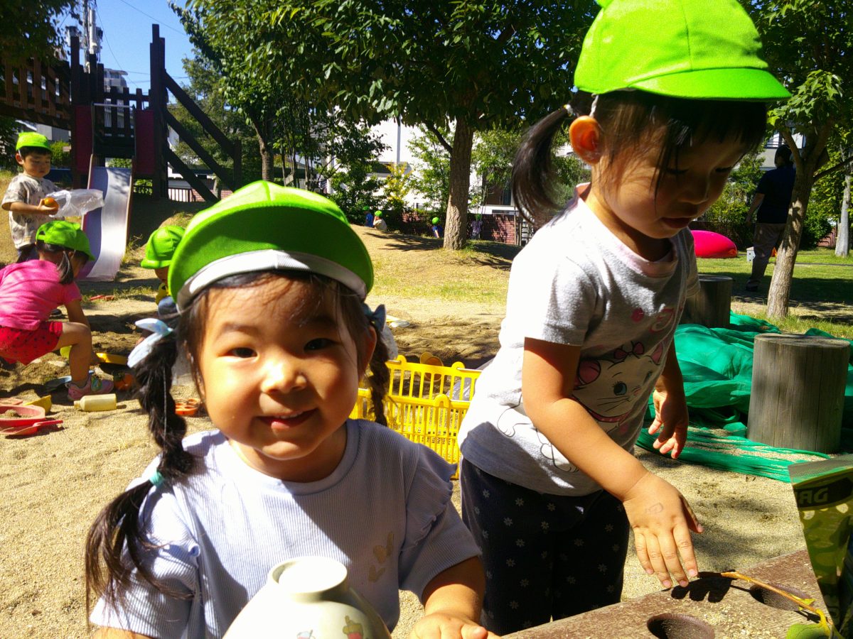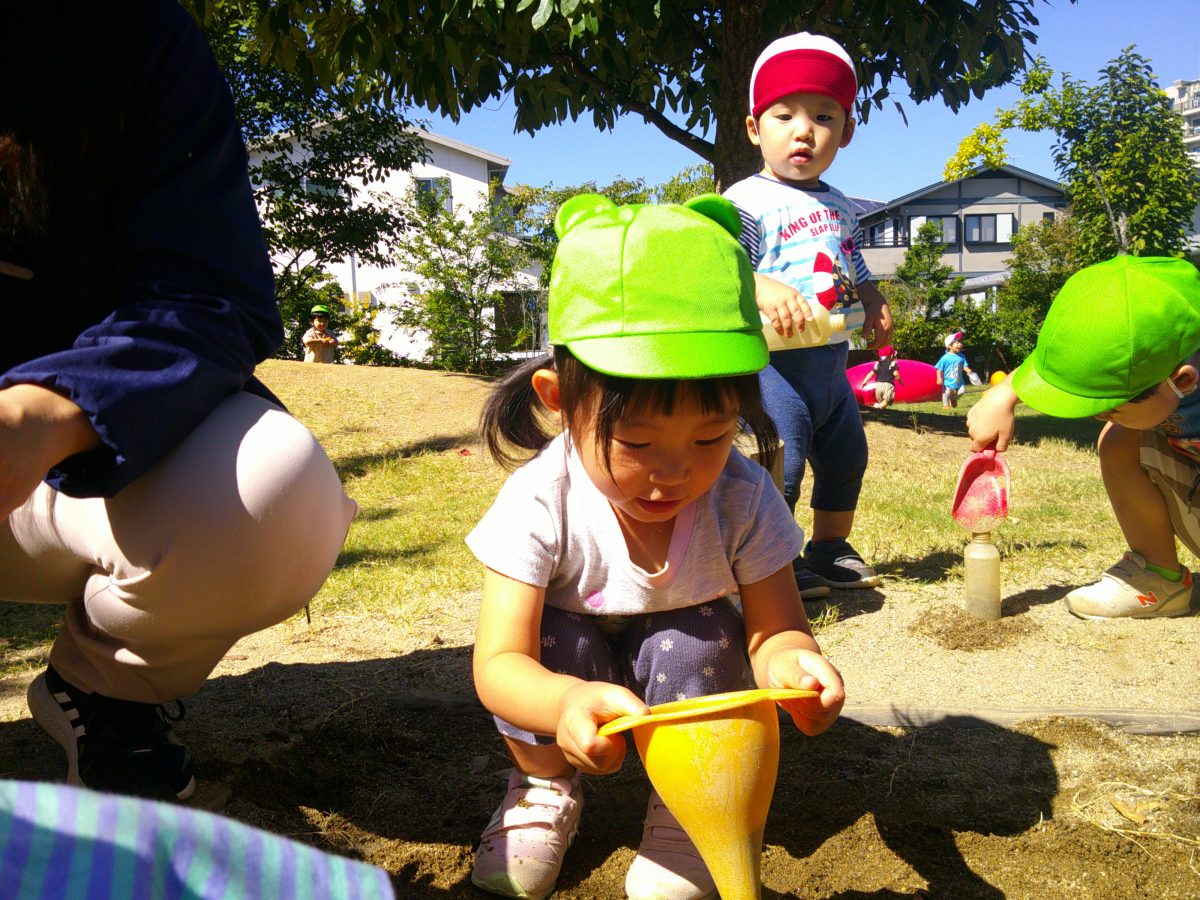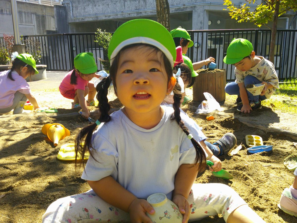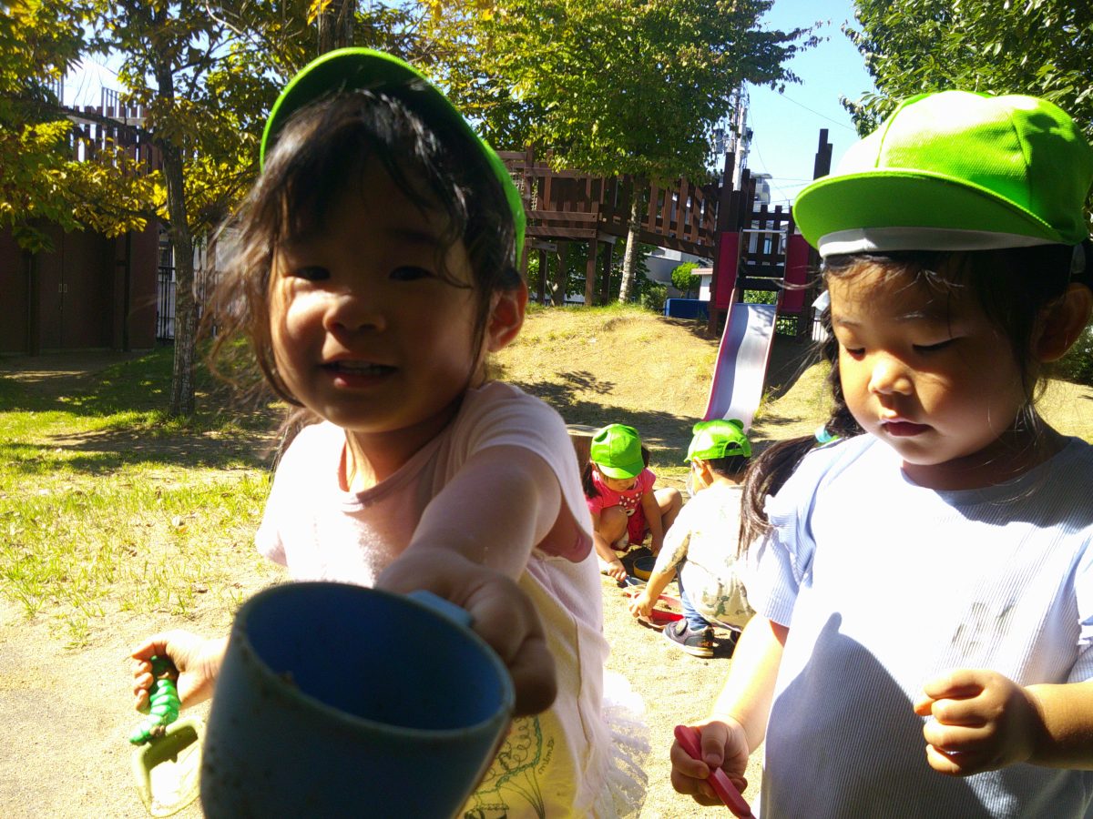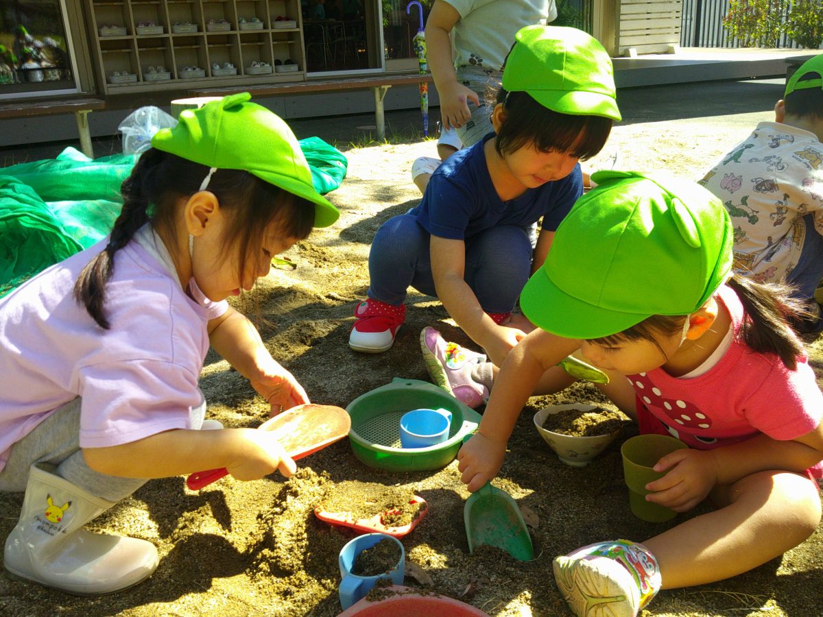 園庭では、砂場あそびや柿の実、クヌギの実拾いに夢中の子ども達でした😆💕