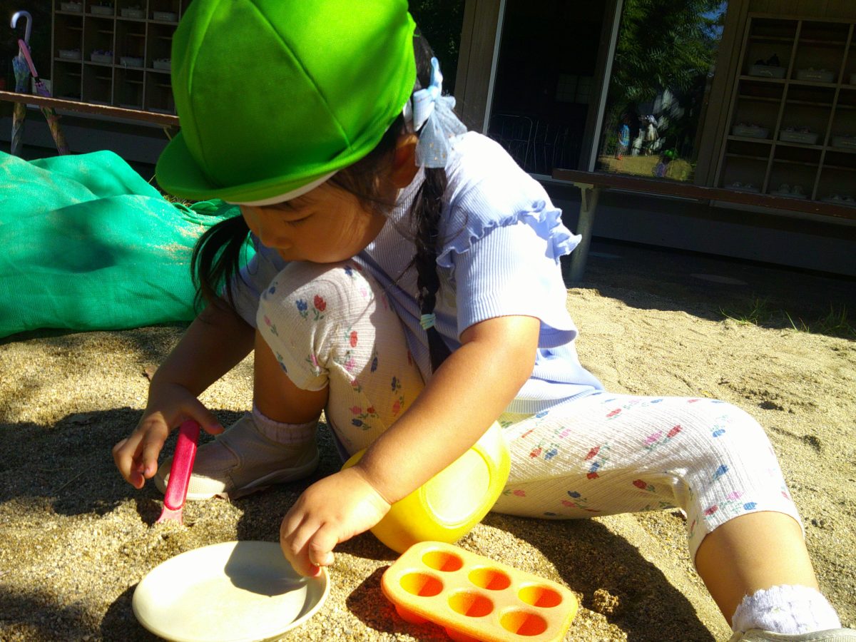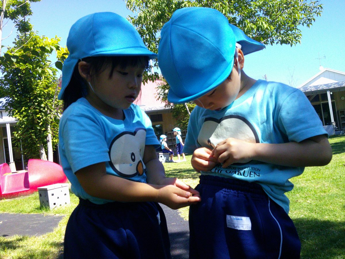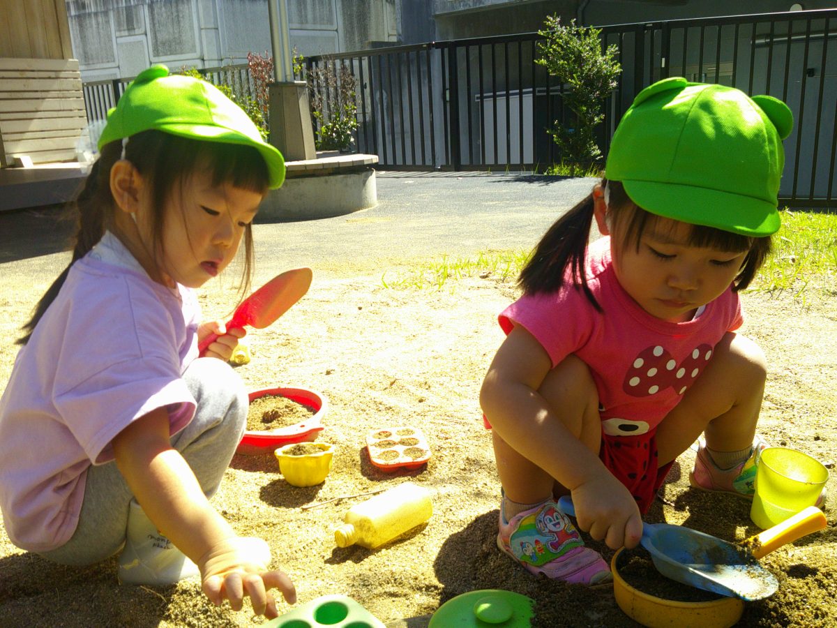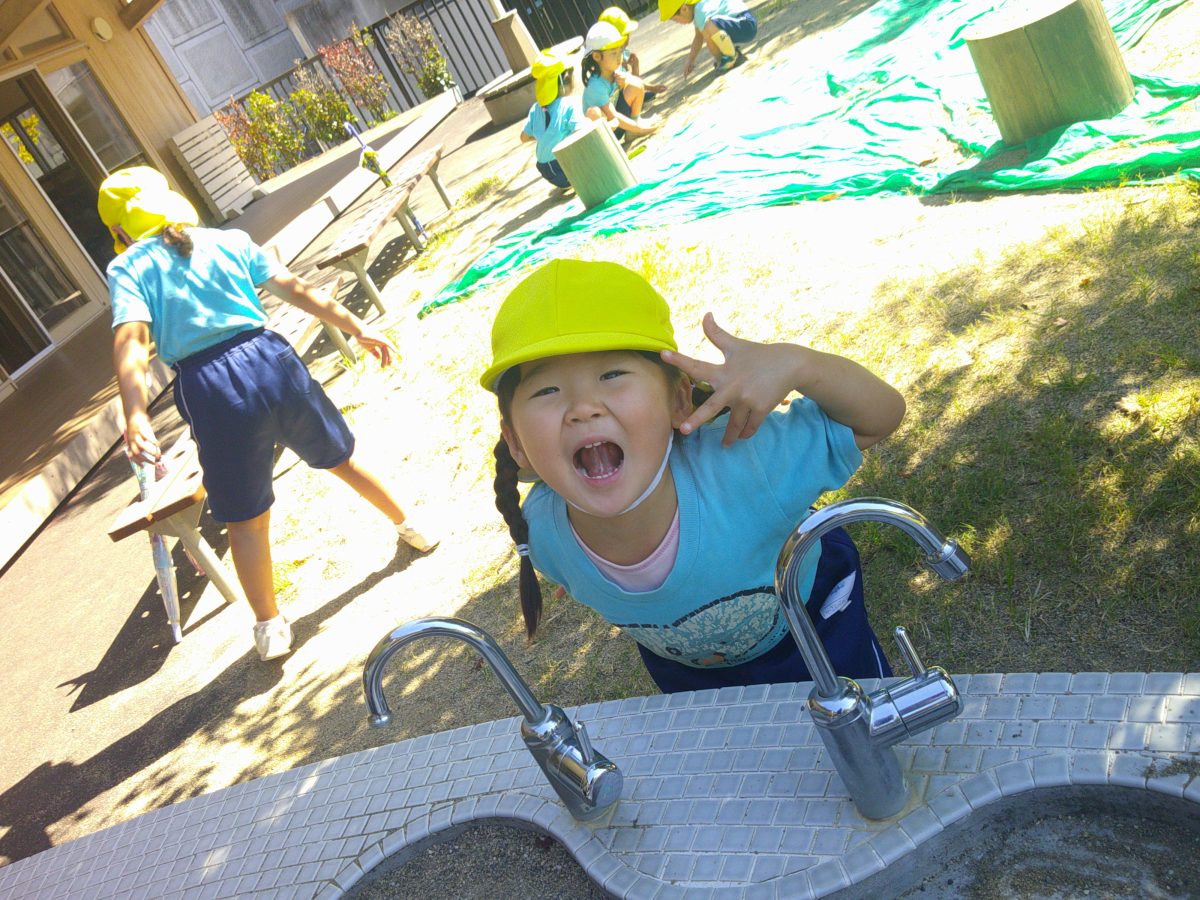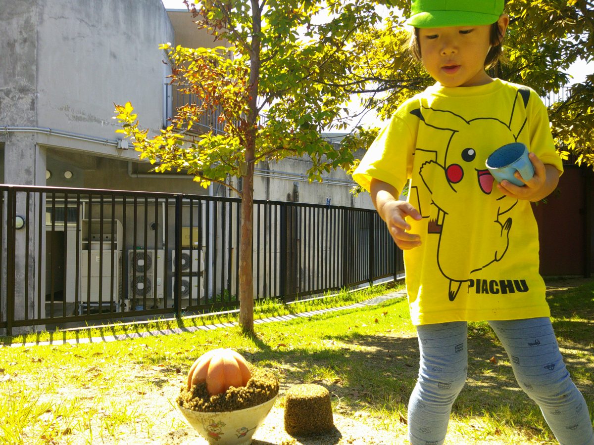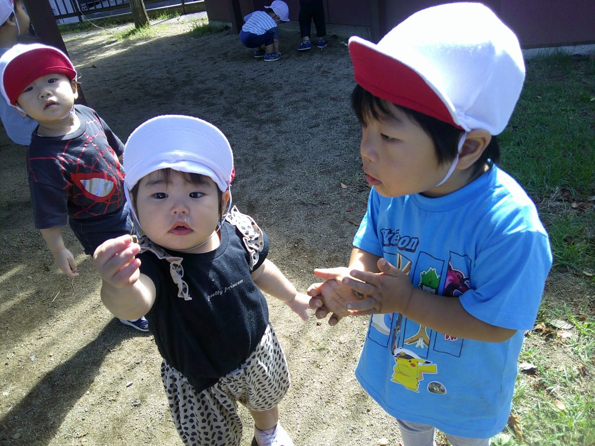 園庭では、砂場あそびや柿の実、クヌギの実拾いに夢中の子ども達でした😆💕