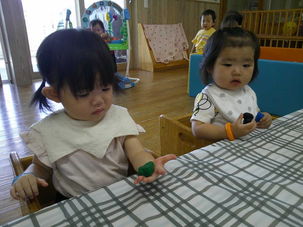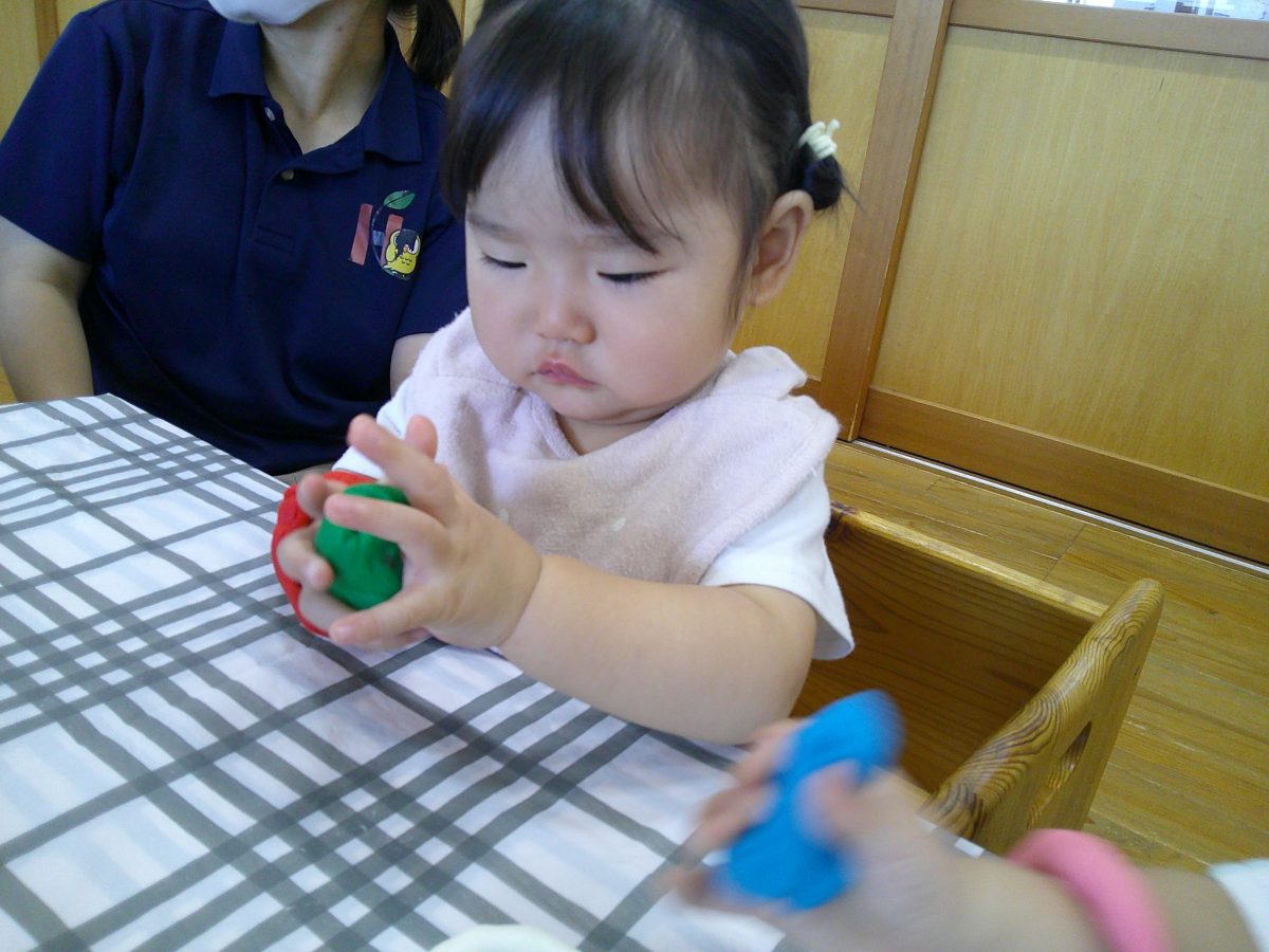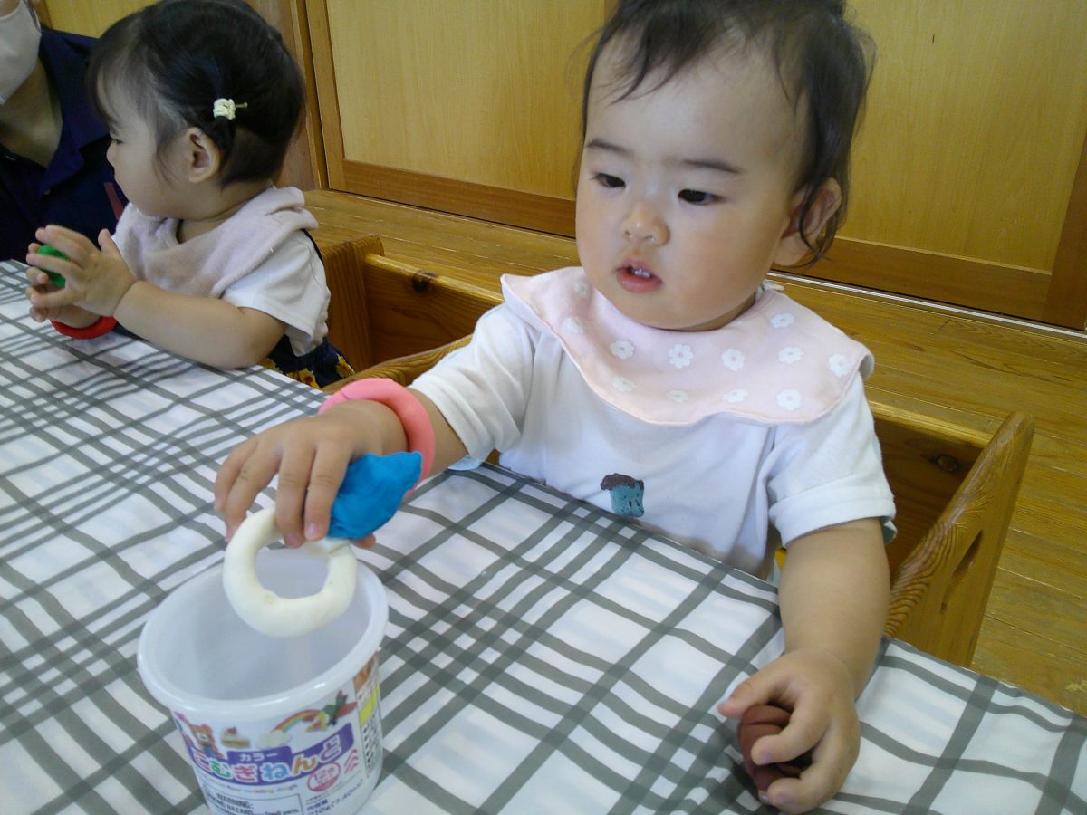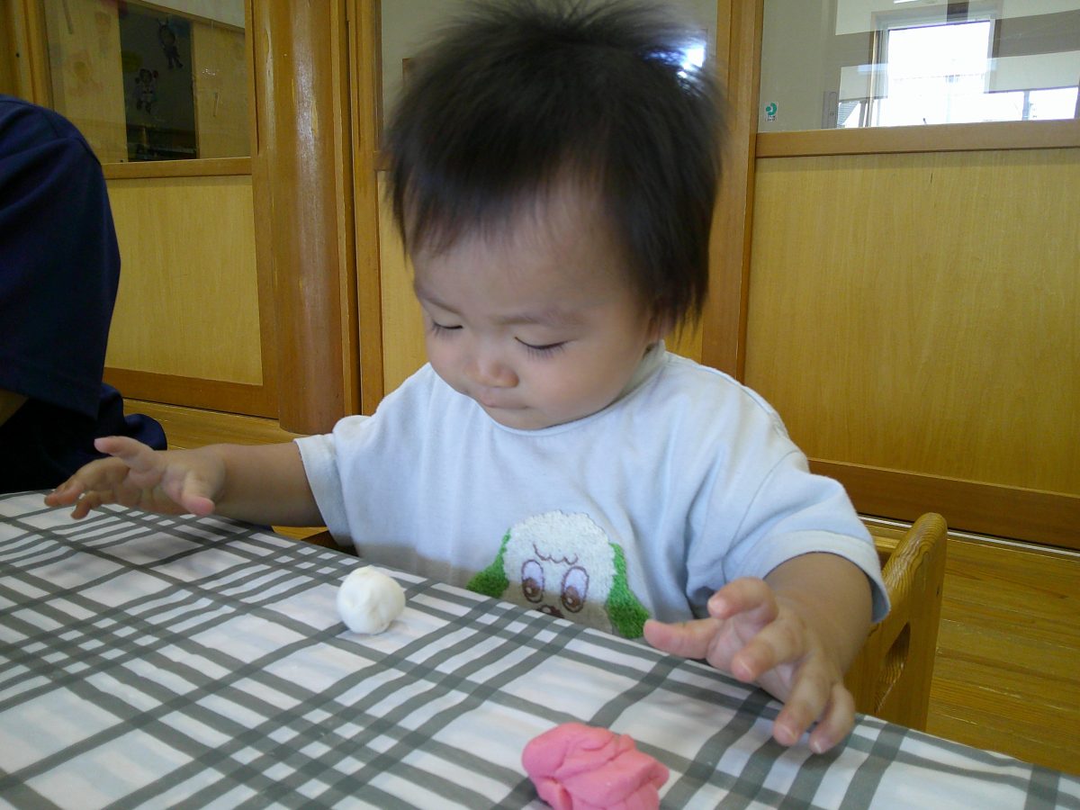 初めてのこむぎこ粘土遊び🎵感触が不思議で・・・慣れたら楽しい😄