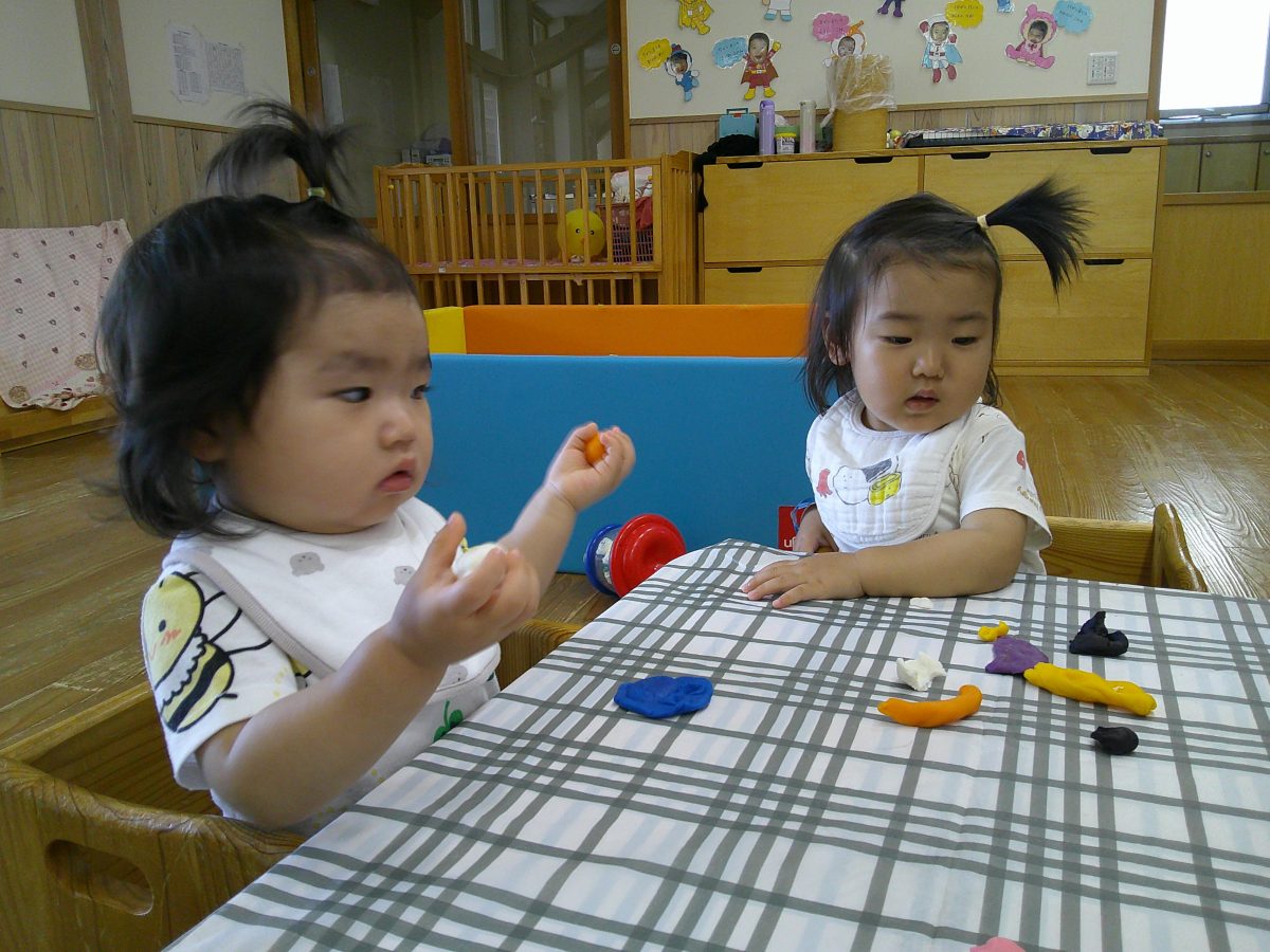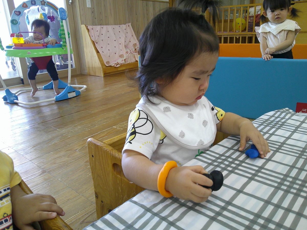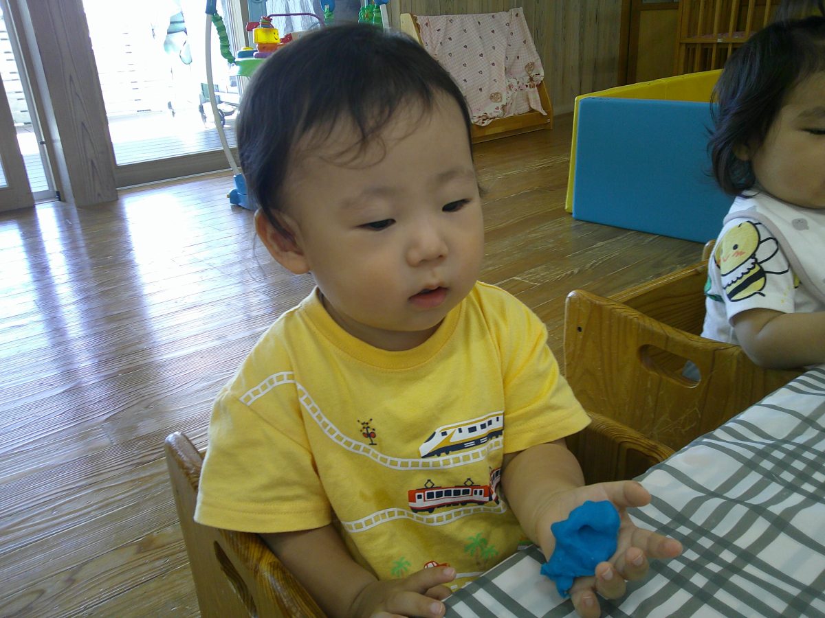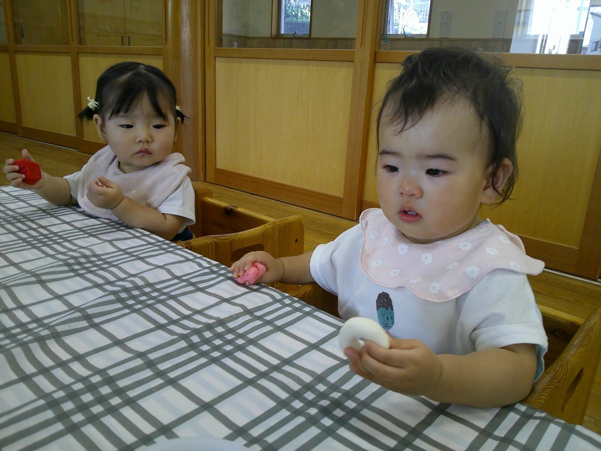 初めてのこむぎこ粘土遊び🎵感触が不思議で・・・慣れたら楽しい😄