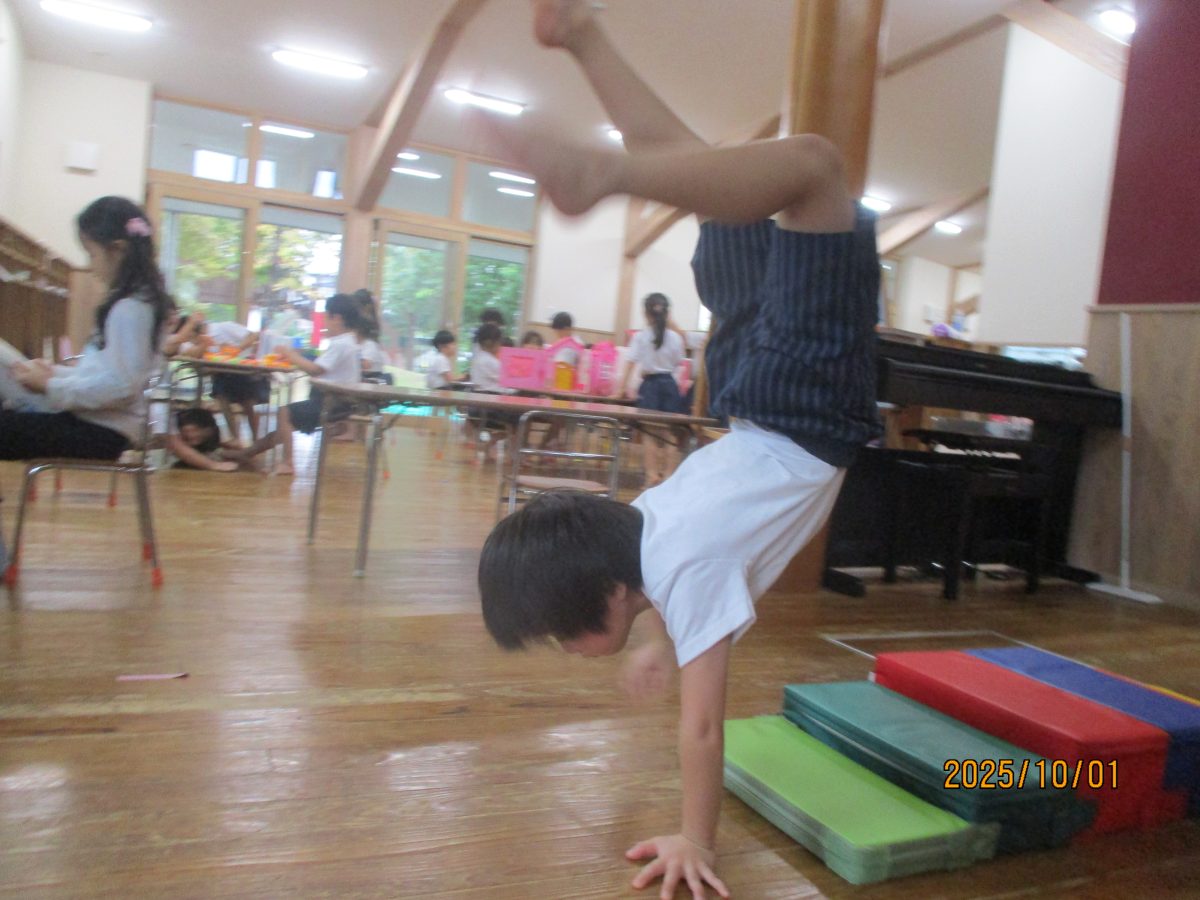 自由時間も逆立ちにハマるお友だちも・・・ 「うでいたい~」と言いつつ止まりません😆
