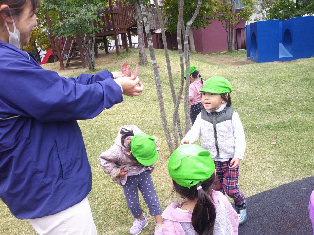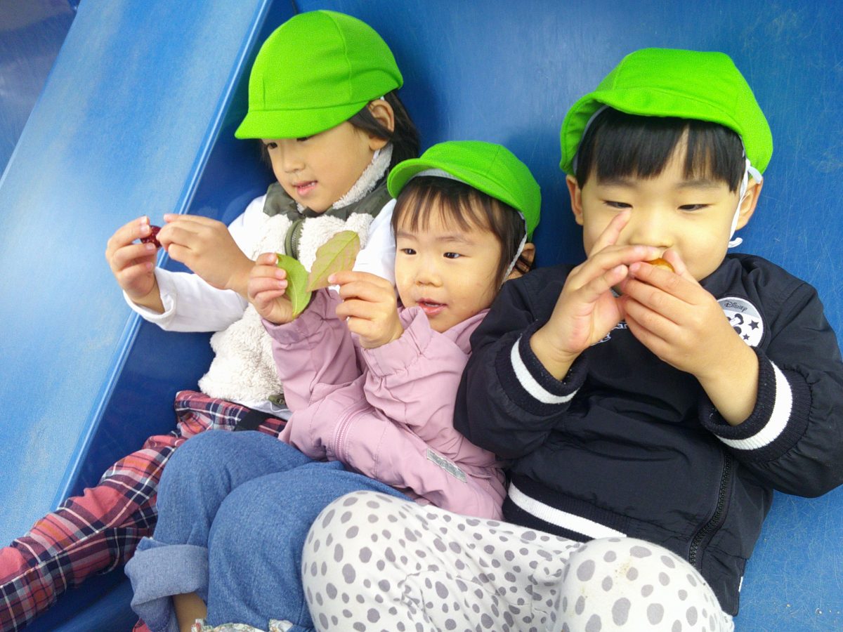 沢山の木のみや葉っぱを拾って見せてくれた子どもたちでした🤭