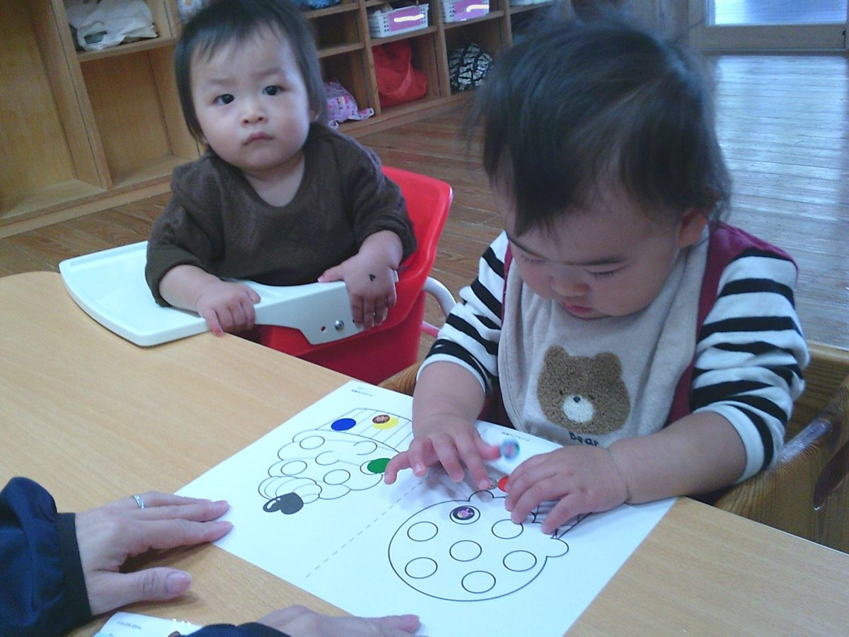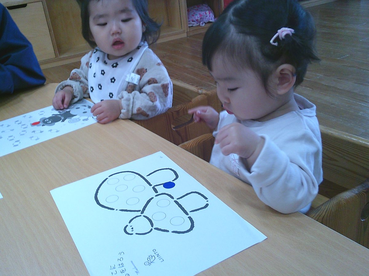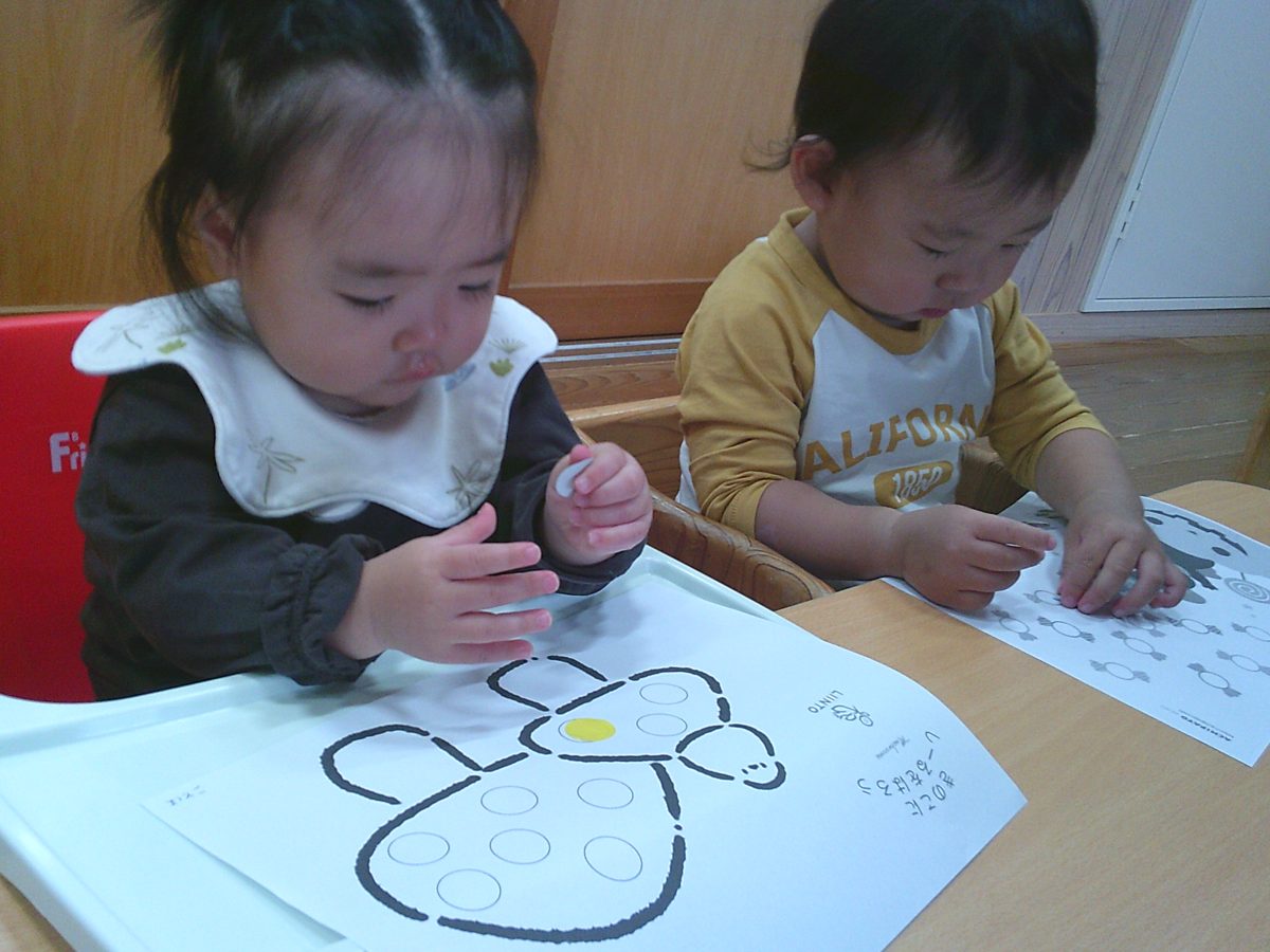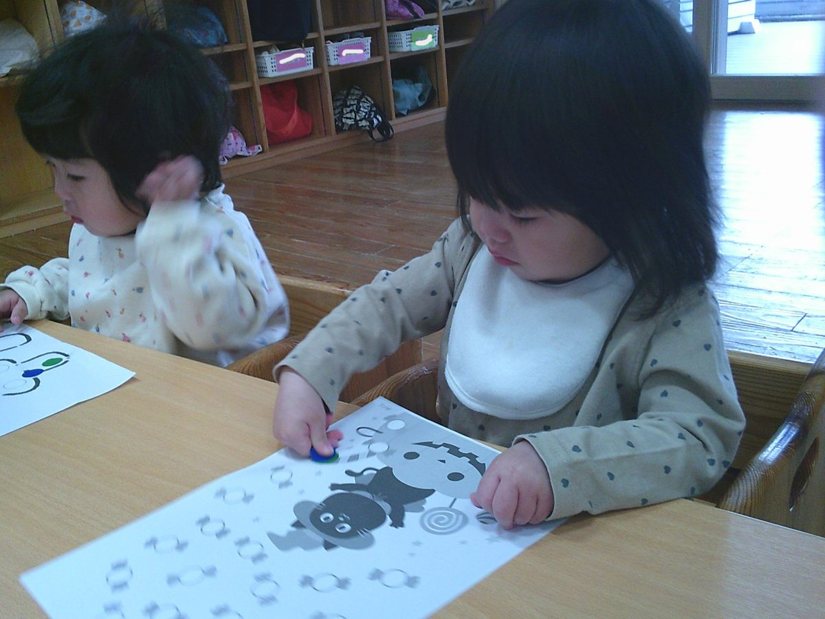 今日はシール貼りをしました!みんな真剣に貼っています😊✨