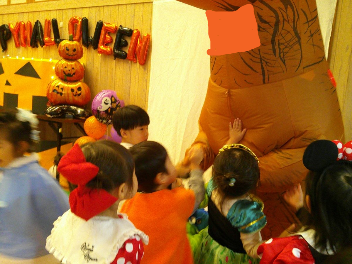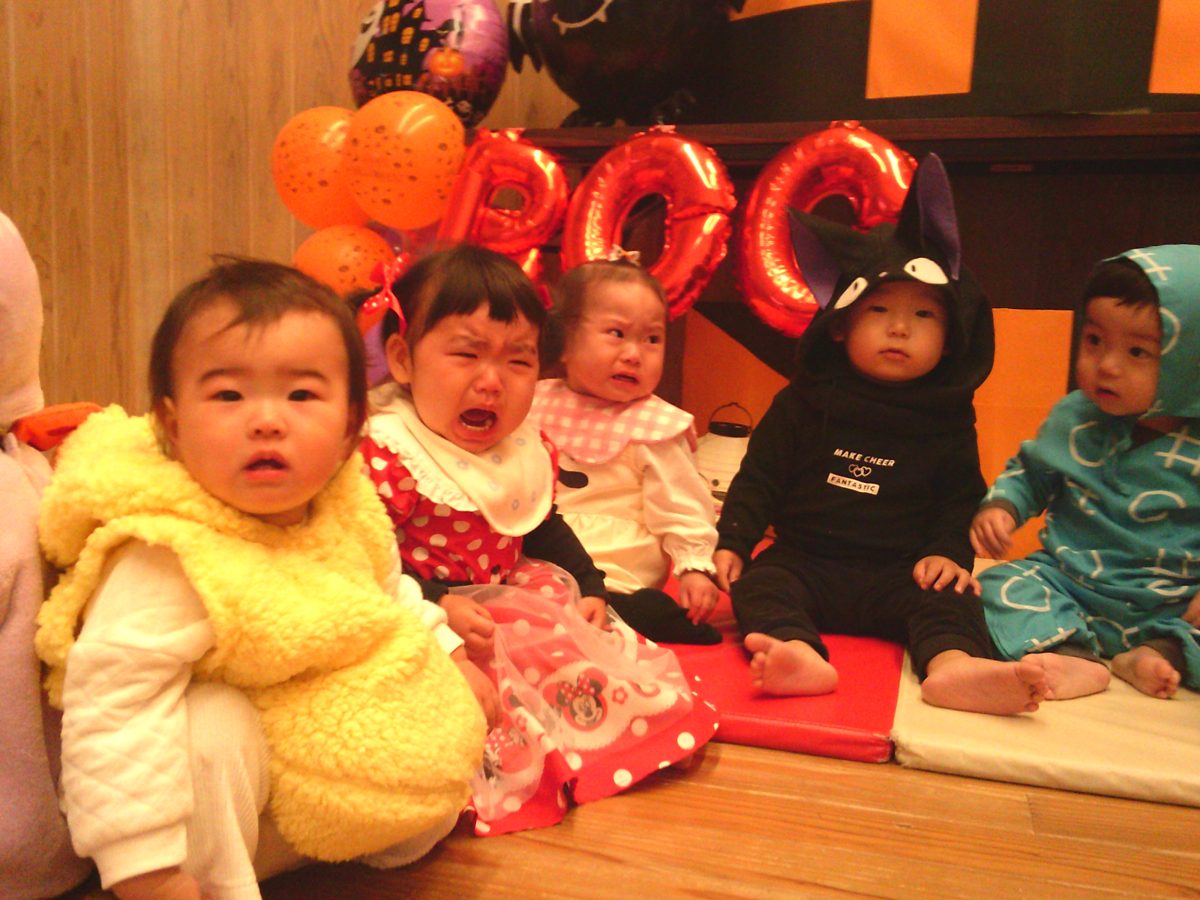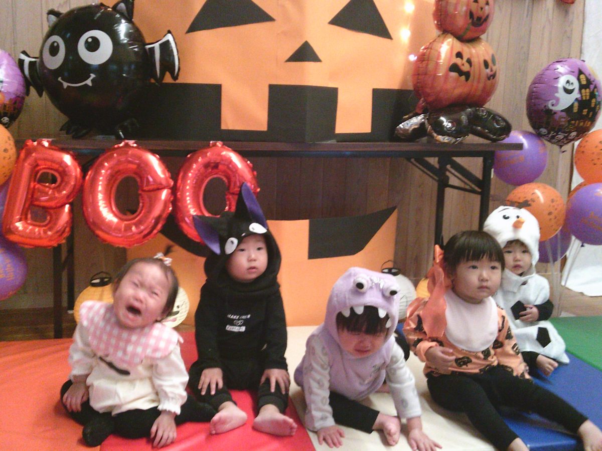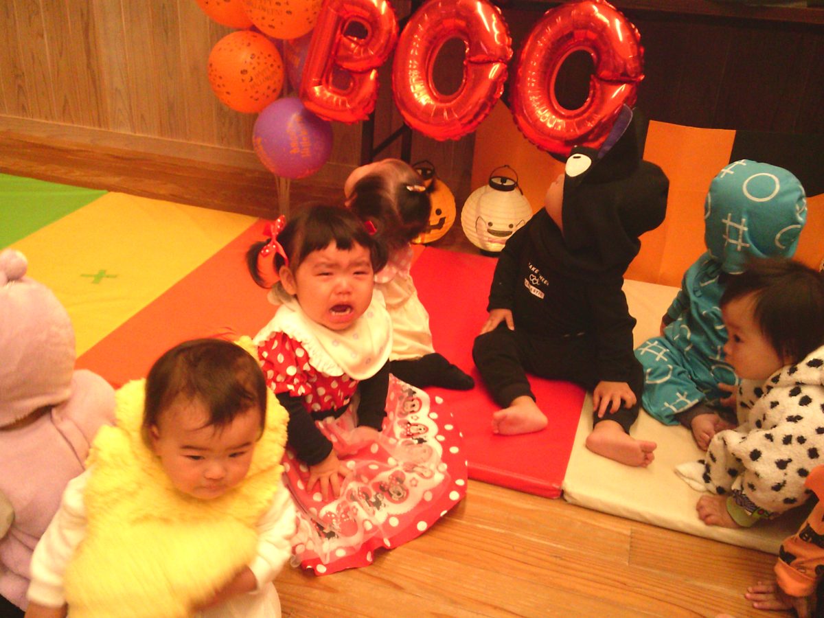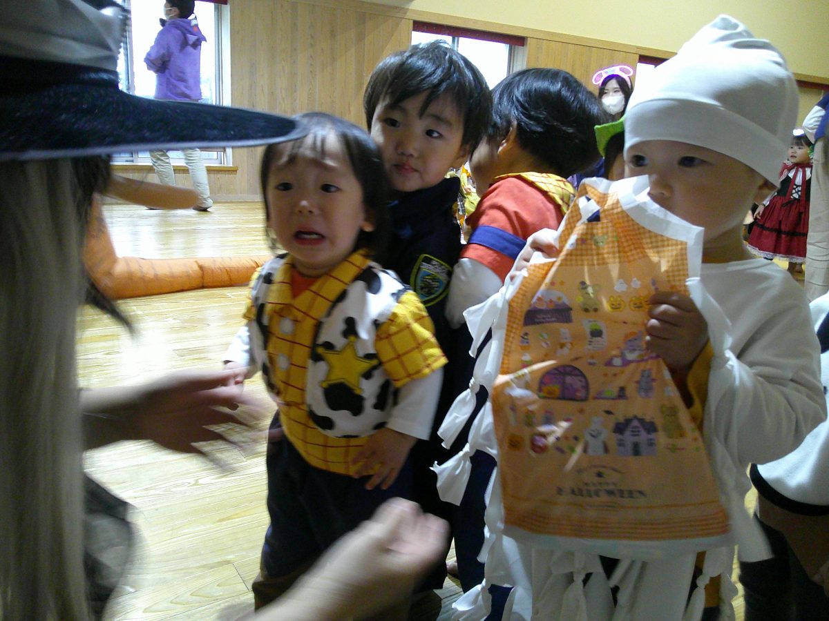 いつもと違う雰囲気と装飾が怖かったのか涙するお友だちも、、、😢