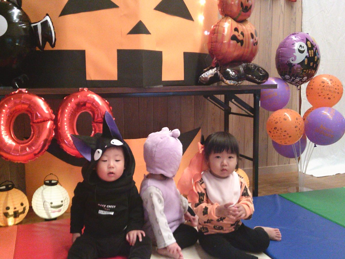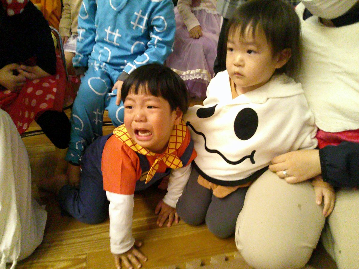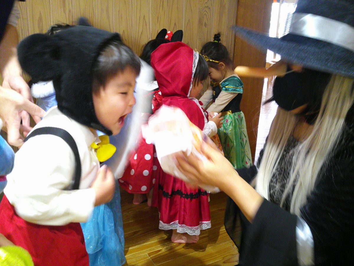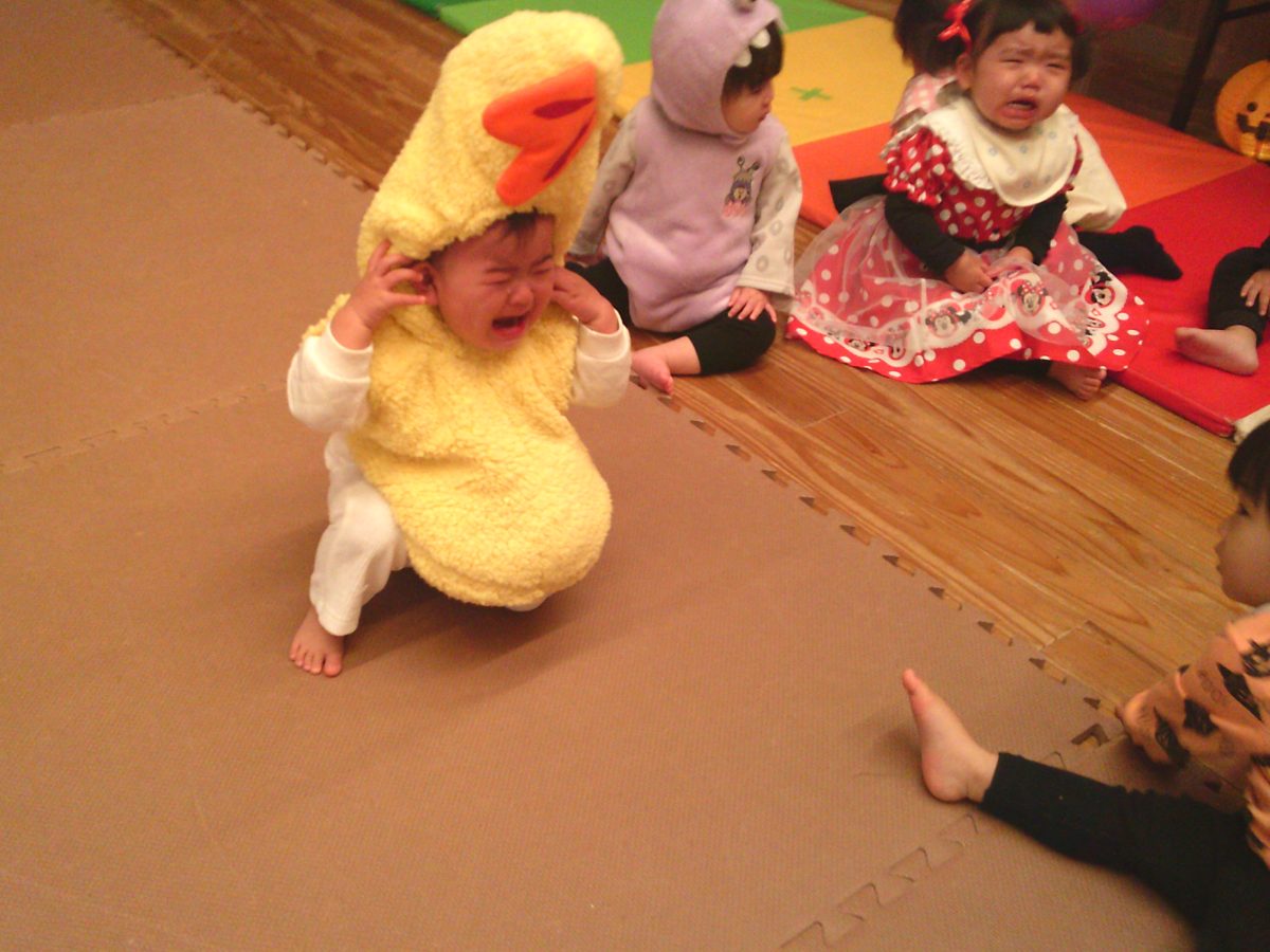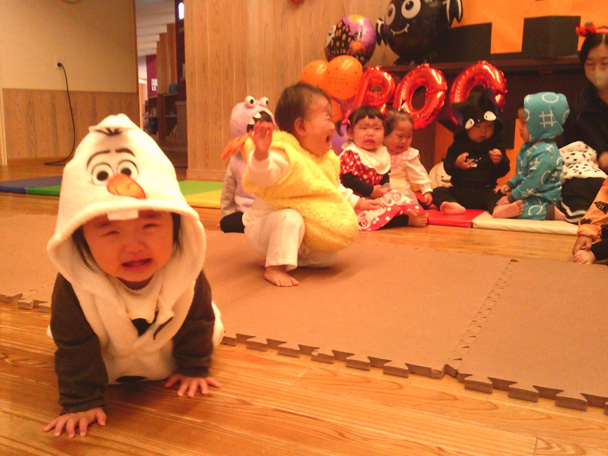 いつもと違う雰囲気と装飾が怖かったのか涙するお友だちも、、、😢