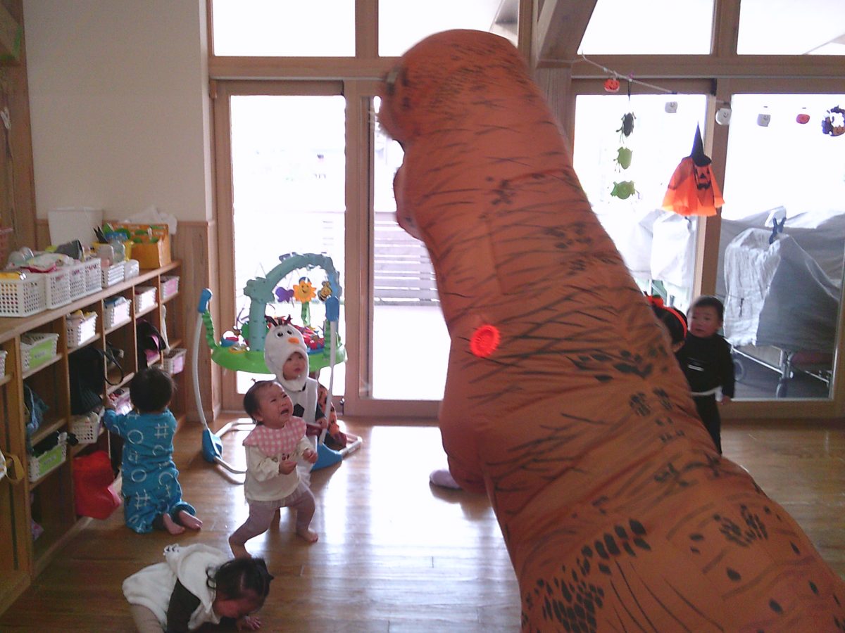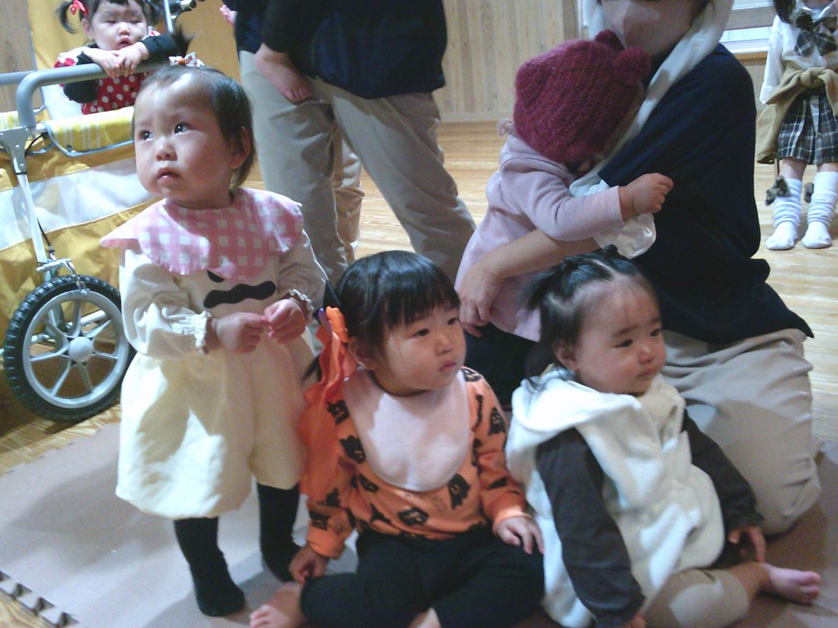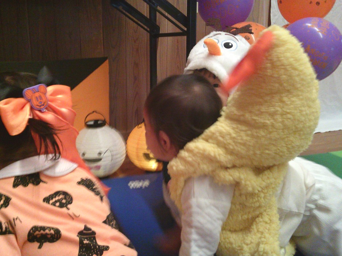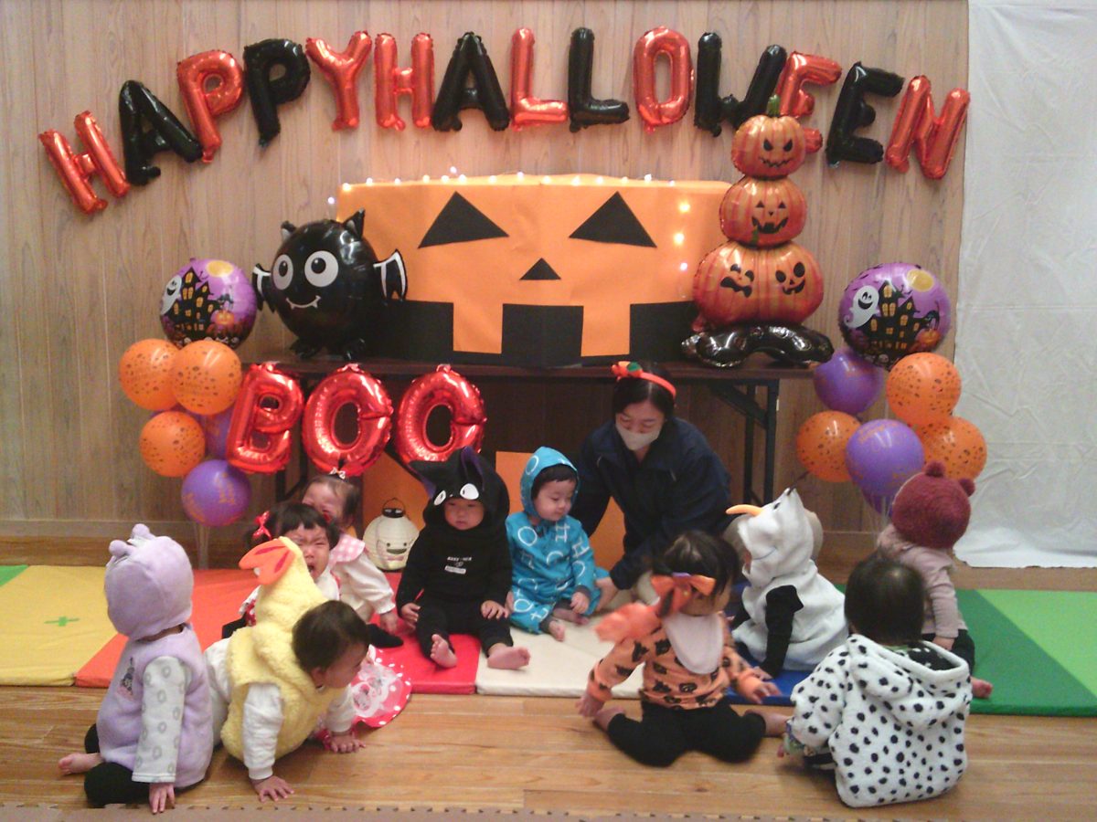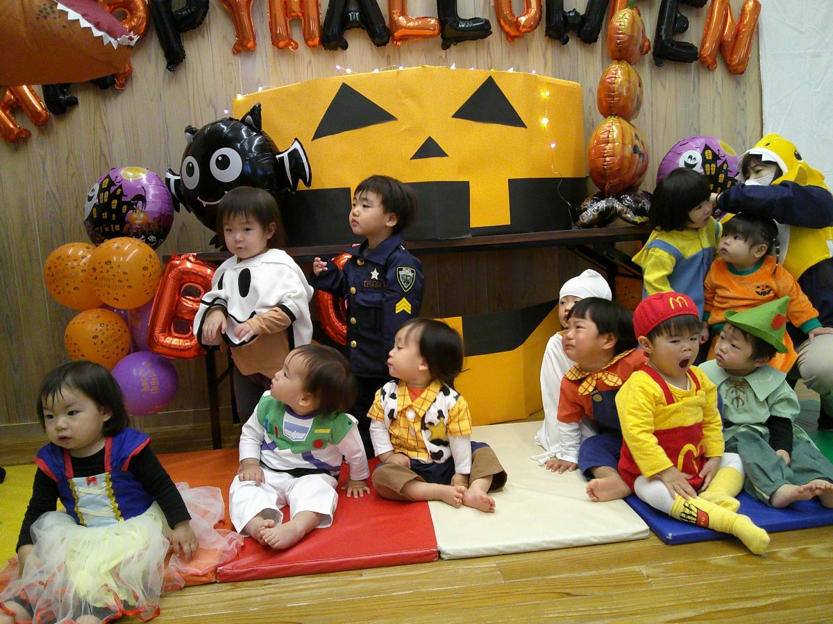 いつもと違う雰囲気と装飾が怖かったのか涙するお友だちも、、、😢