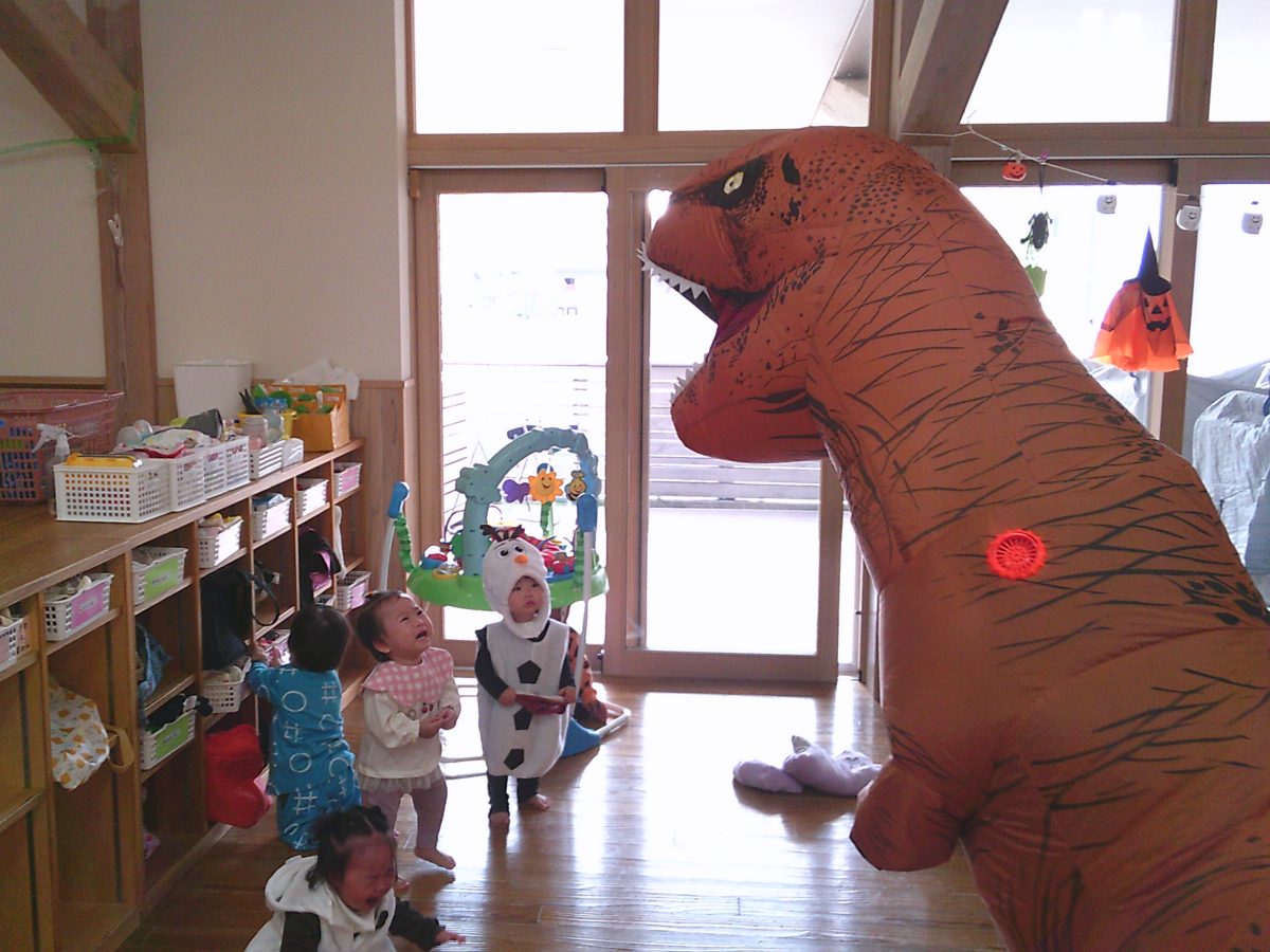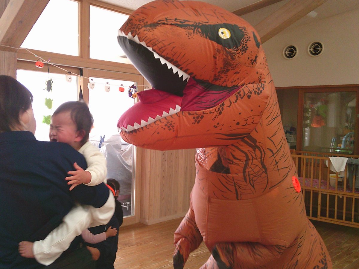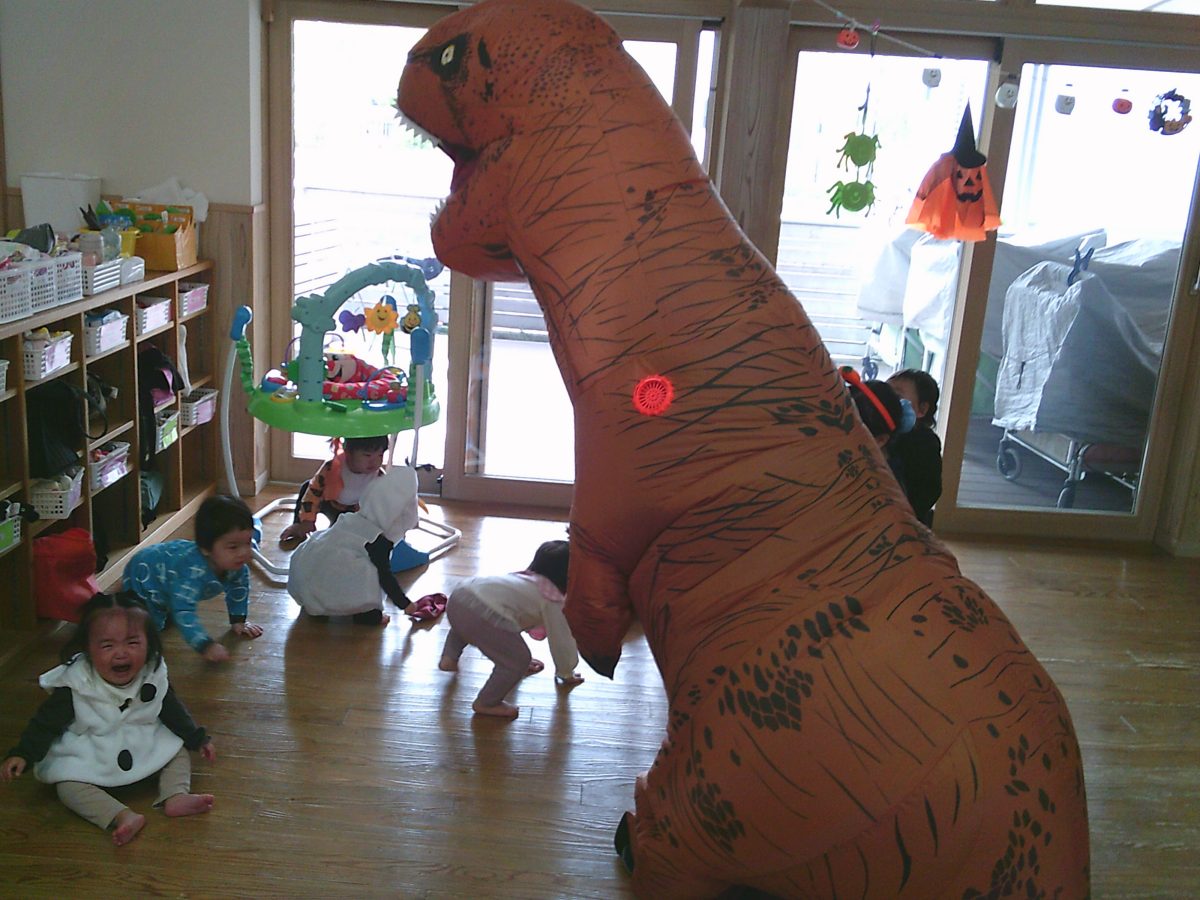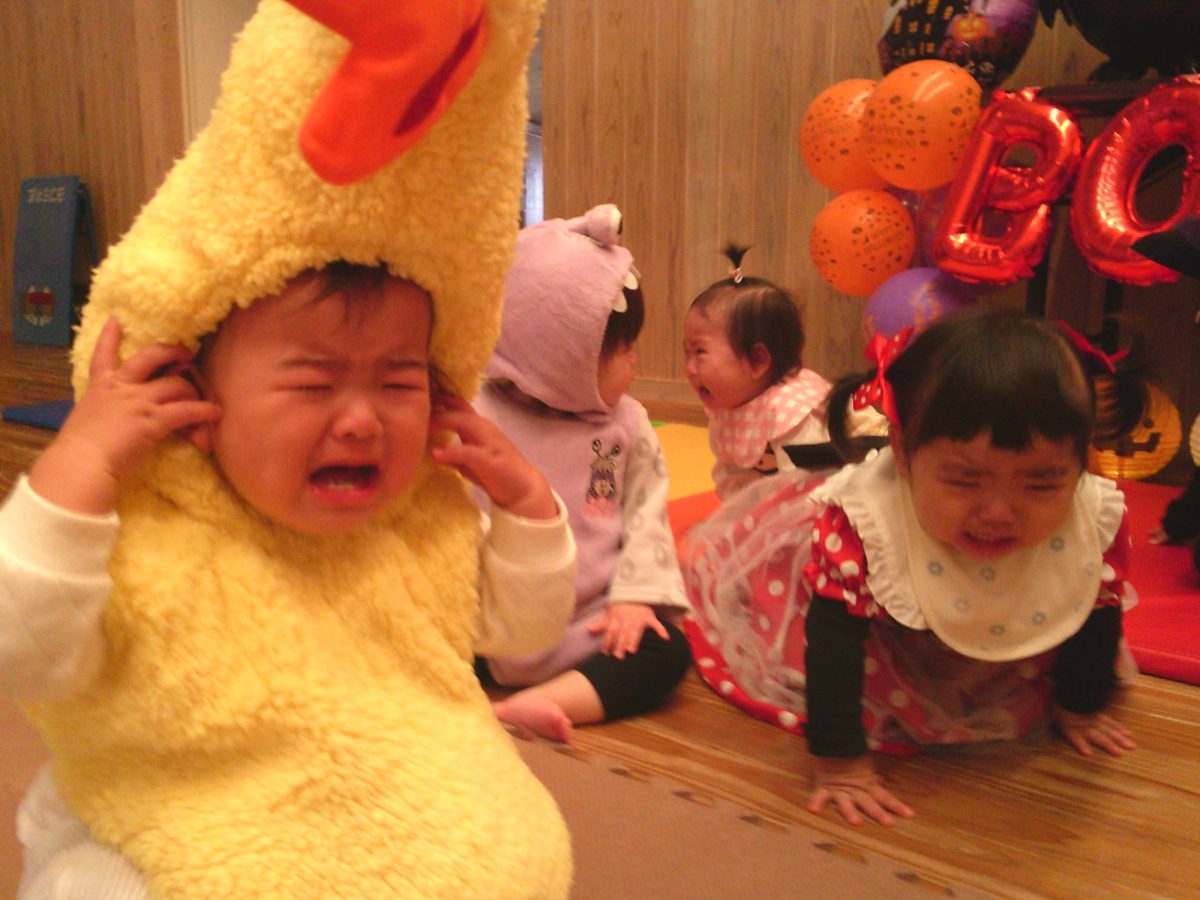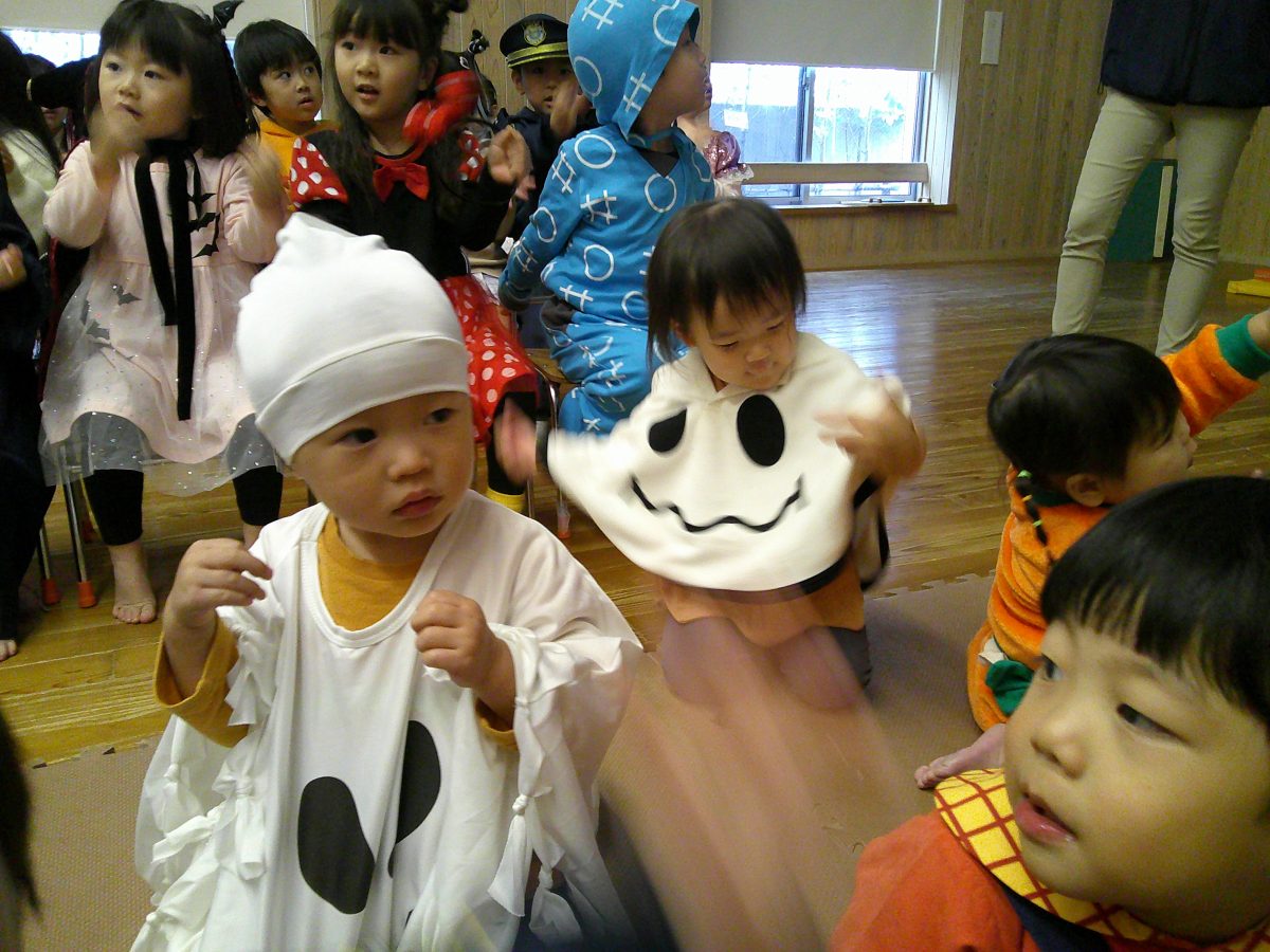 いつもと違う雰囲気と装飾が怖かったのか涙するお友だちも、、、😢