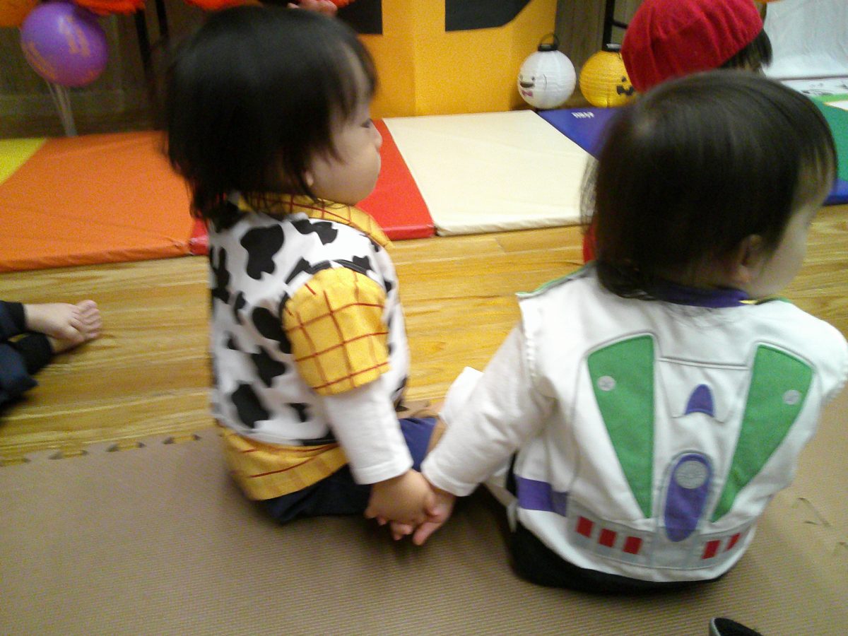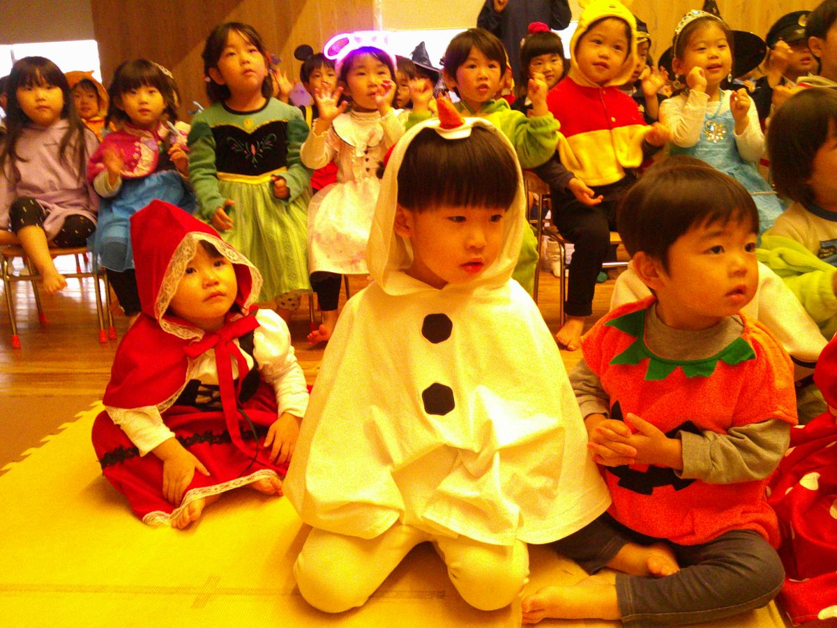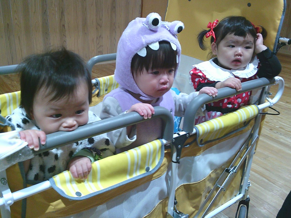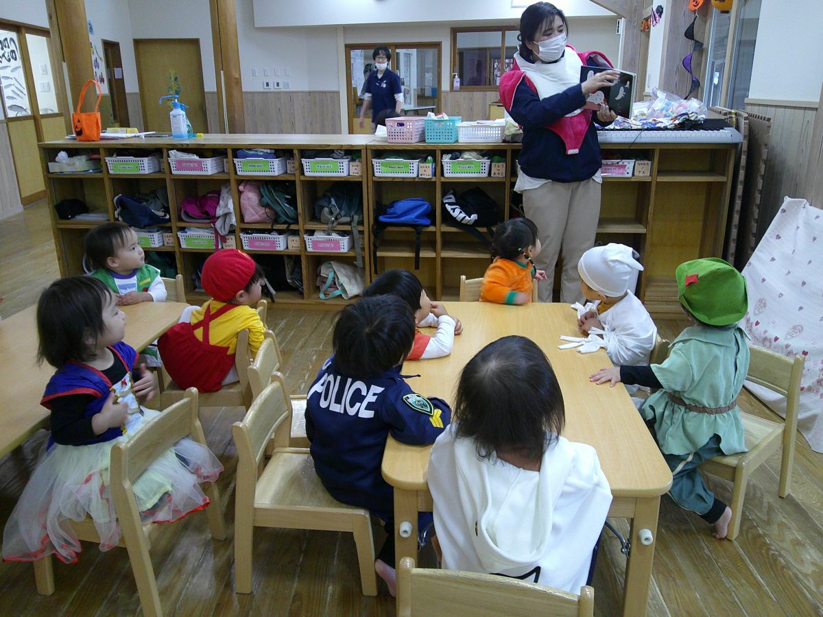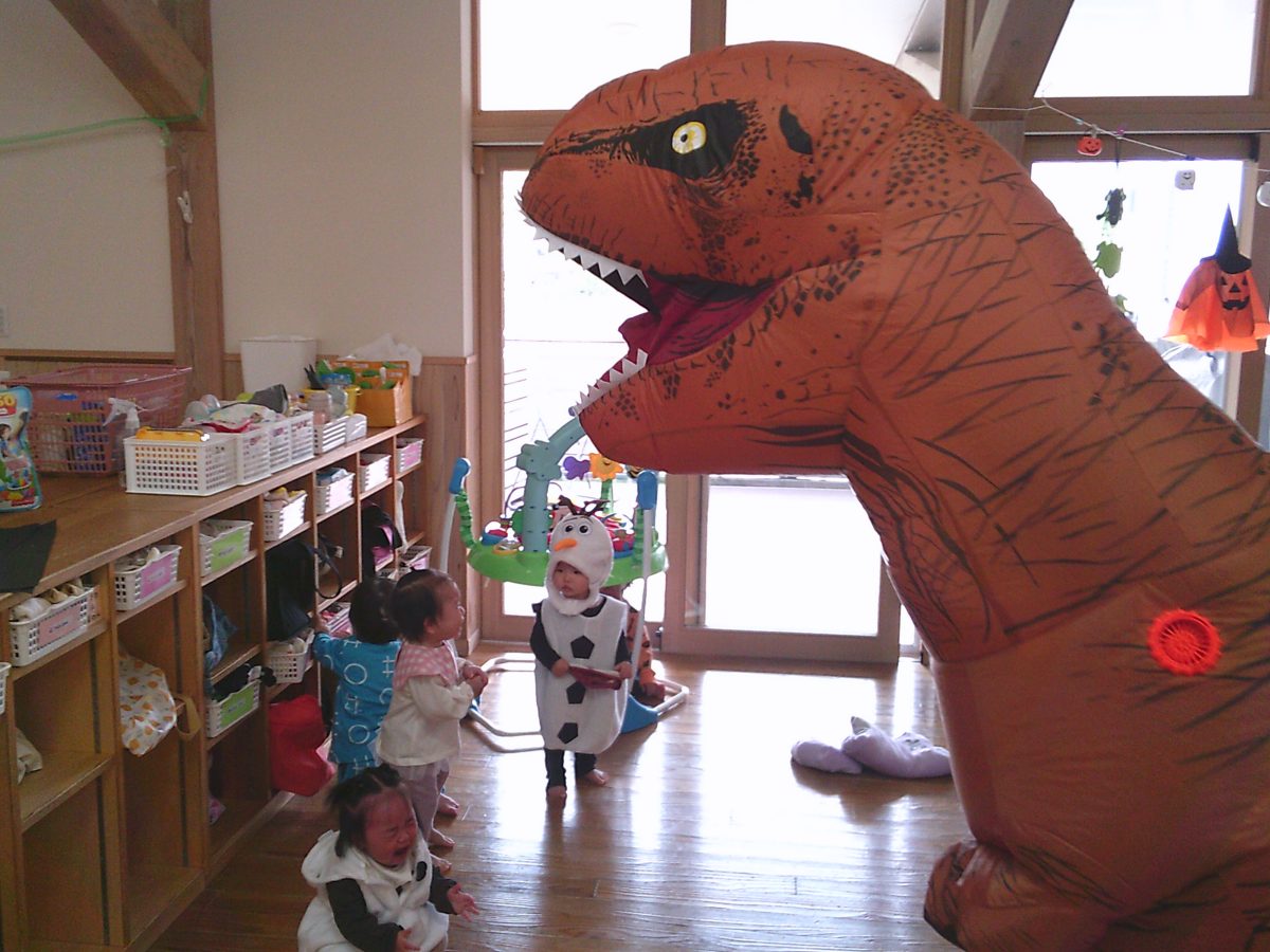 いつもと違う雰囲気と装飾が怖かったのか涙するお友だちも、、、😢