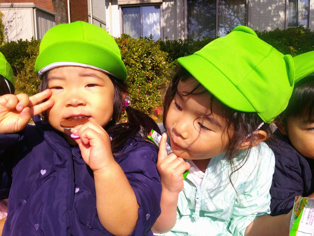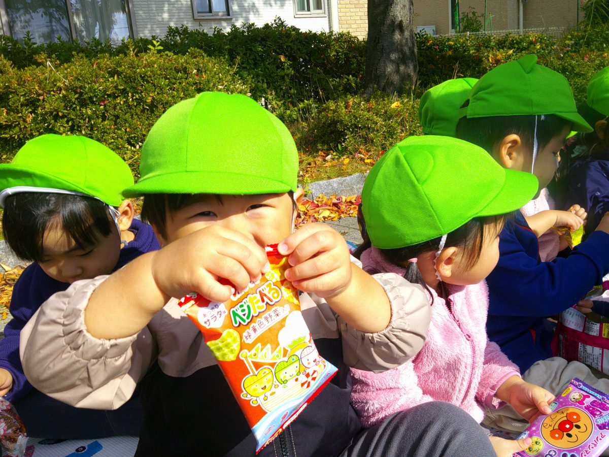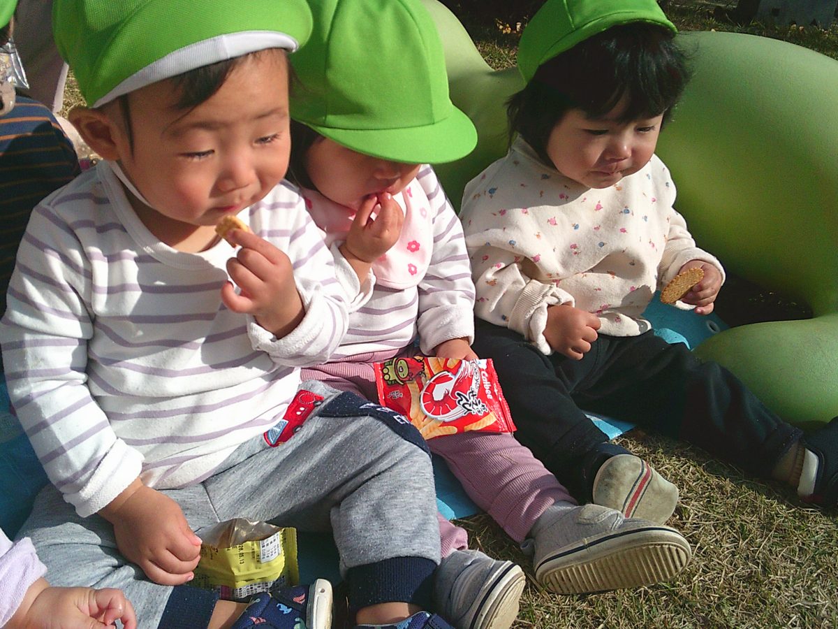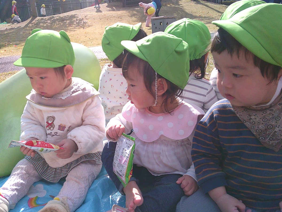 お楽しみのおやつタイム😋青空の下、とっても嬉しそうに食べていました。おやつのご準備、ありがとうございました😊