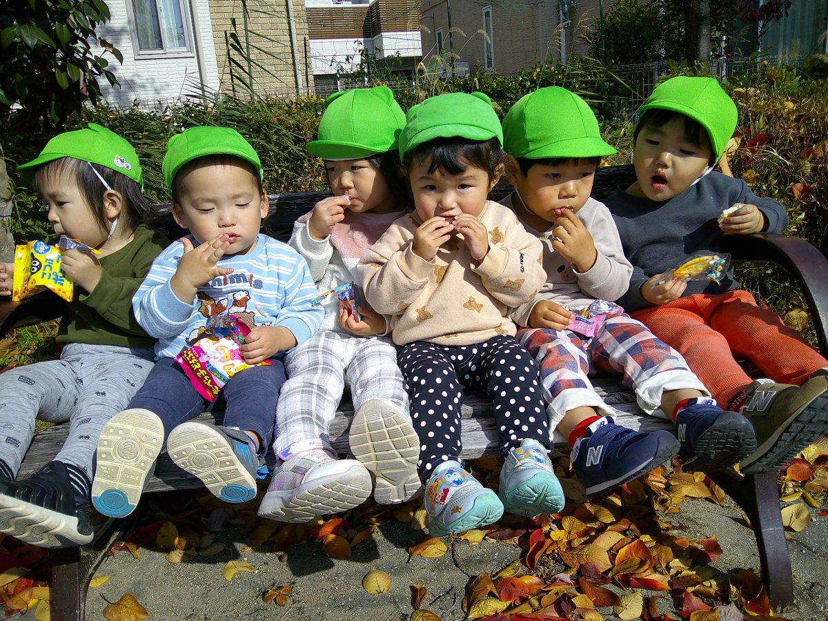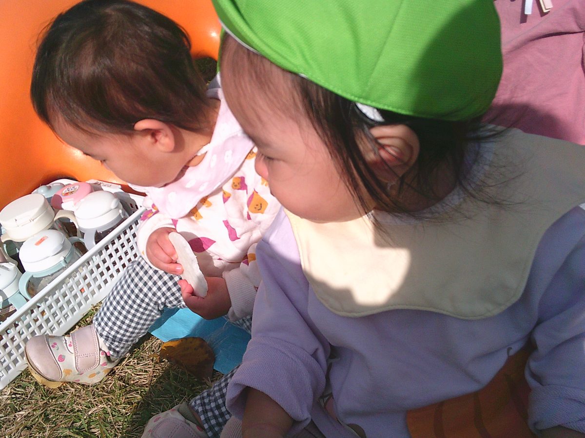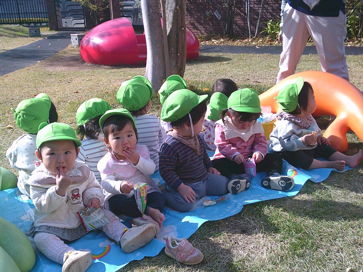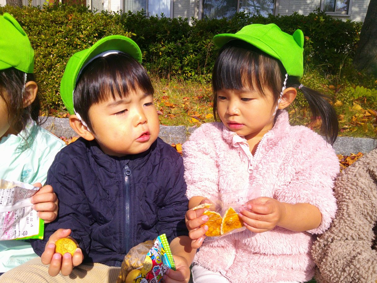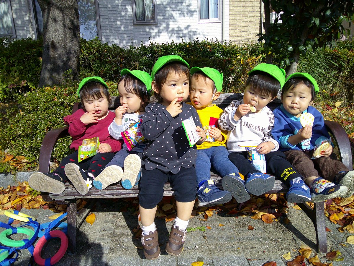 お楽しみのおやつタイム😋青空の下、とっても嬉しそうに食べていました。おやつのご準備、ありがとうございました😊