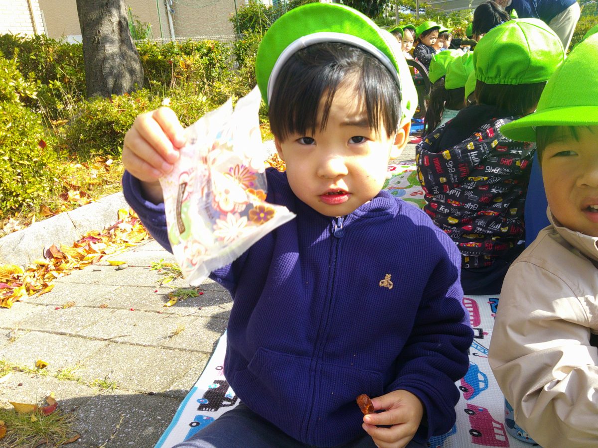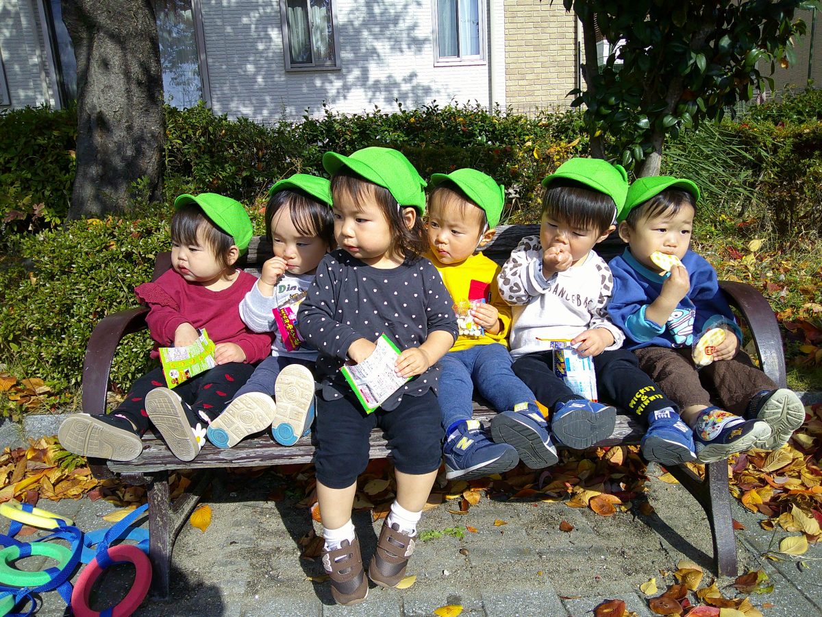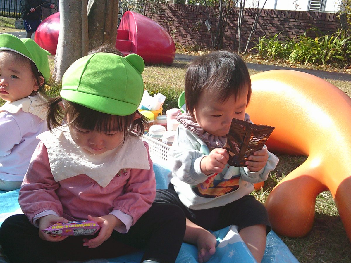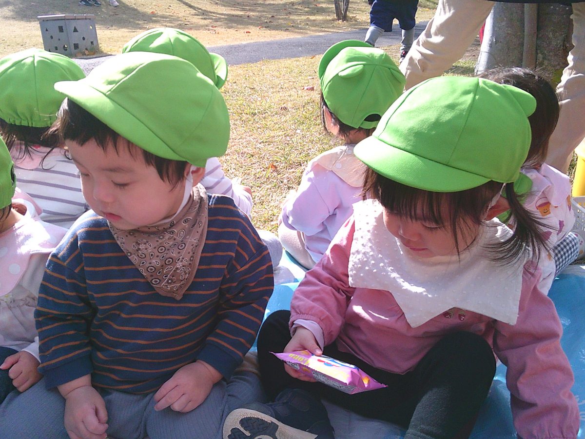 お楽しみのおやつタイム😋青空の下、とっても嬉しそうに食べていました。おやつのご準備、ありがとうございました😊