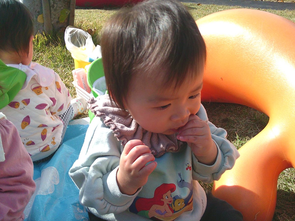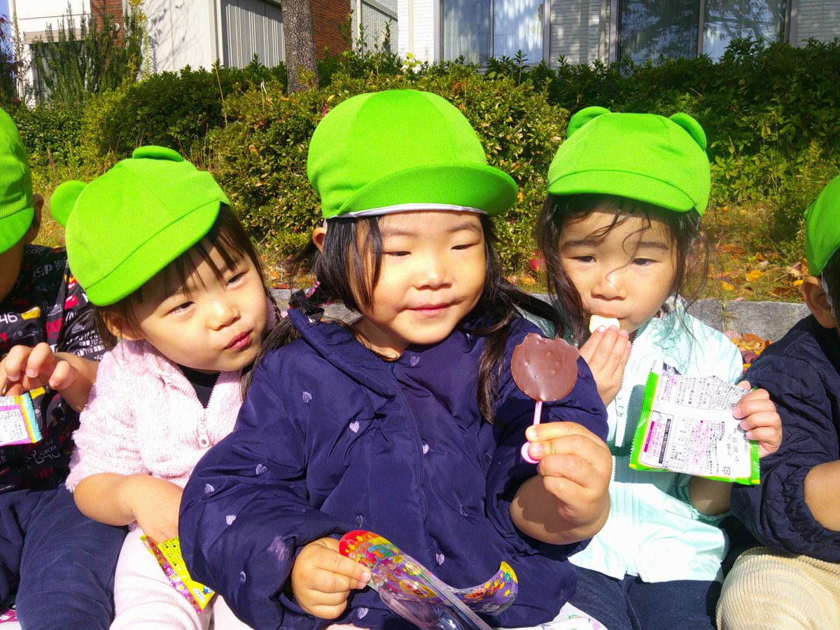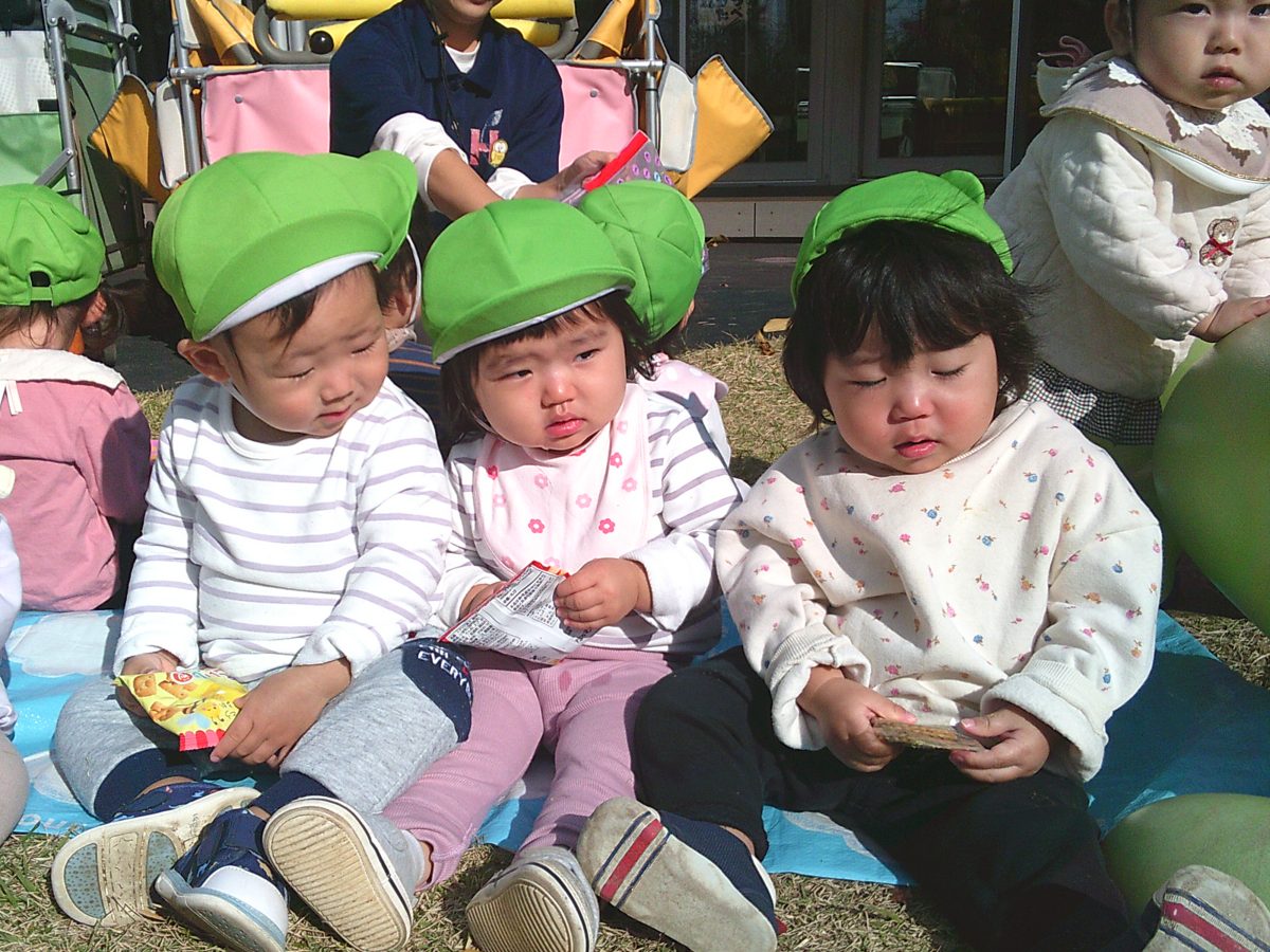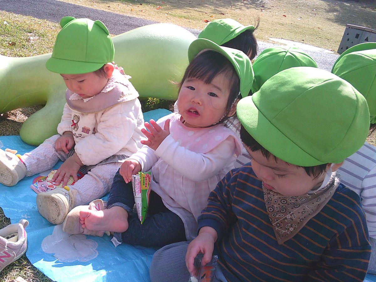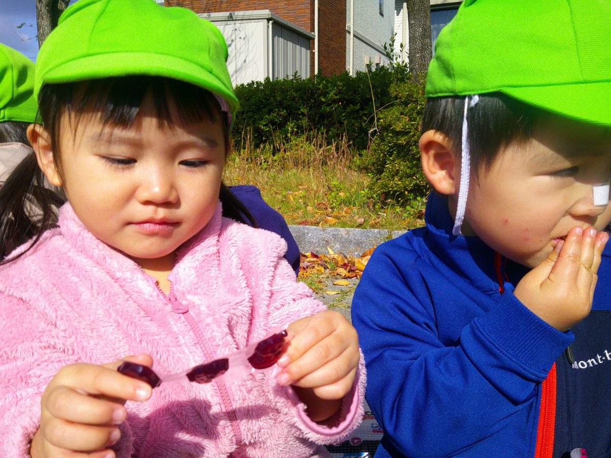 お楽しみのおやつタイム😋青空の下、とっても嬉しそうに食べていました。おやつのご準備、ありがとうございました😊