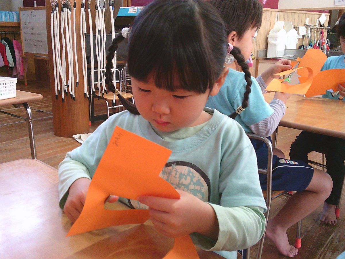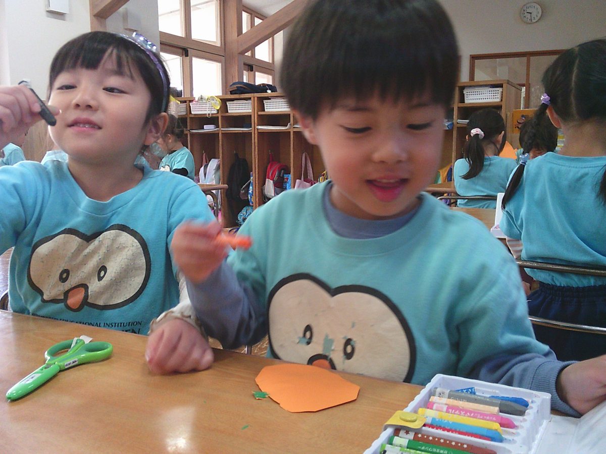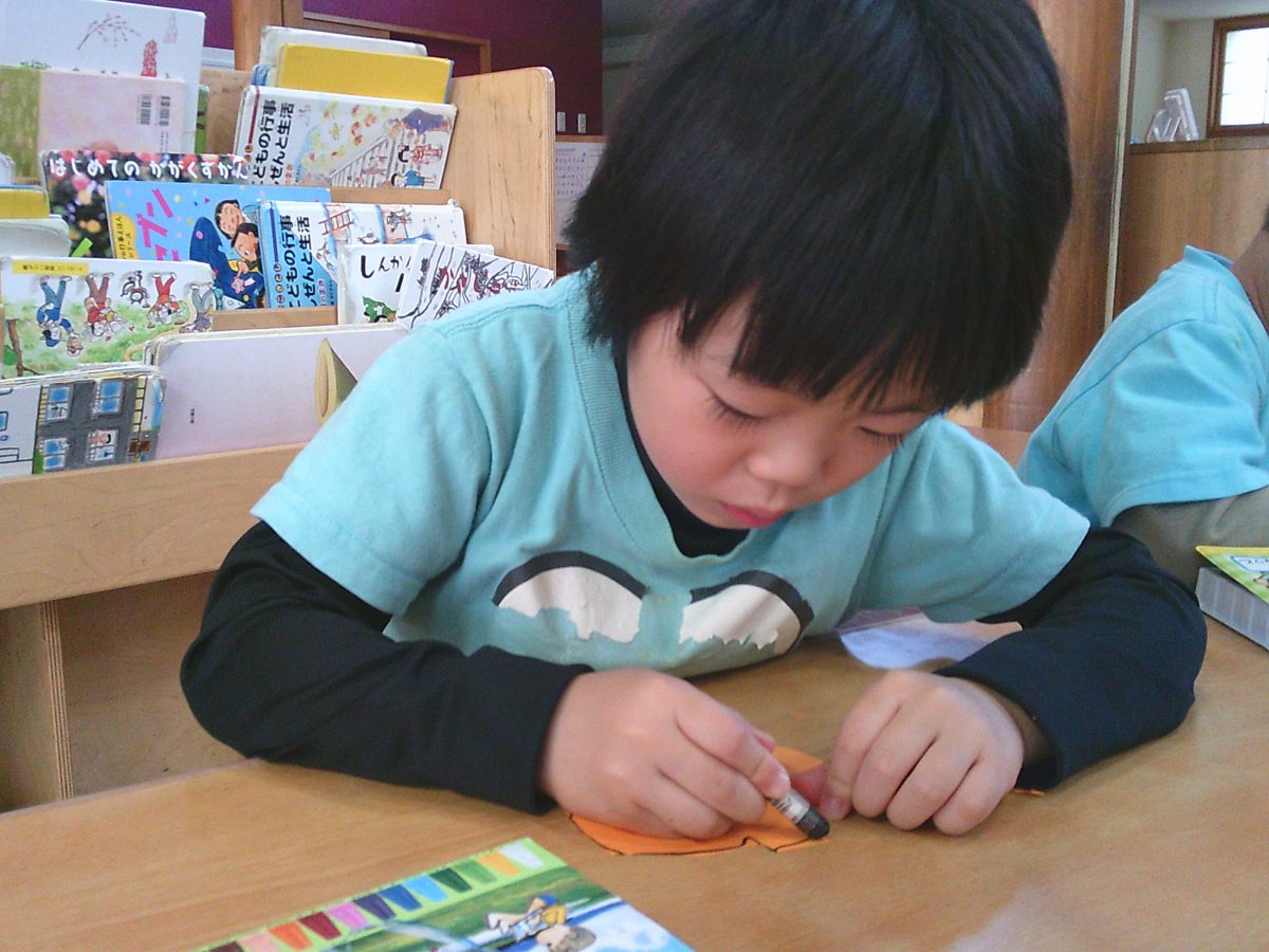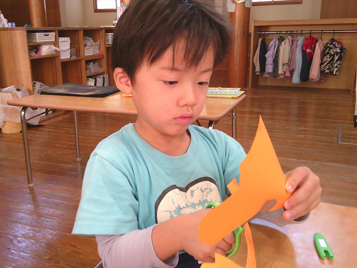 切ったカボチャをクレヨンでお顔を描き、糊を塗って完成🫑🎃✨