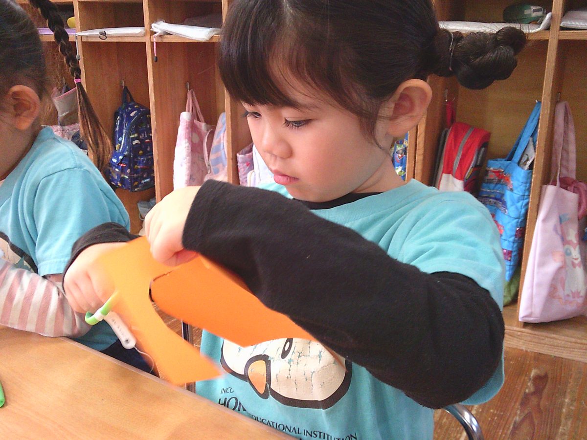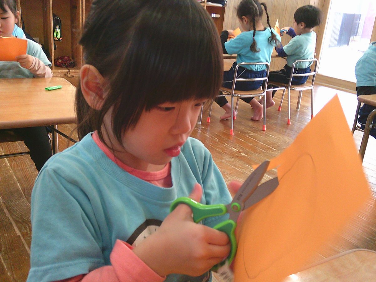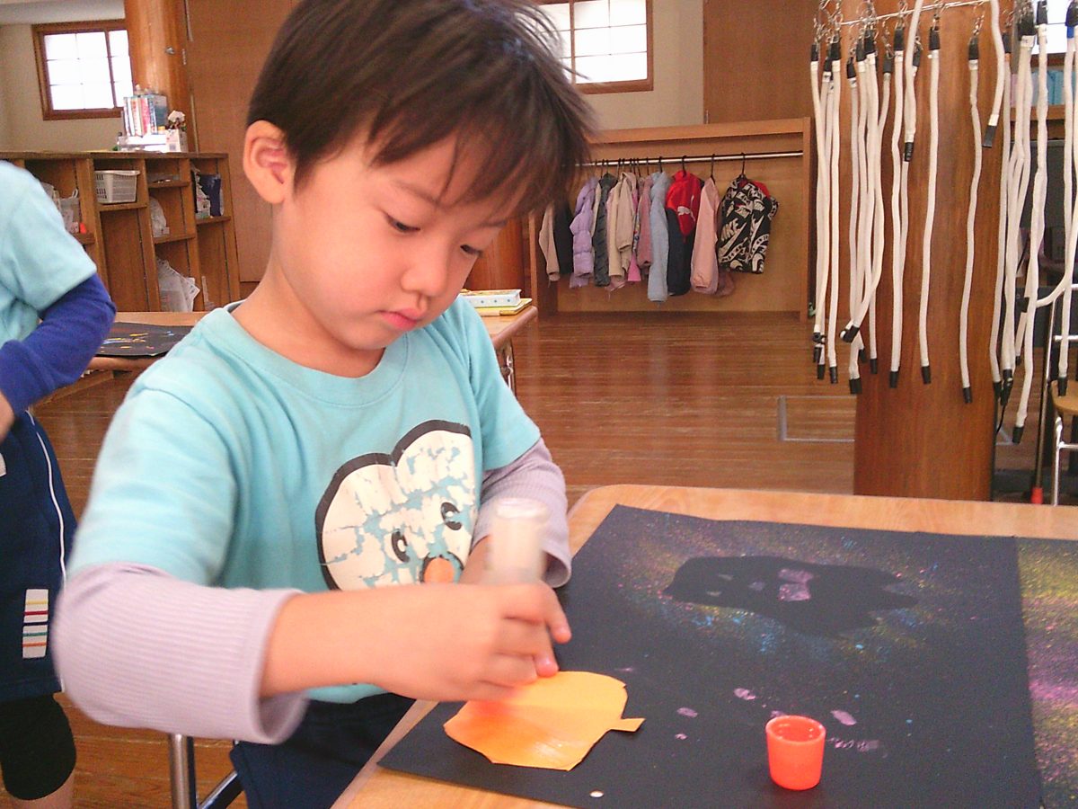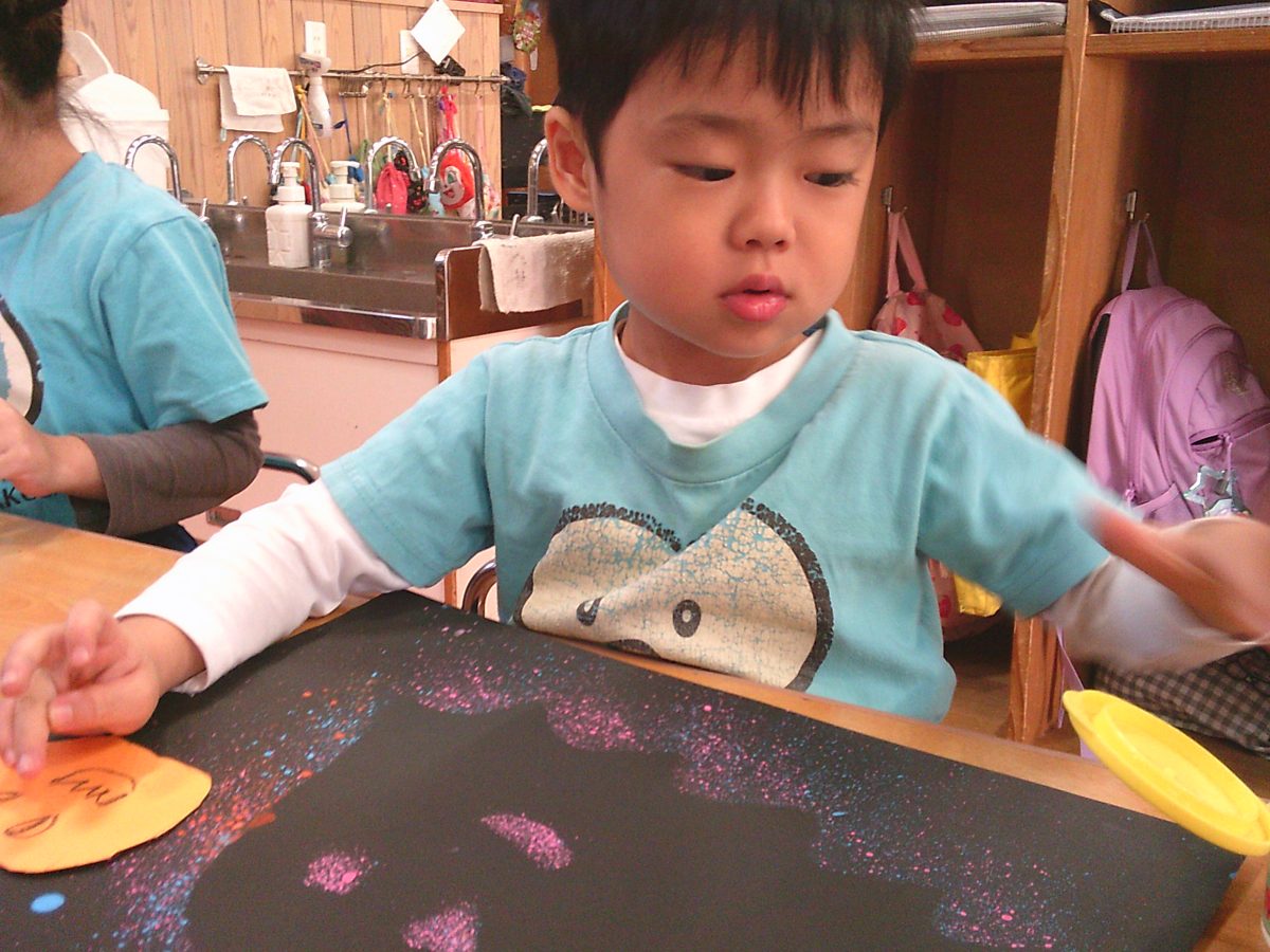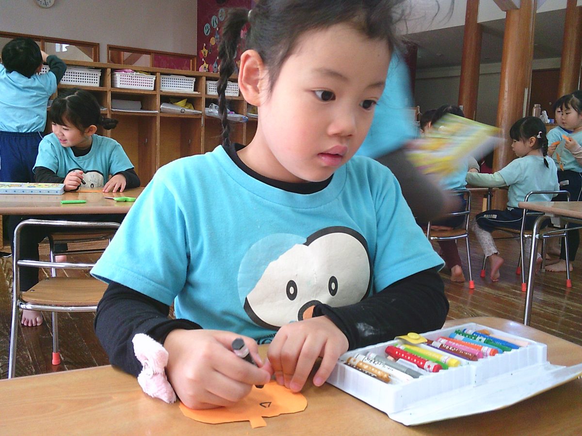 切ったカボチャをクレヨンでお顔を描き、糊を塗って完成🫑🎃✨