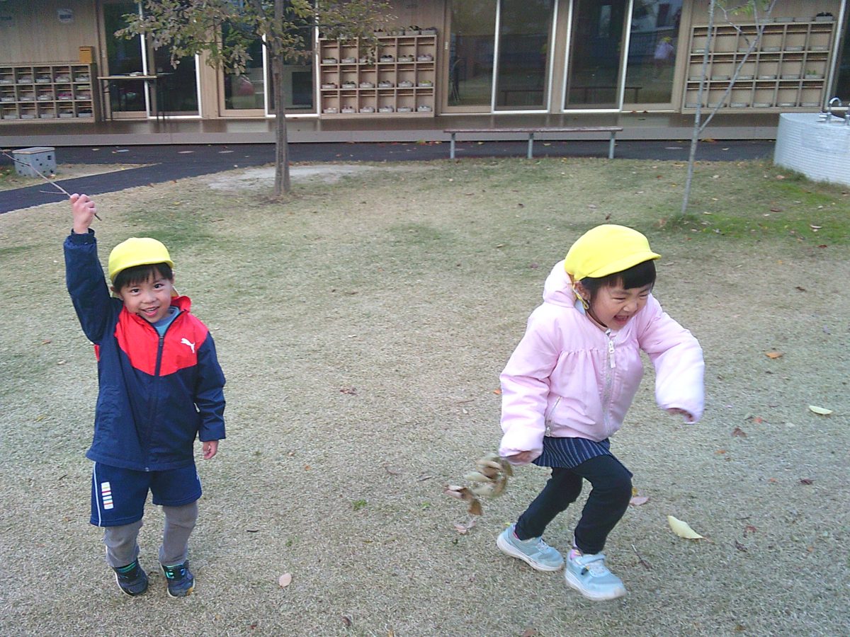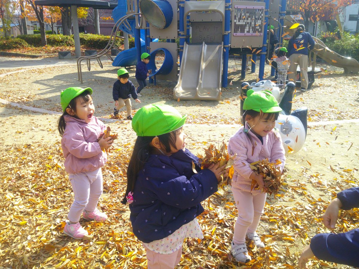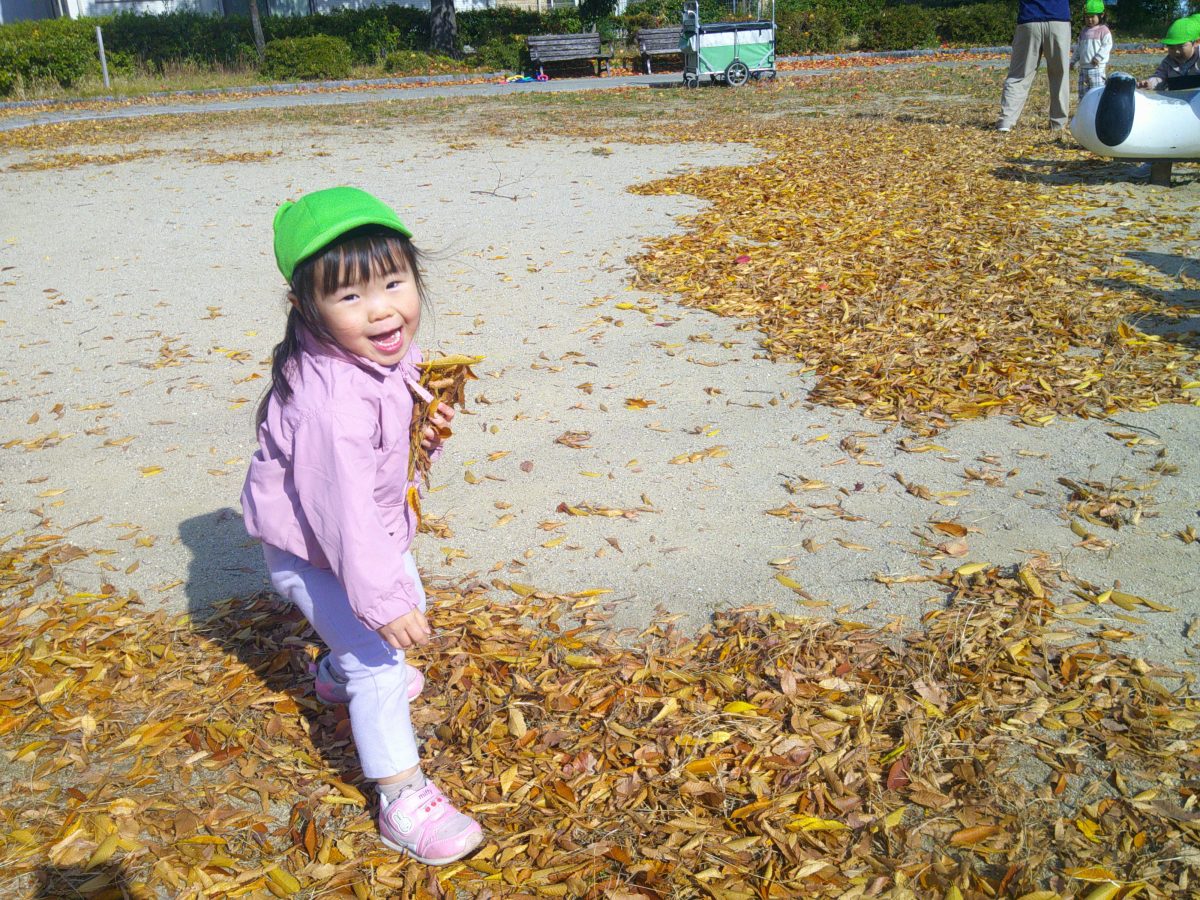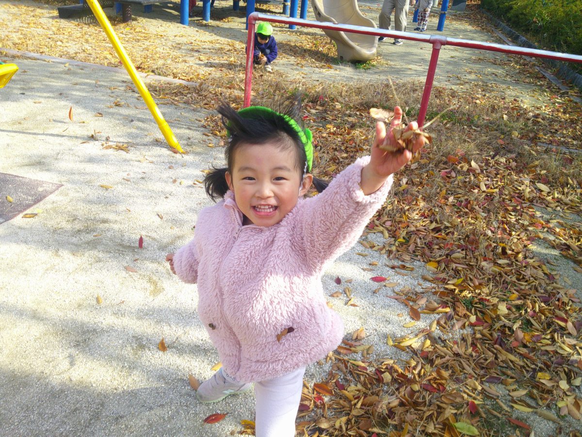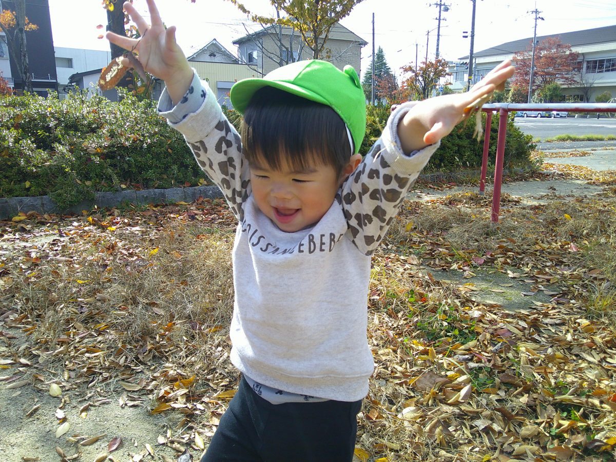 落ち葉を投げて落ち葉シャワーを楽しみました🍂