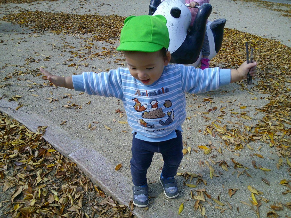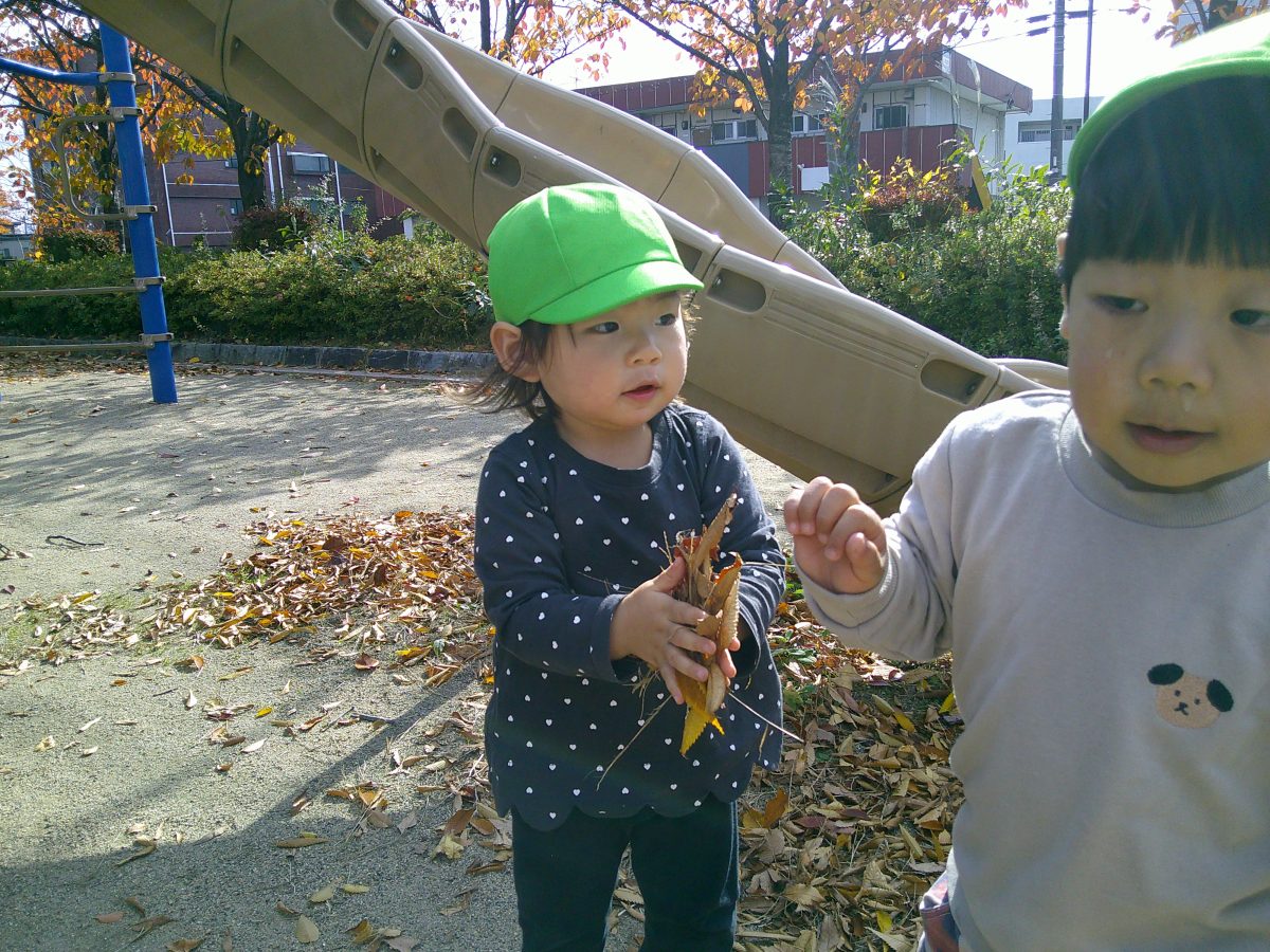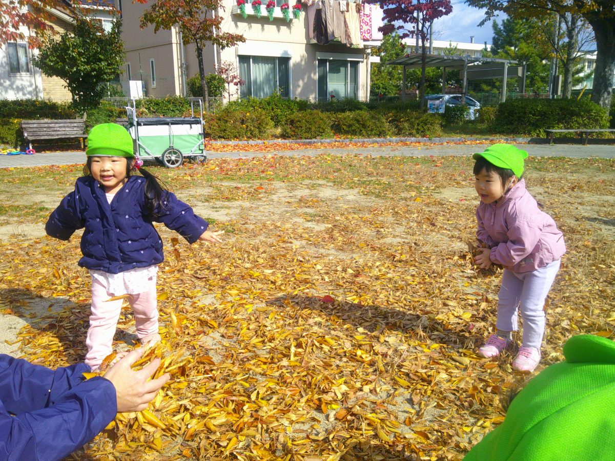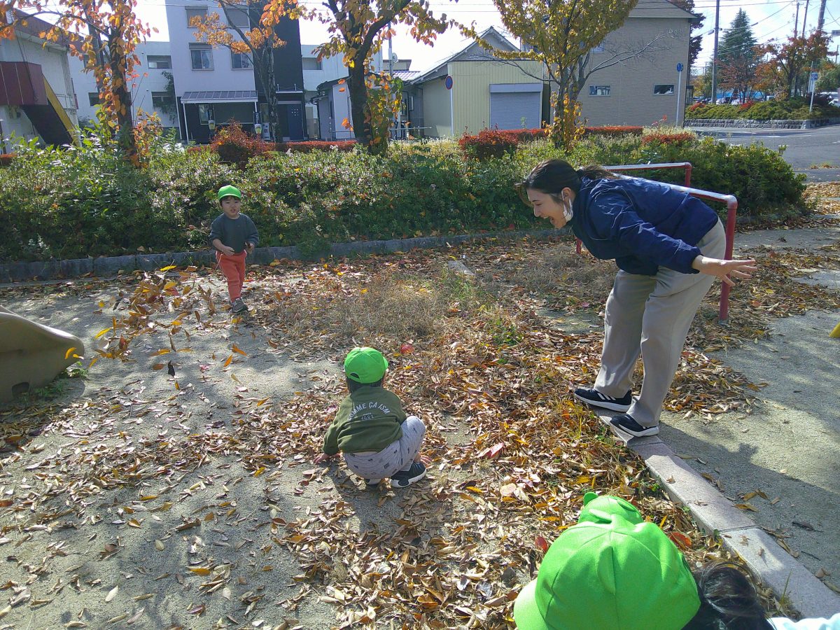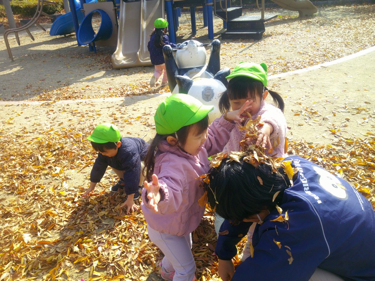 落ち葉を投げて落ち葉シャワーを楽しみました🍂