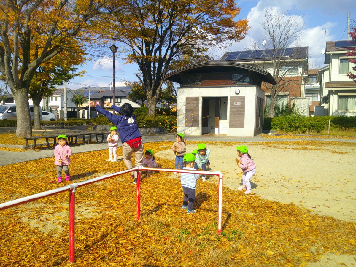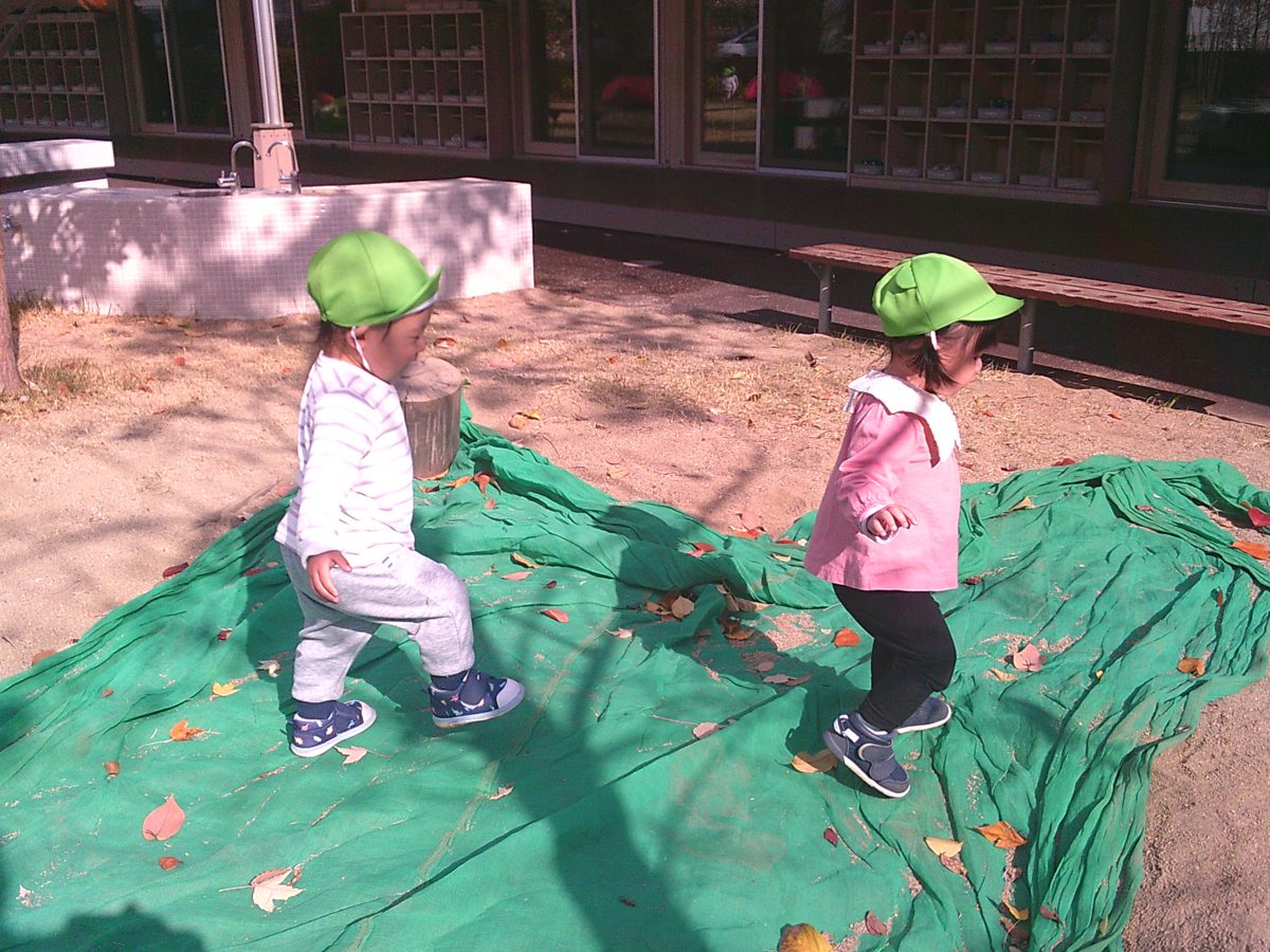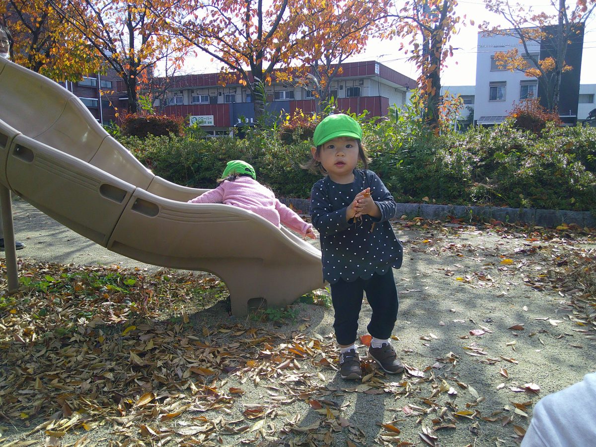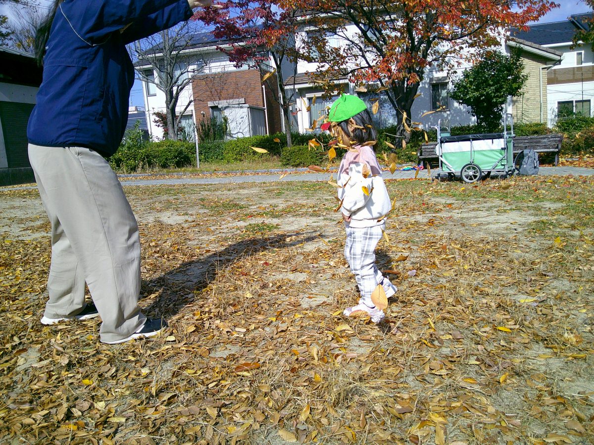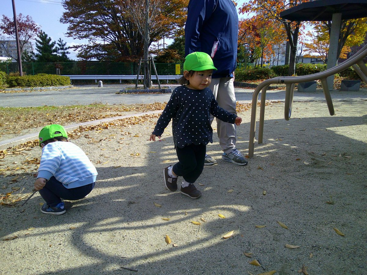 落ち葉を投げて落ち葉シャワーを楽しみました🍂