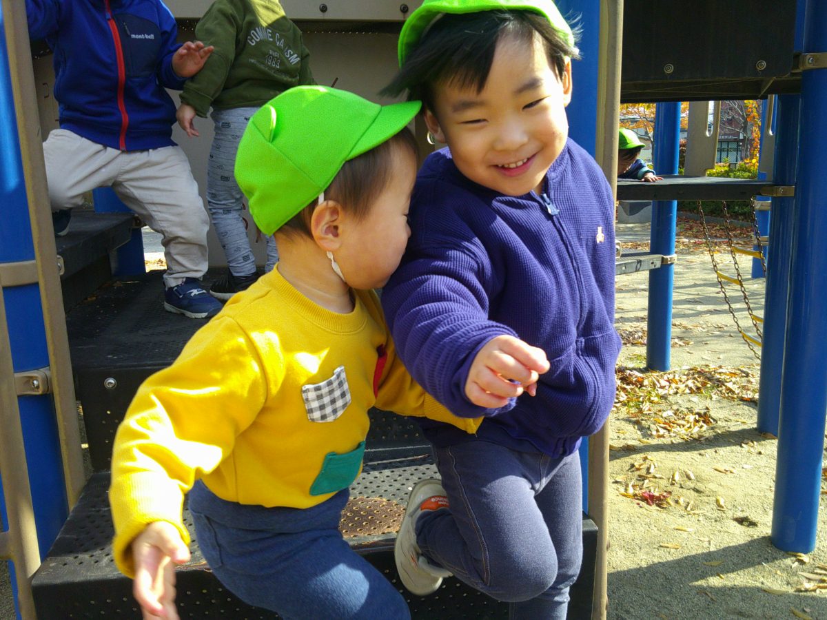 美味しいおやつの後は、元気いっぱい公園あそび😄遊具で遊んだり・・・