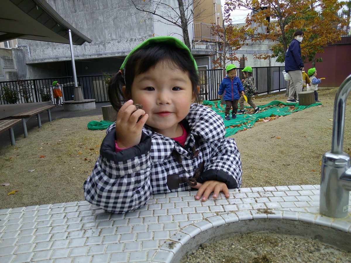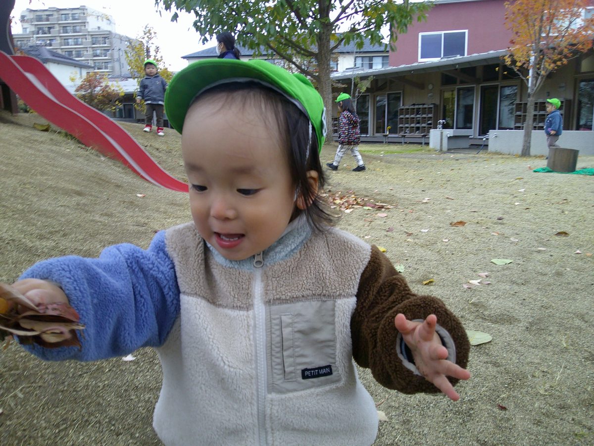 葉っぱや木の実、虫などを発見し大喜びの子ども達でした◎