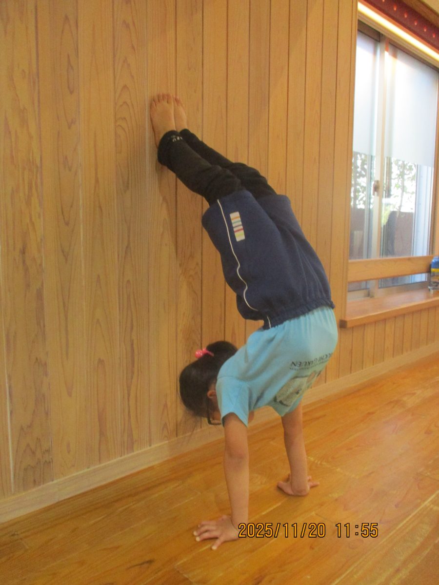 壁逆立ちを頑張って、集中タイムも楽しみました。