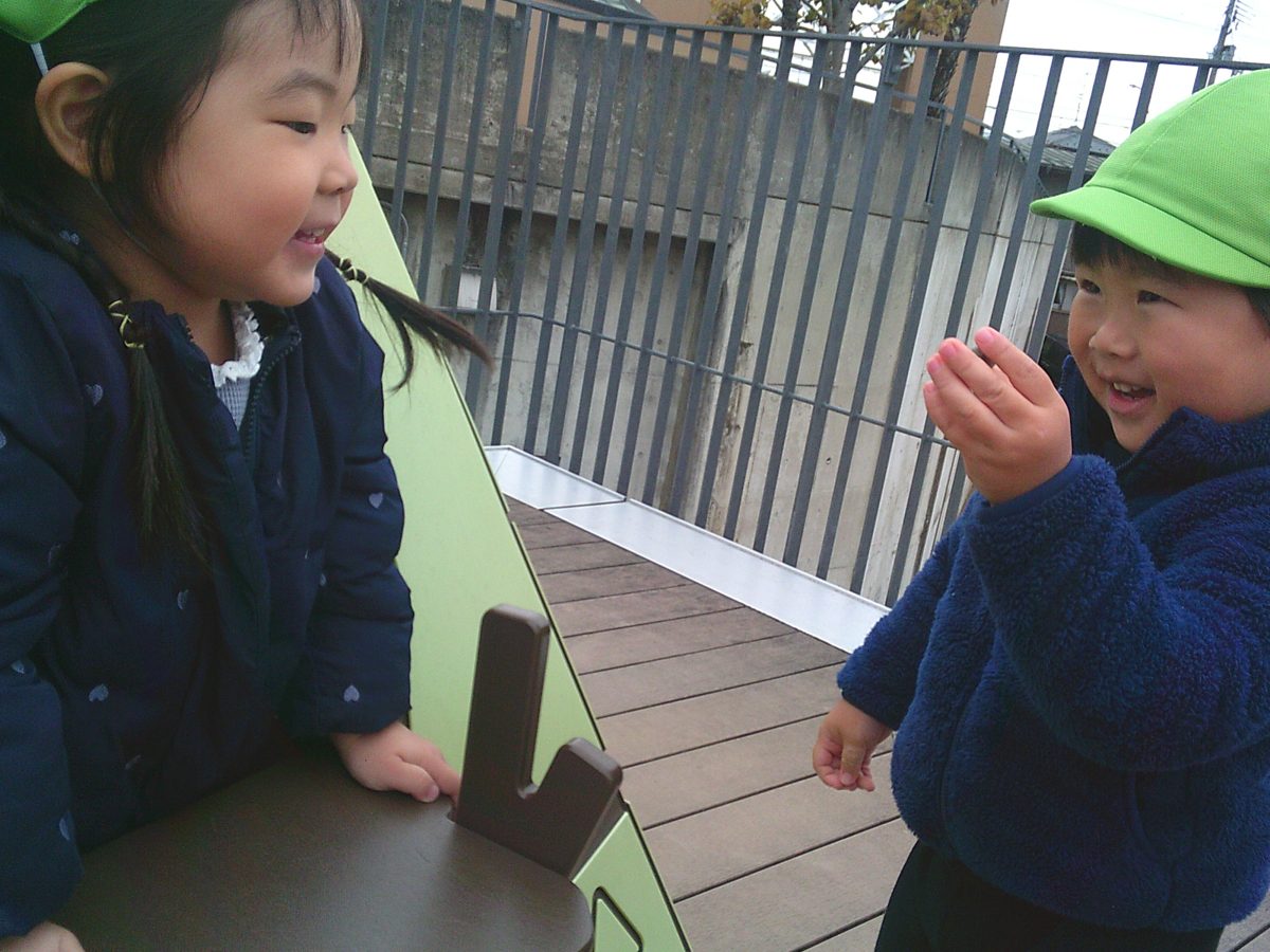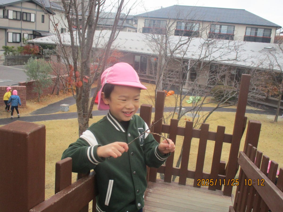 今日は少し、肌寒かったのですが、園庭で遊びました😊