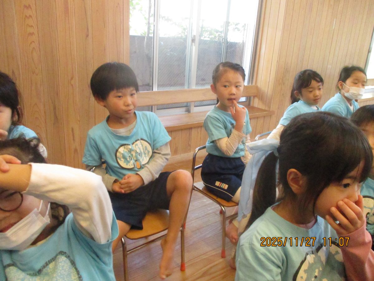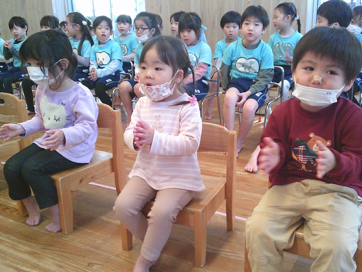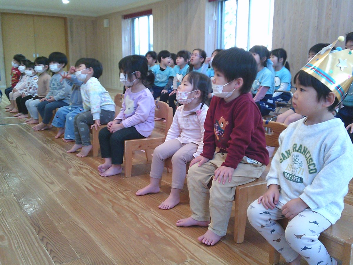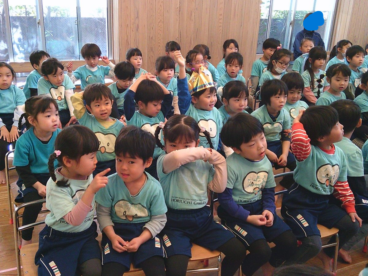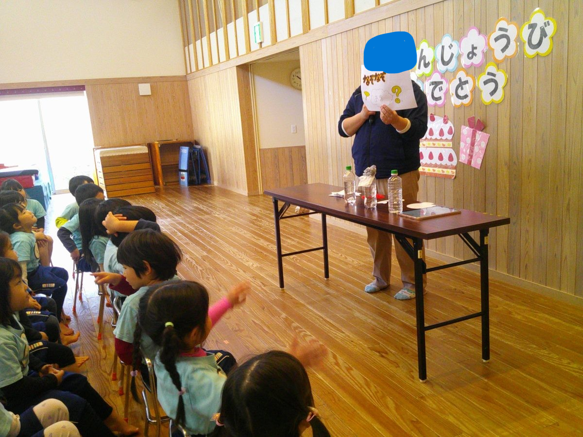 今日はお誕生会🎂 クイズを何としても答えたくてウズウズの子どもたちです😁