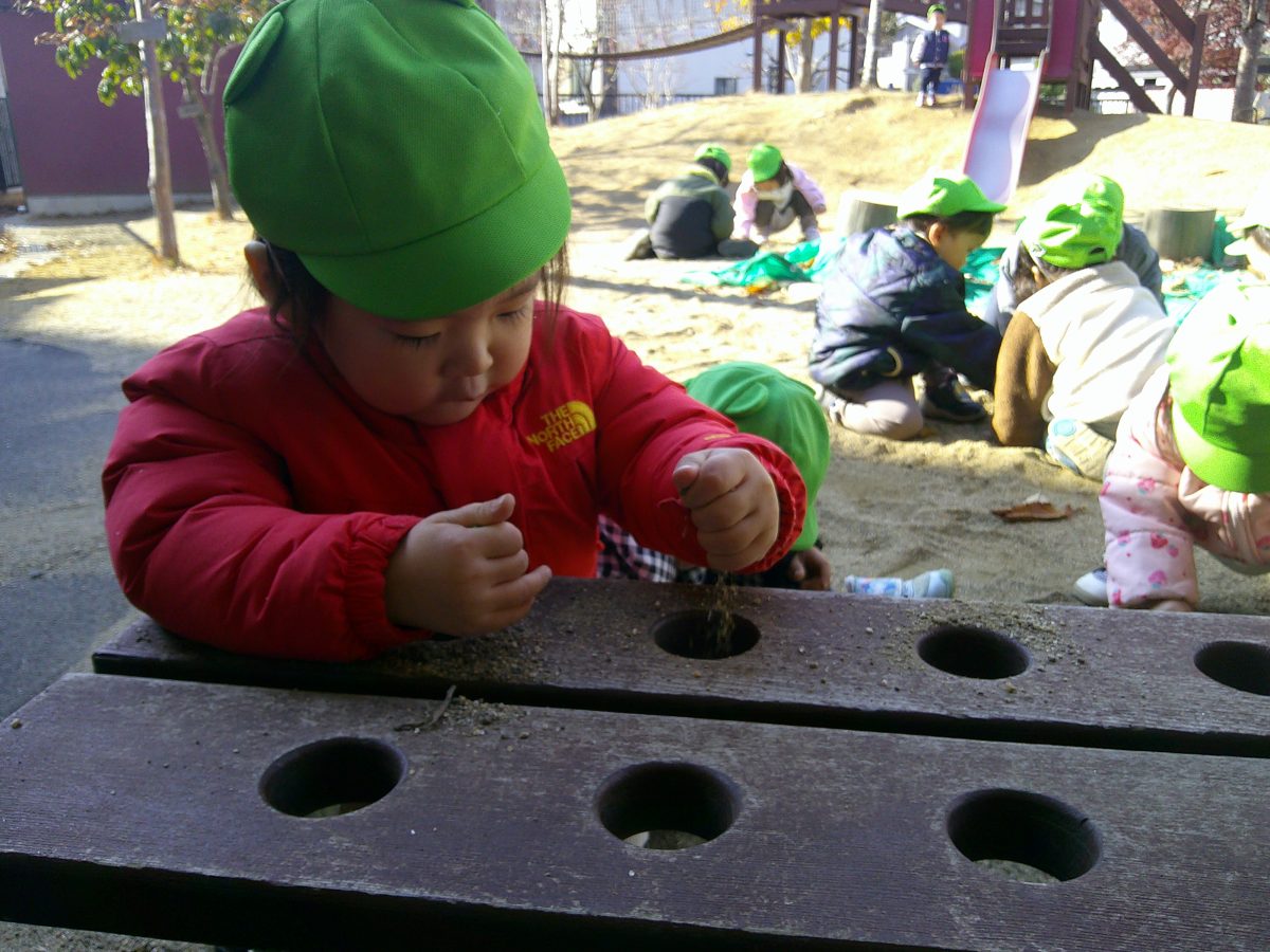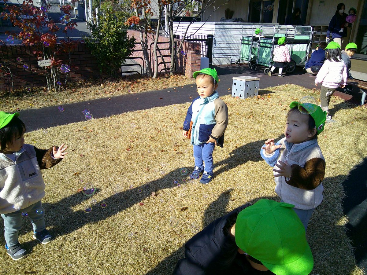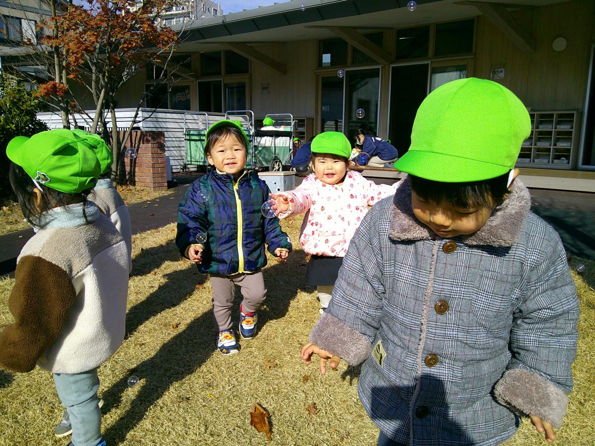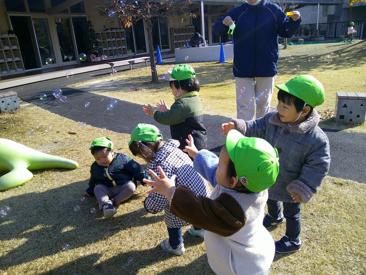 シャボン玉を追いかけたり、砂で顔を作ってみたり(!?)