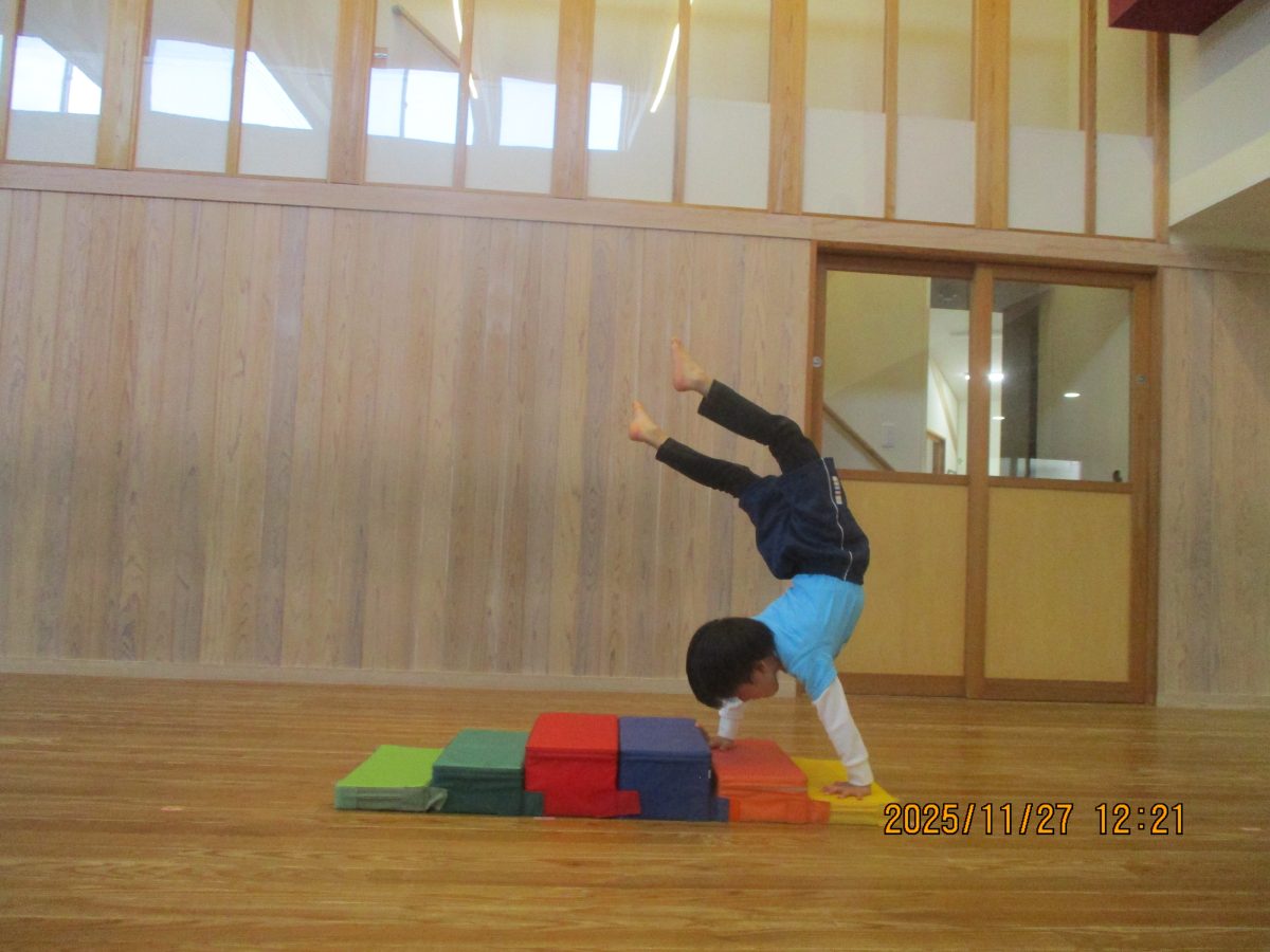 逆立ちより三転倒立より「跳び箱いつやんの?」と・・・。大好き過ぎます😅 それは午後の部で✋