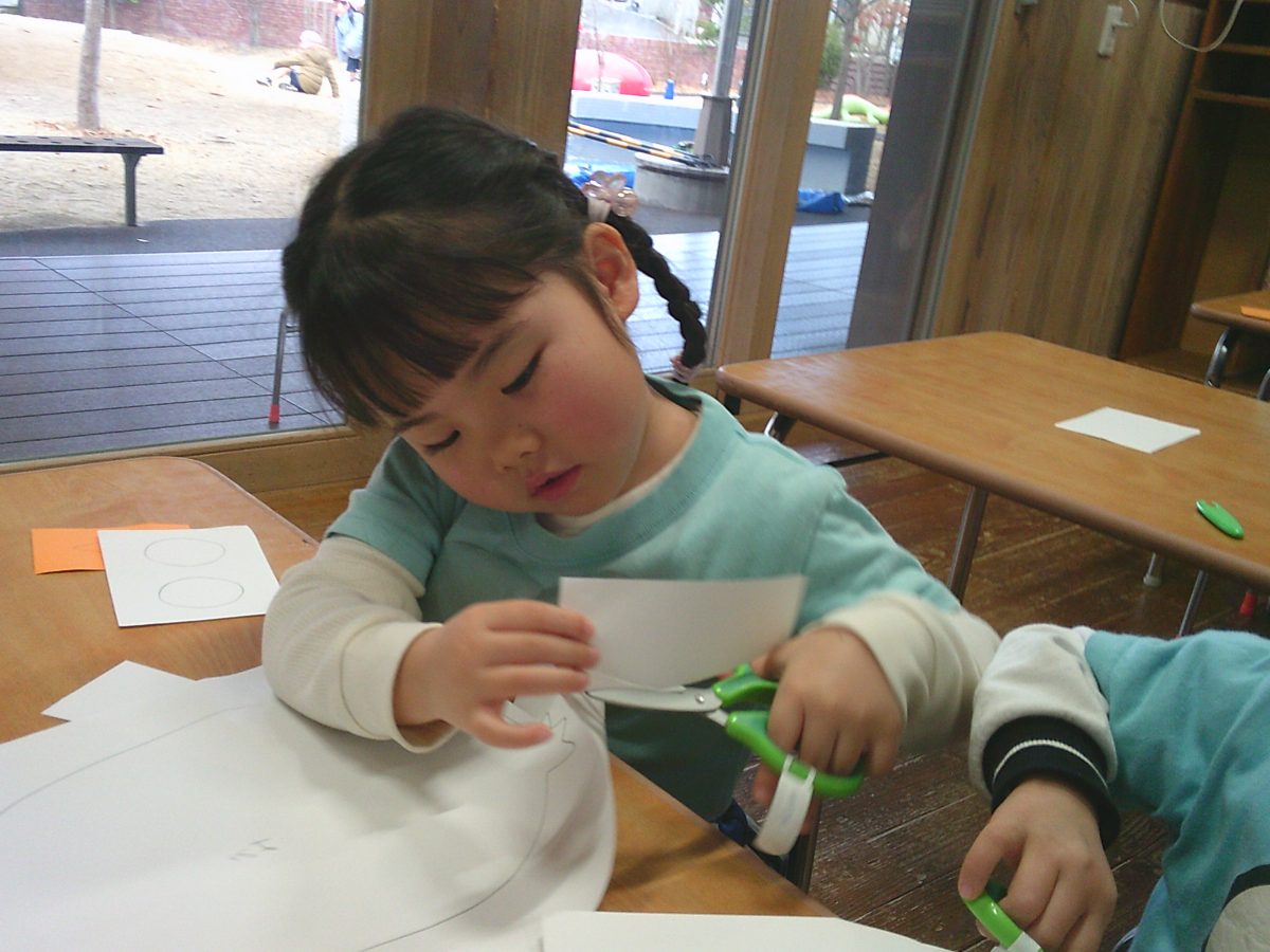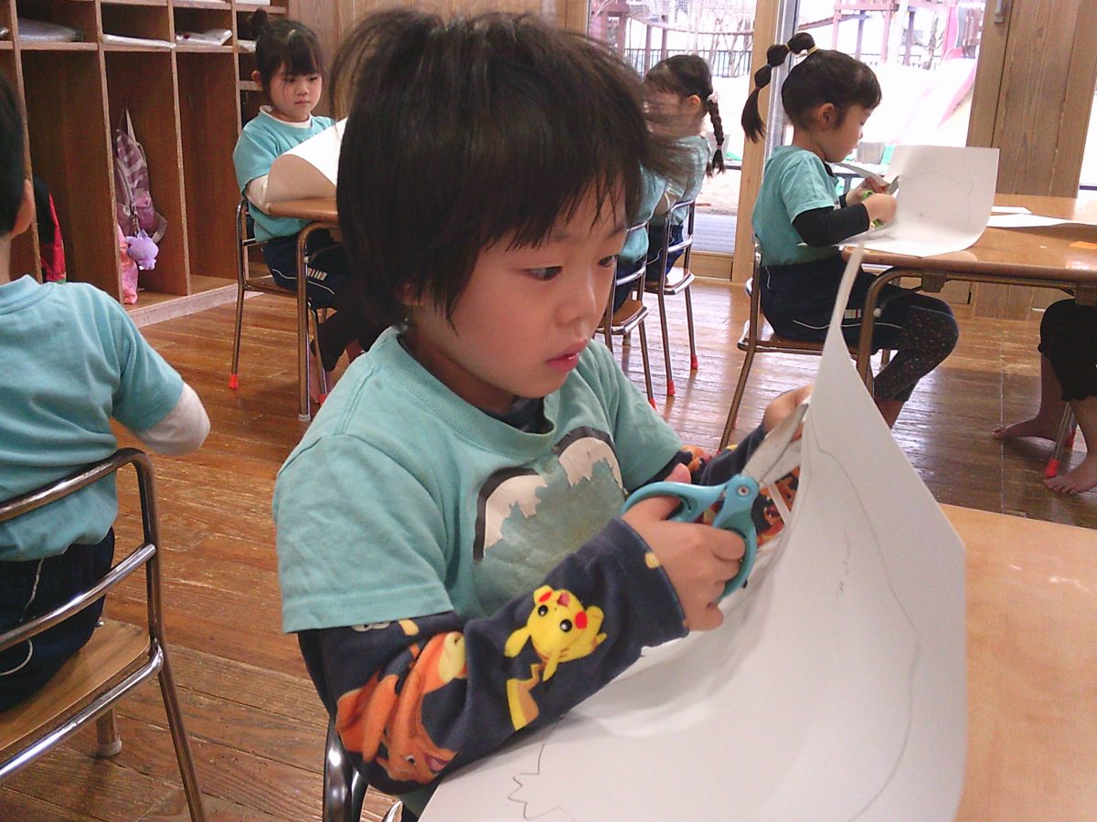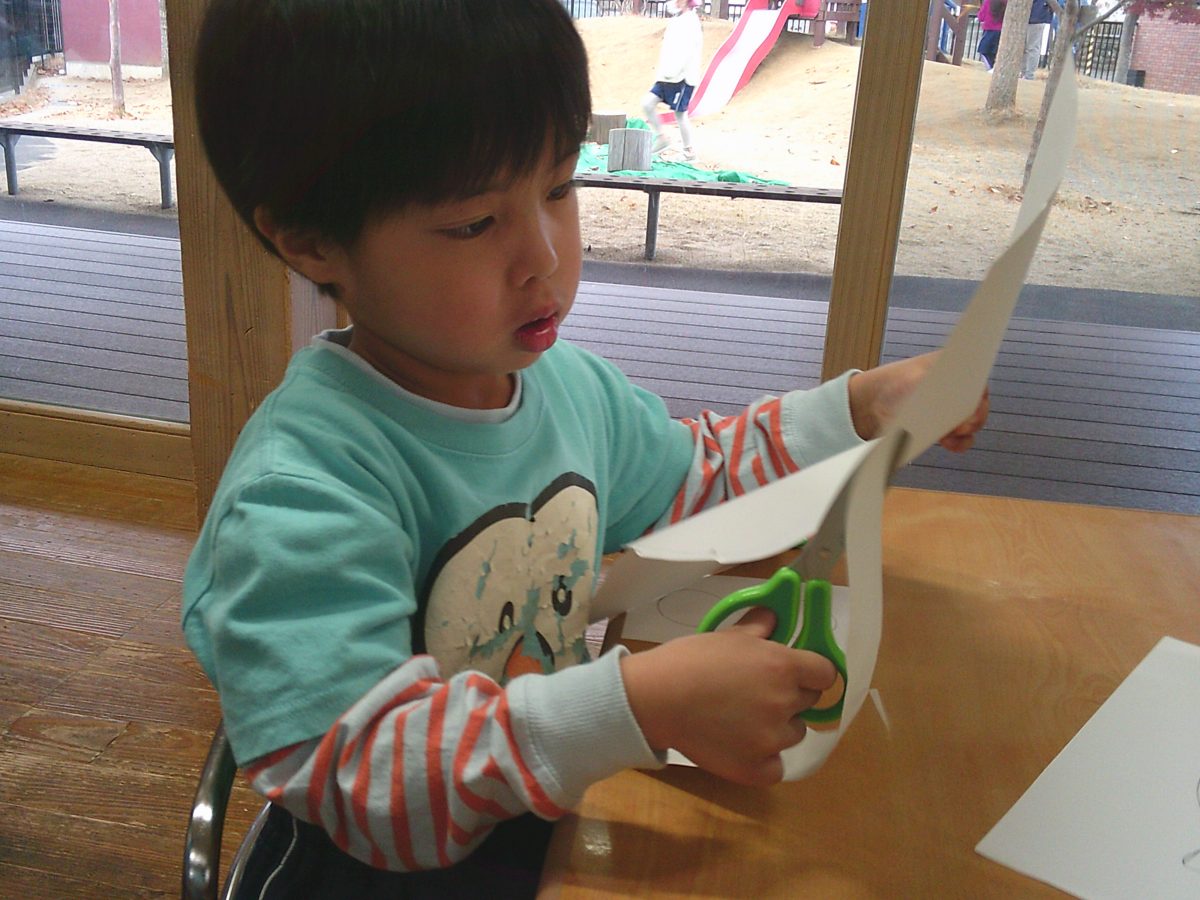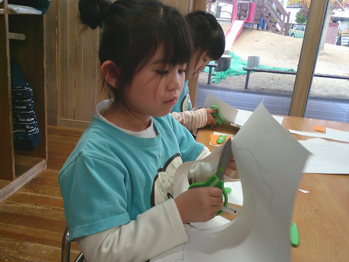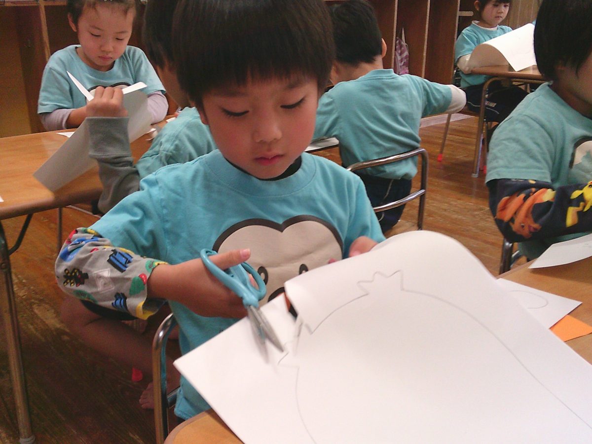 11月の製作ではふくろうの形に紙を切っていきました✄