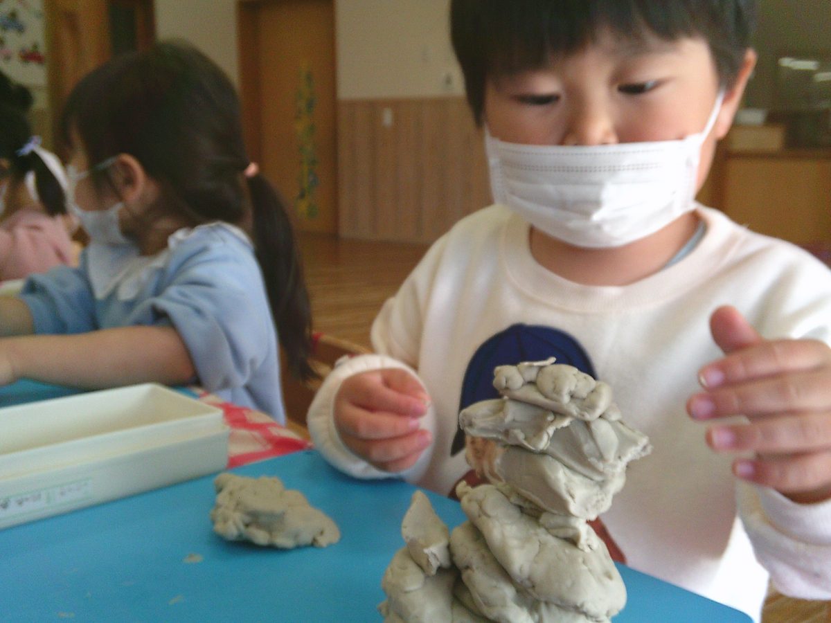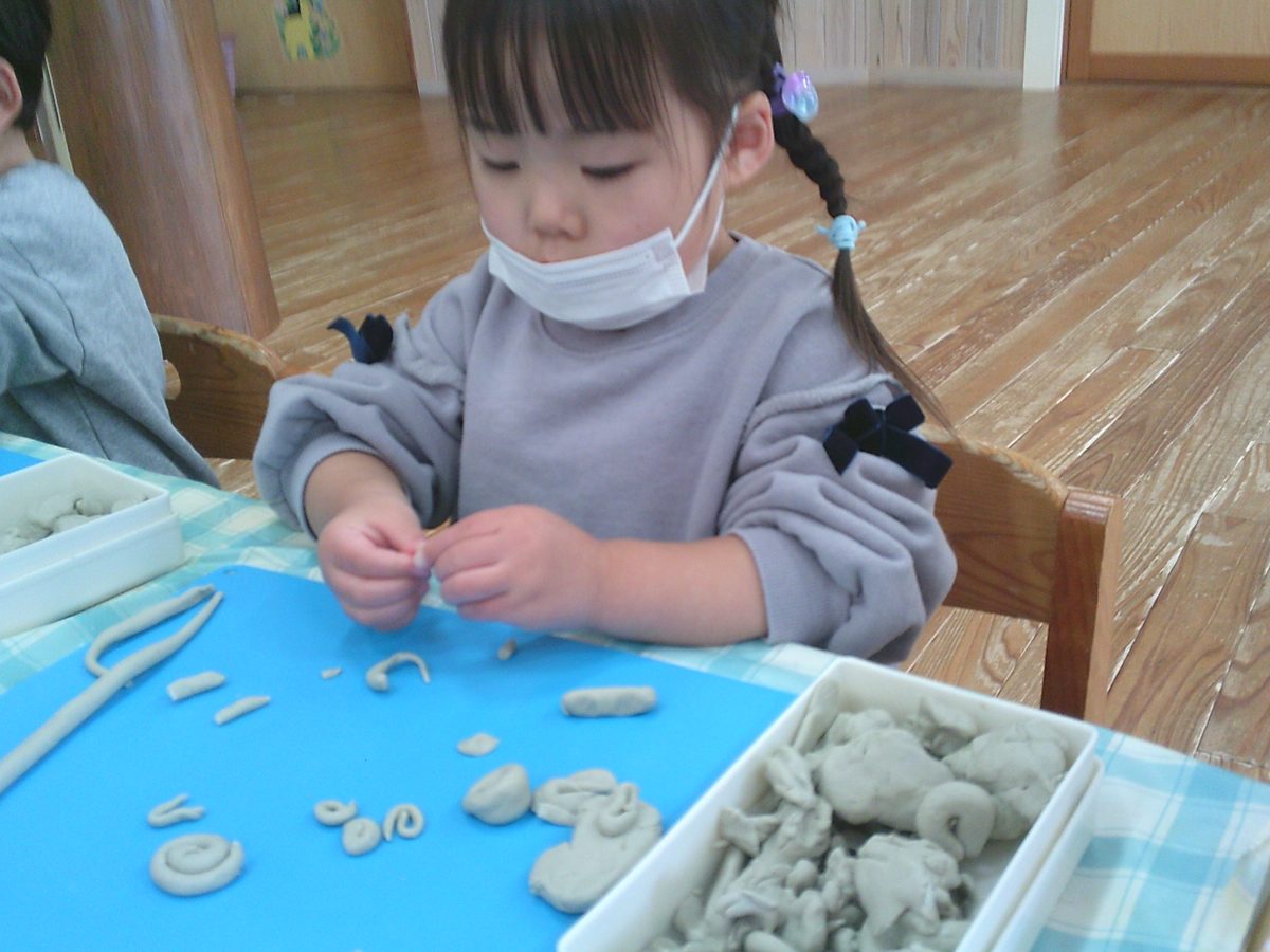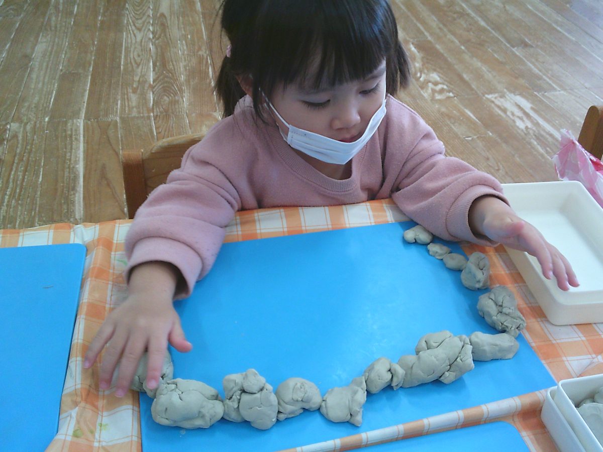 粘土あそびでは自分の好きな形を沢山つくっていた