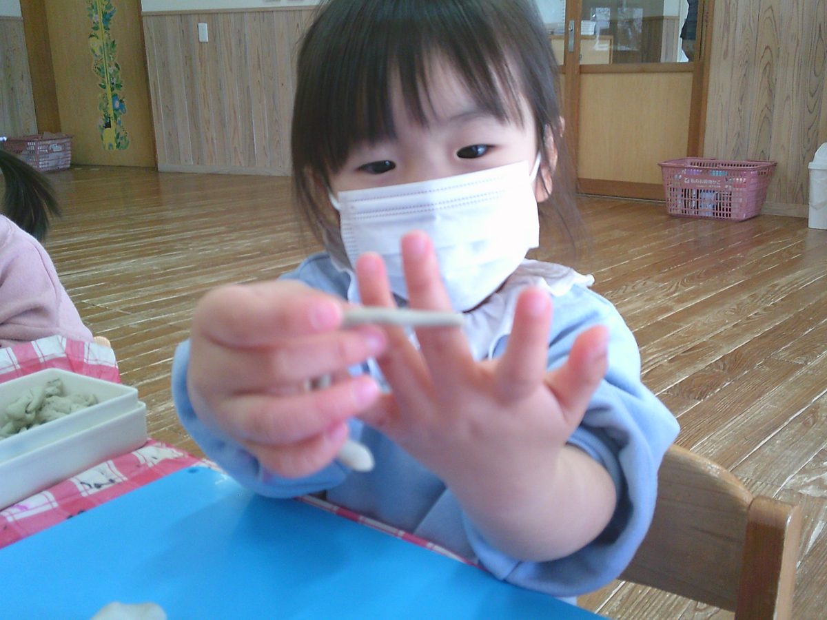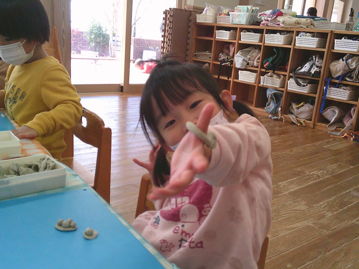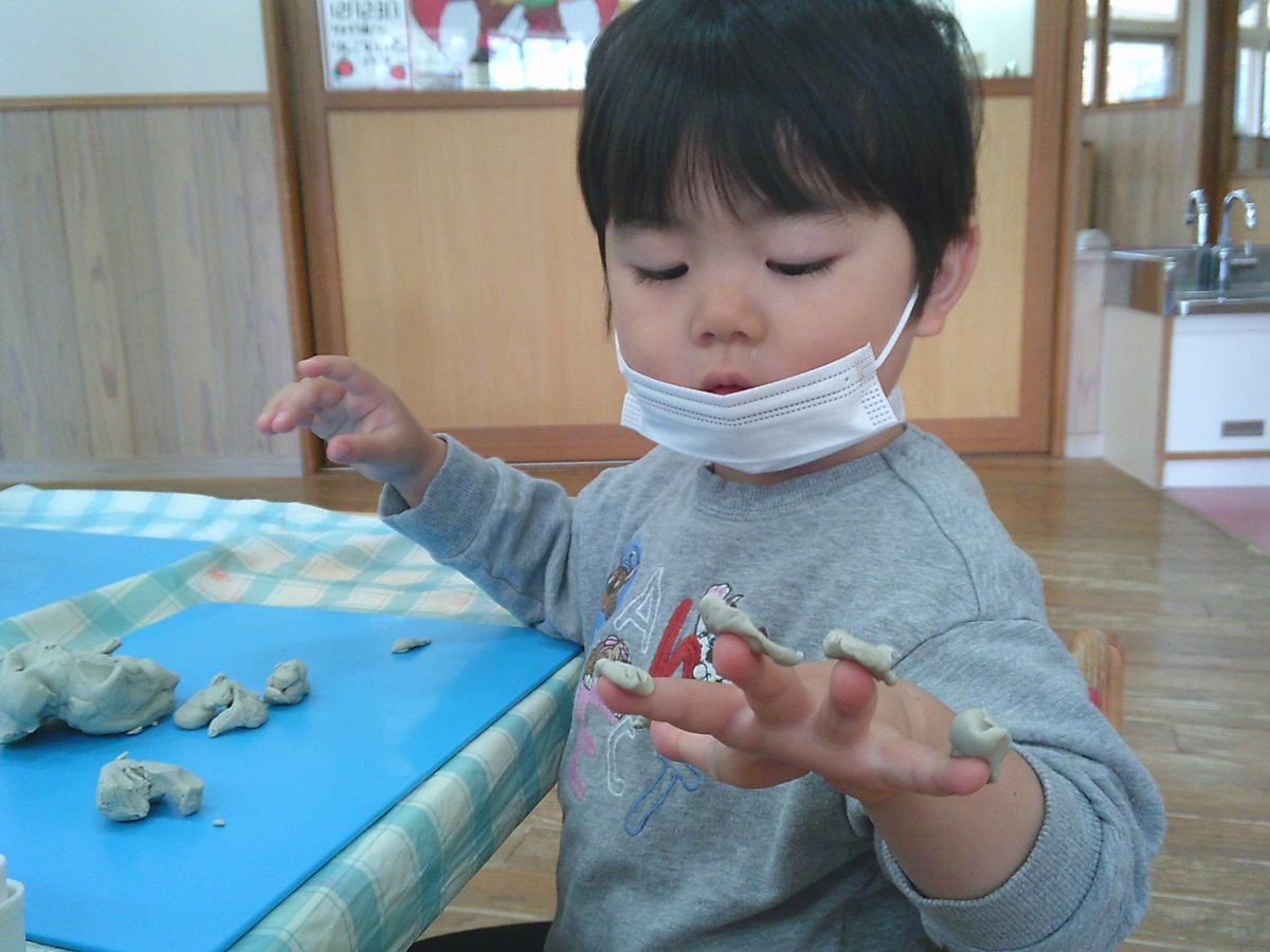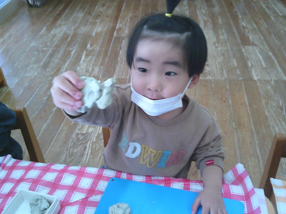 粘土あそびでは自分の好きな形を沢山つくっていた