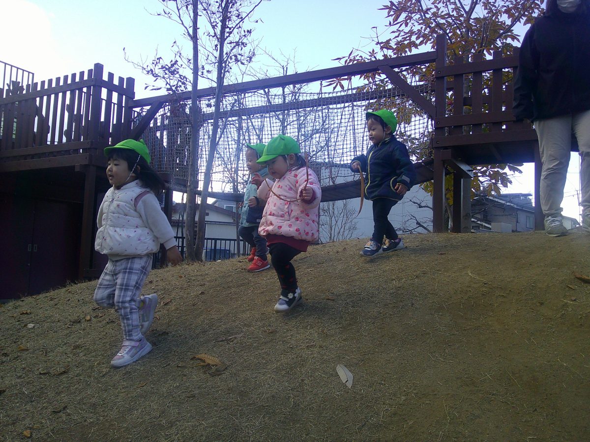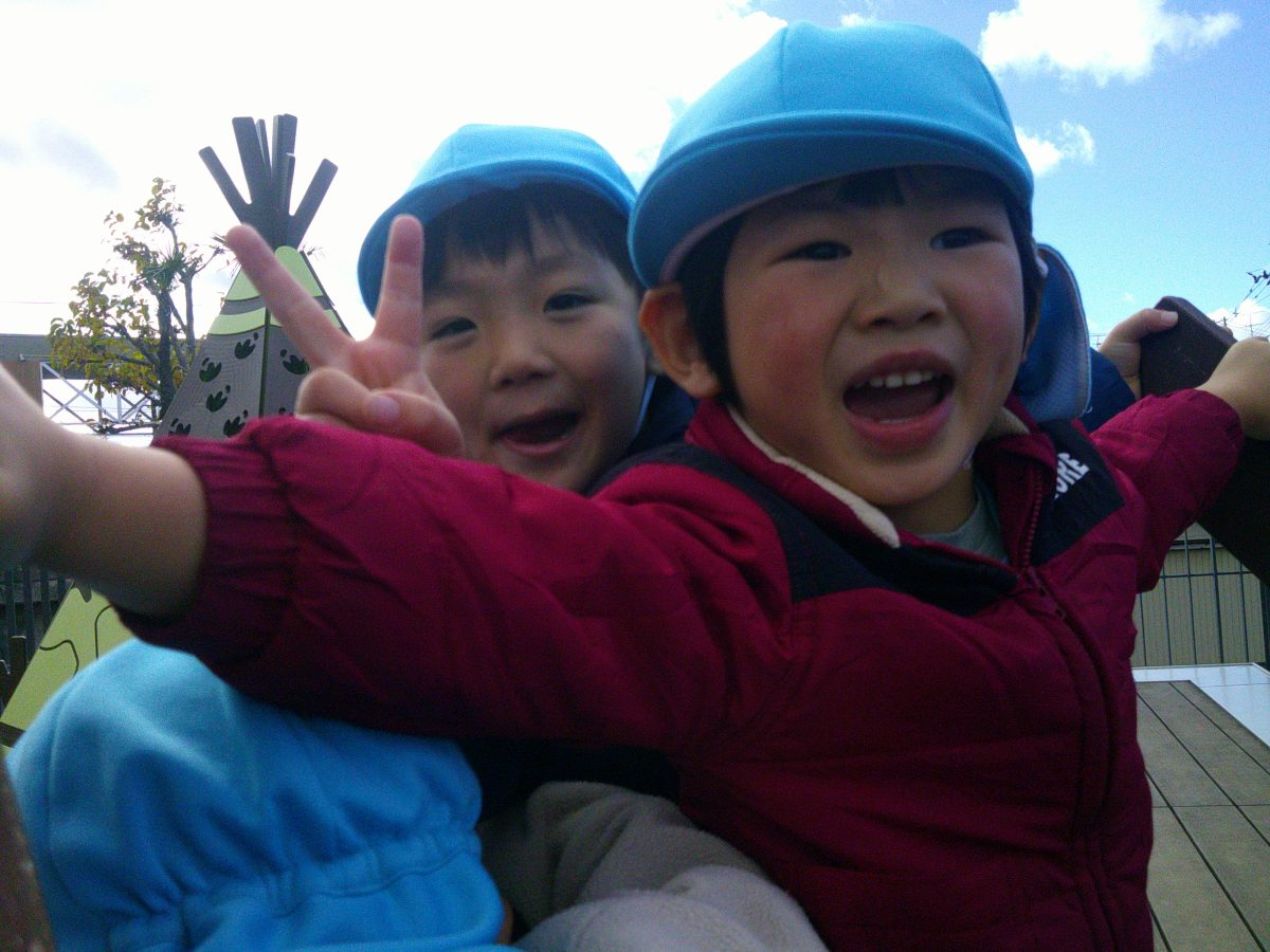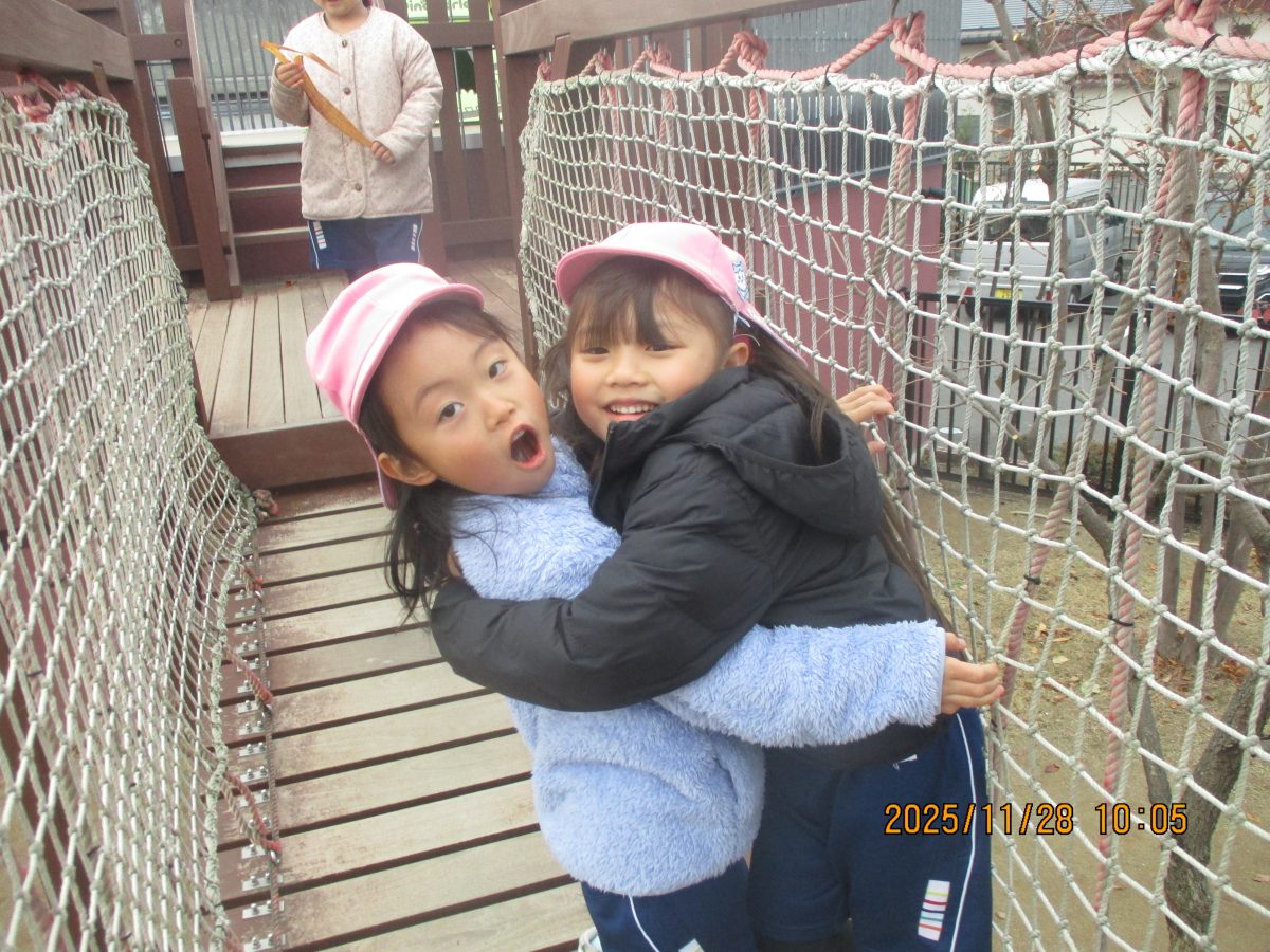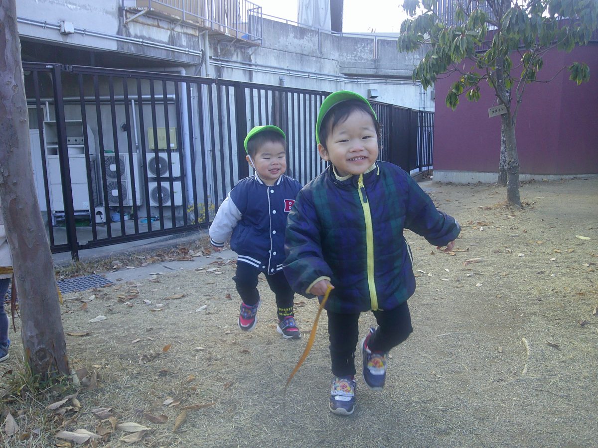 北風びゅーびゅー🌀でしたが、全く気にすることなく園庭遊びを楽しむ子どもたちです😅