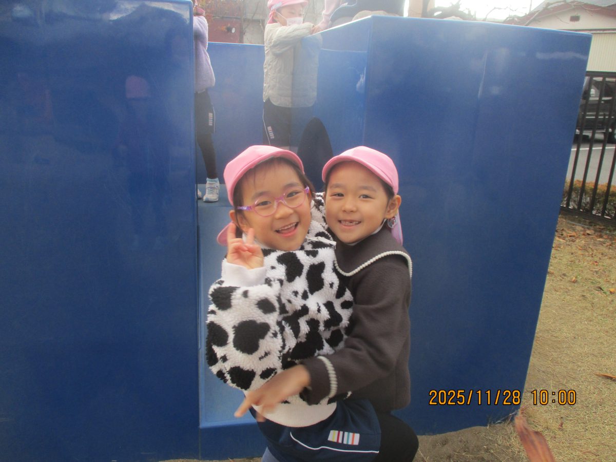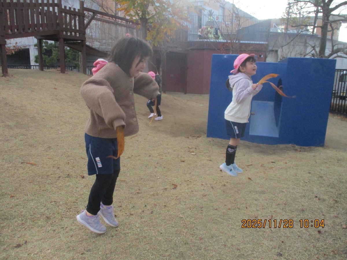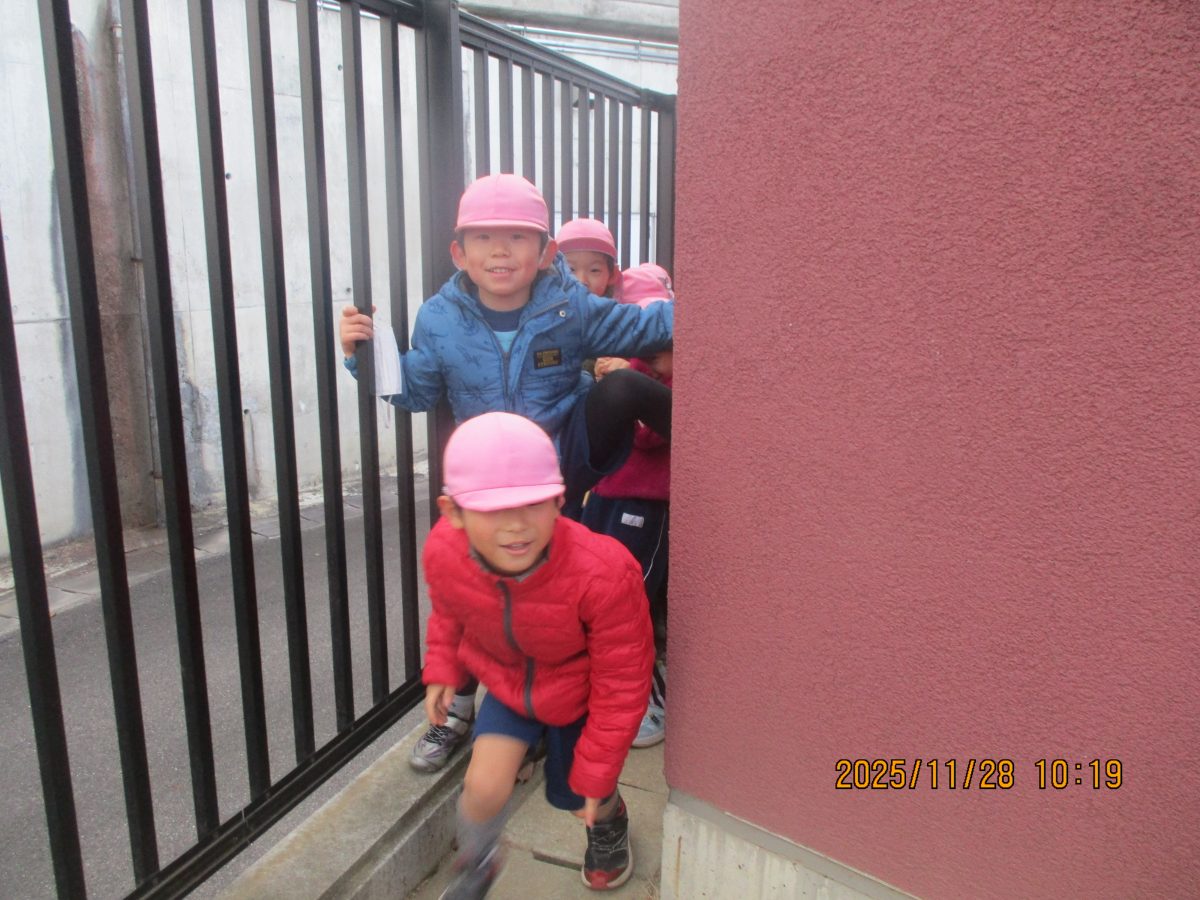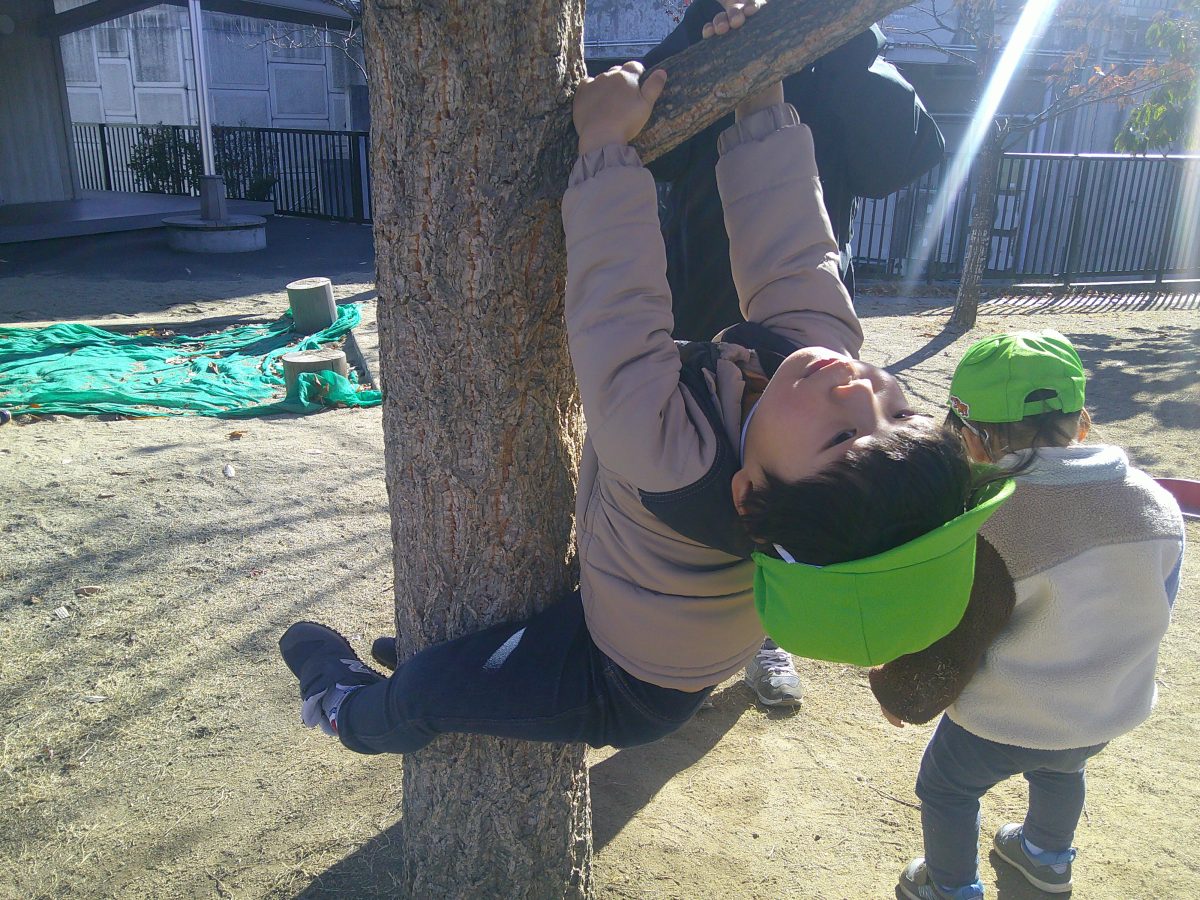 北風びゅーびゅー🌀でしたが、全く気にすることなく園庭遊びを楽しむ子どもたちです😅