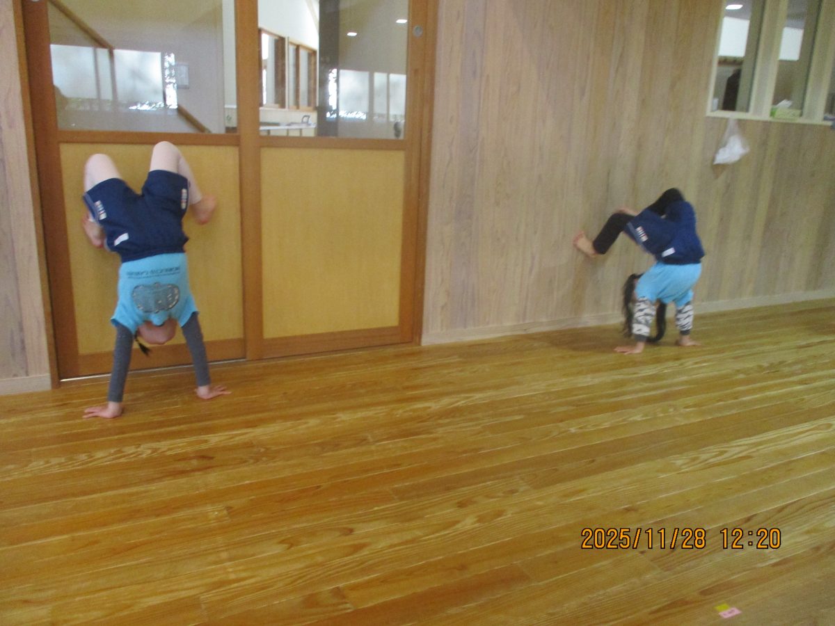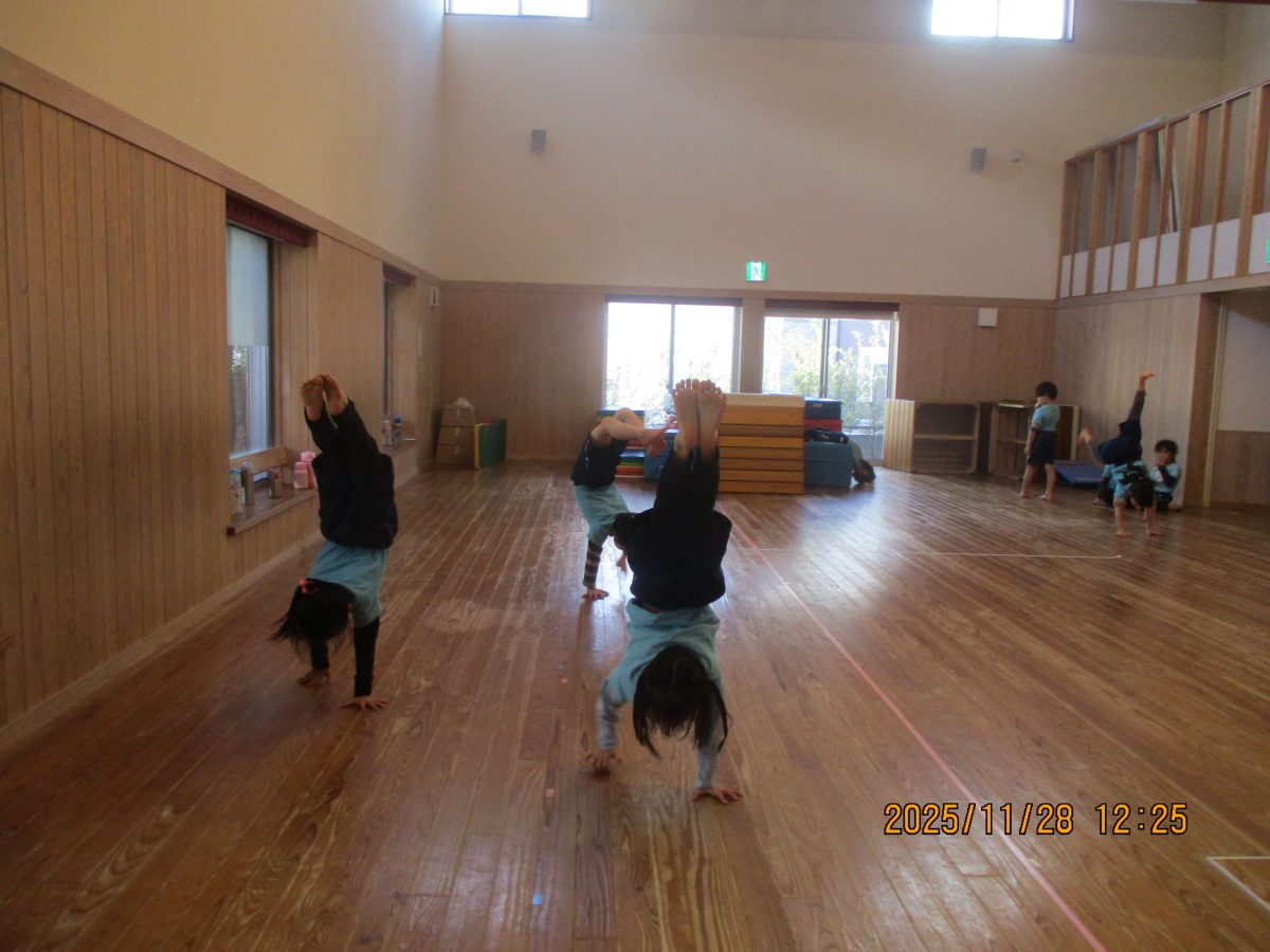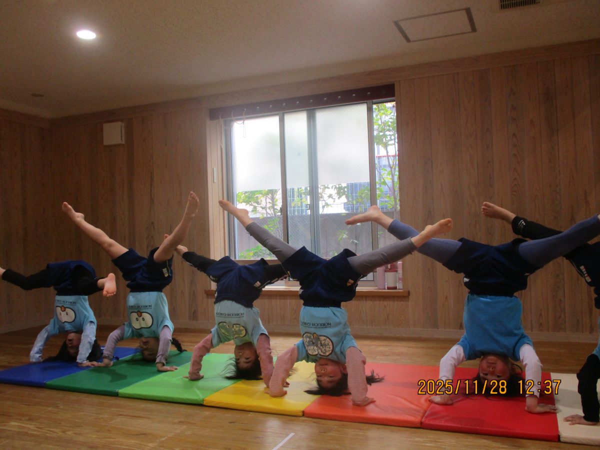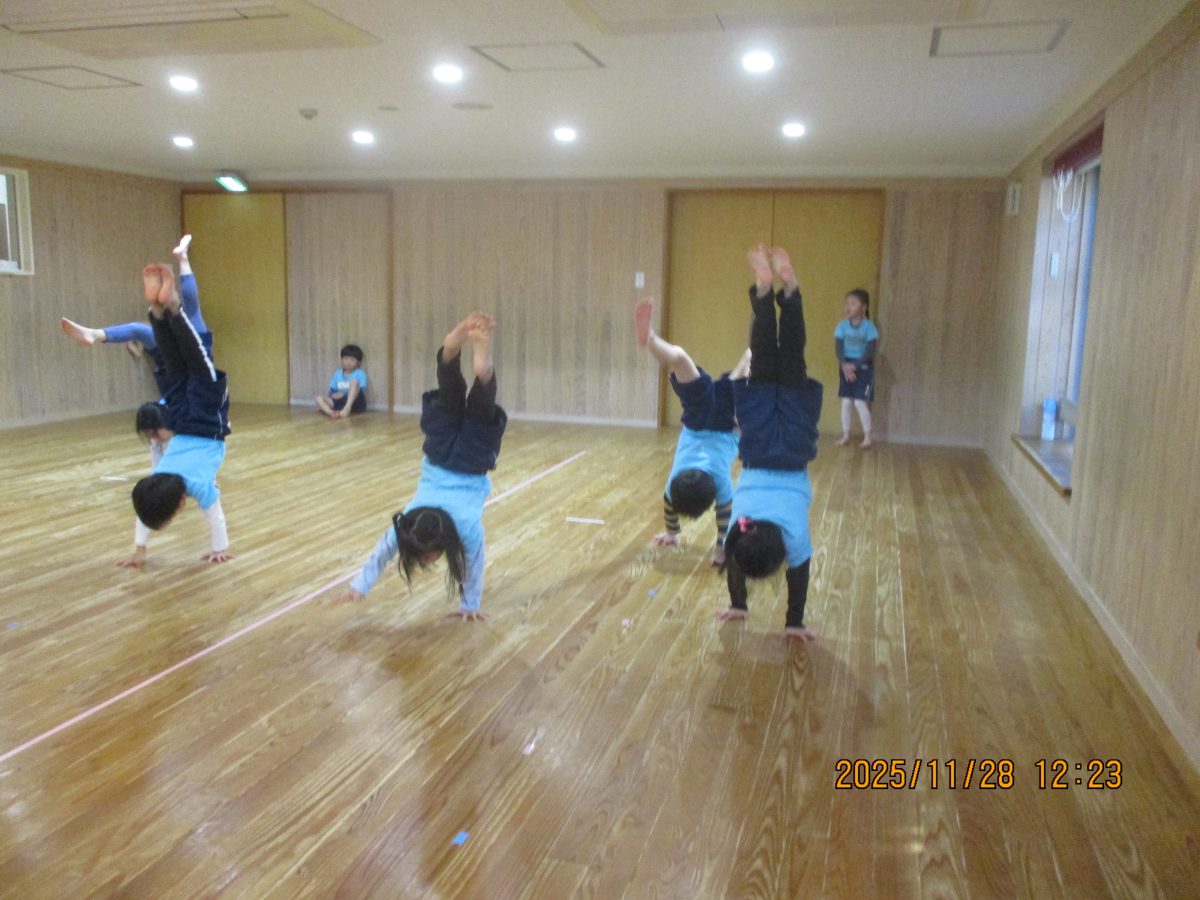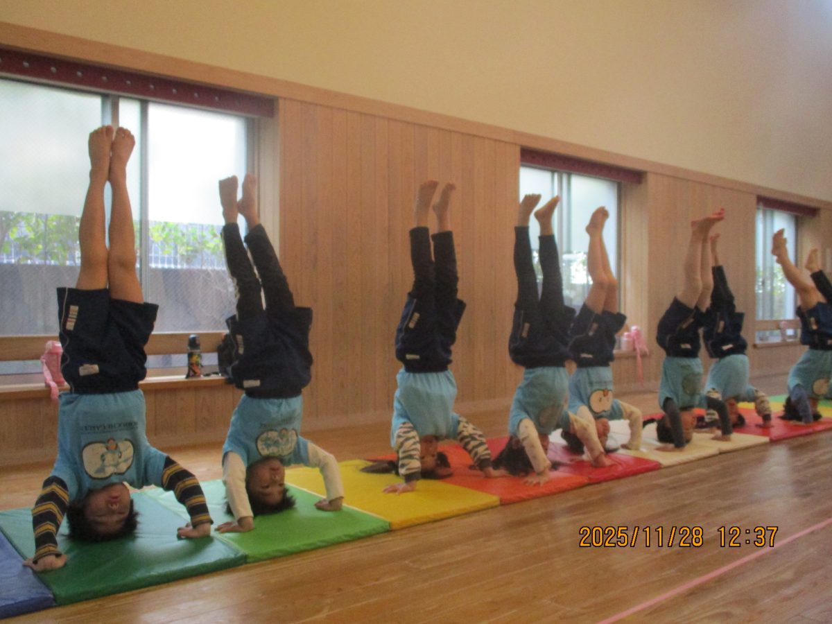 体操時間では壁逆立ちは勿論、逆立ち歩き、跳び箱も頑張ったよ💕