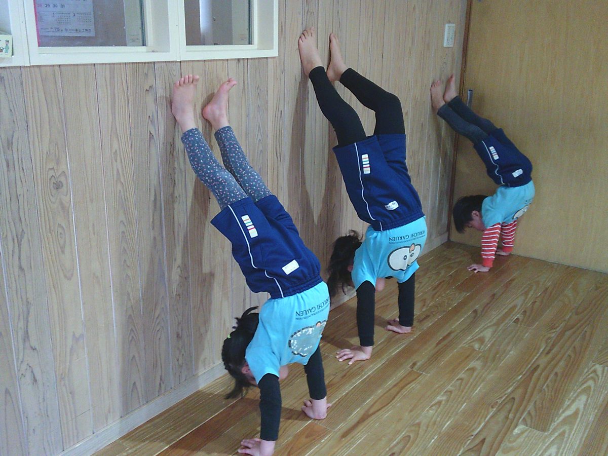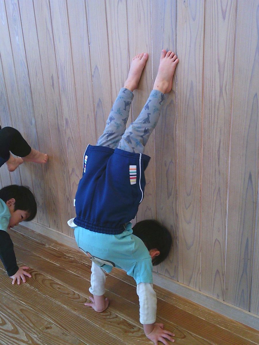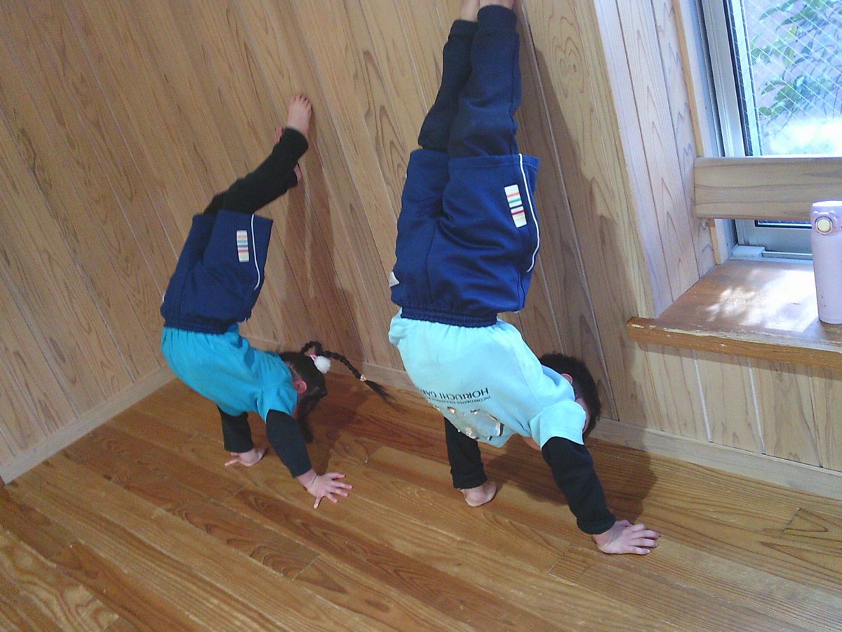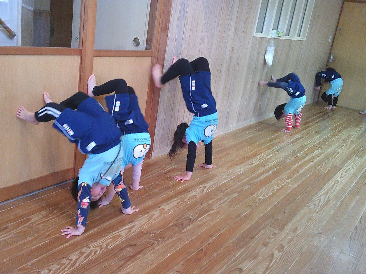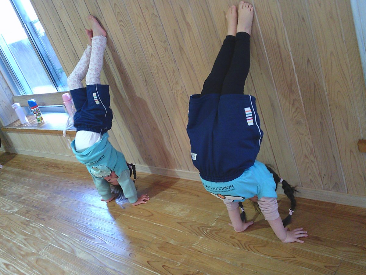 カニ歩き、壁逆立ち😏