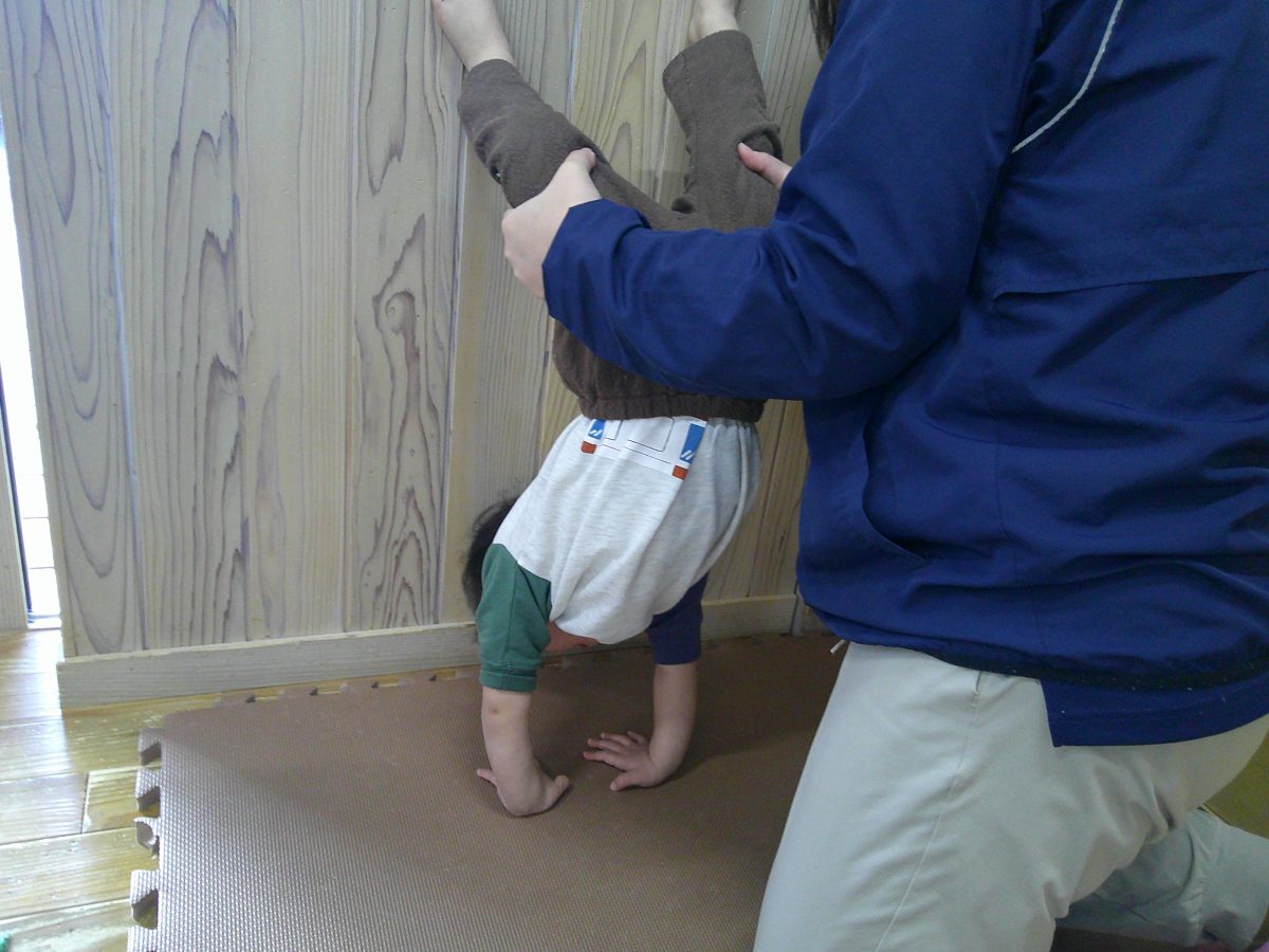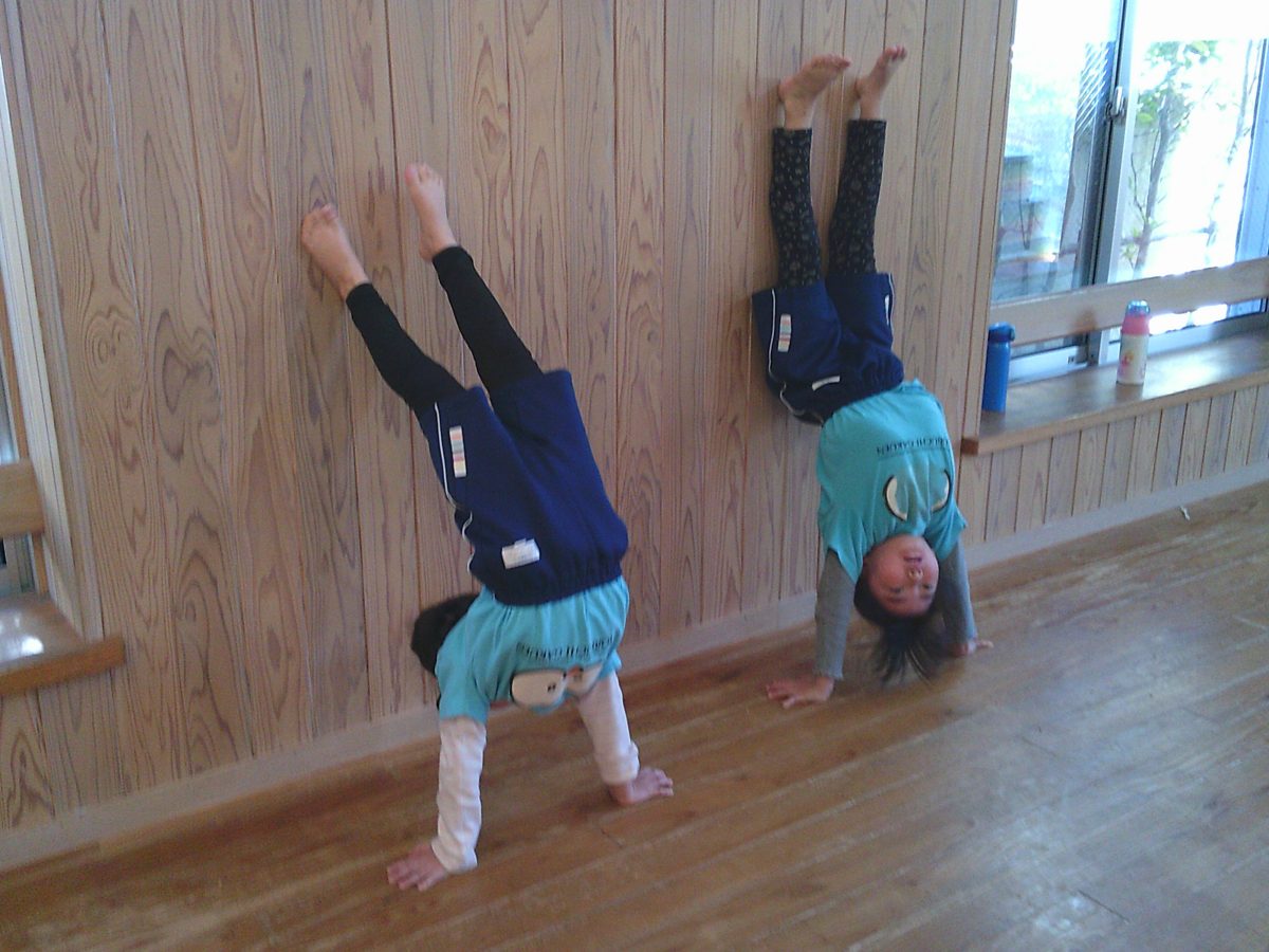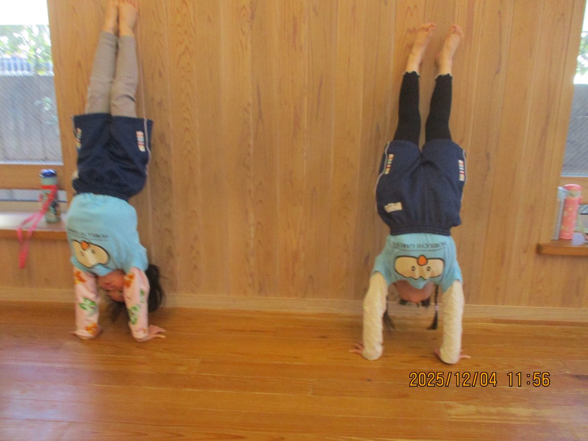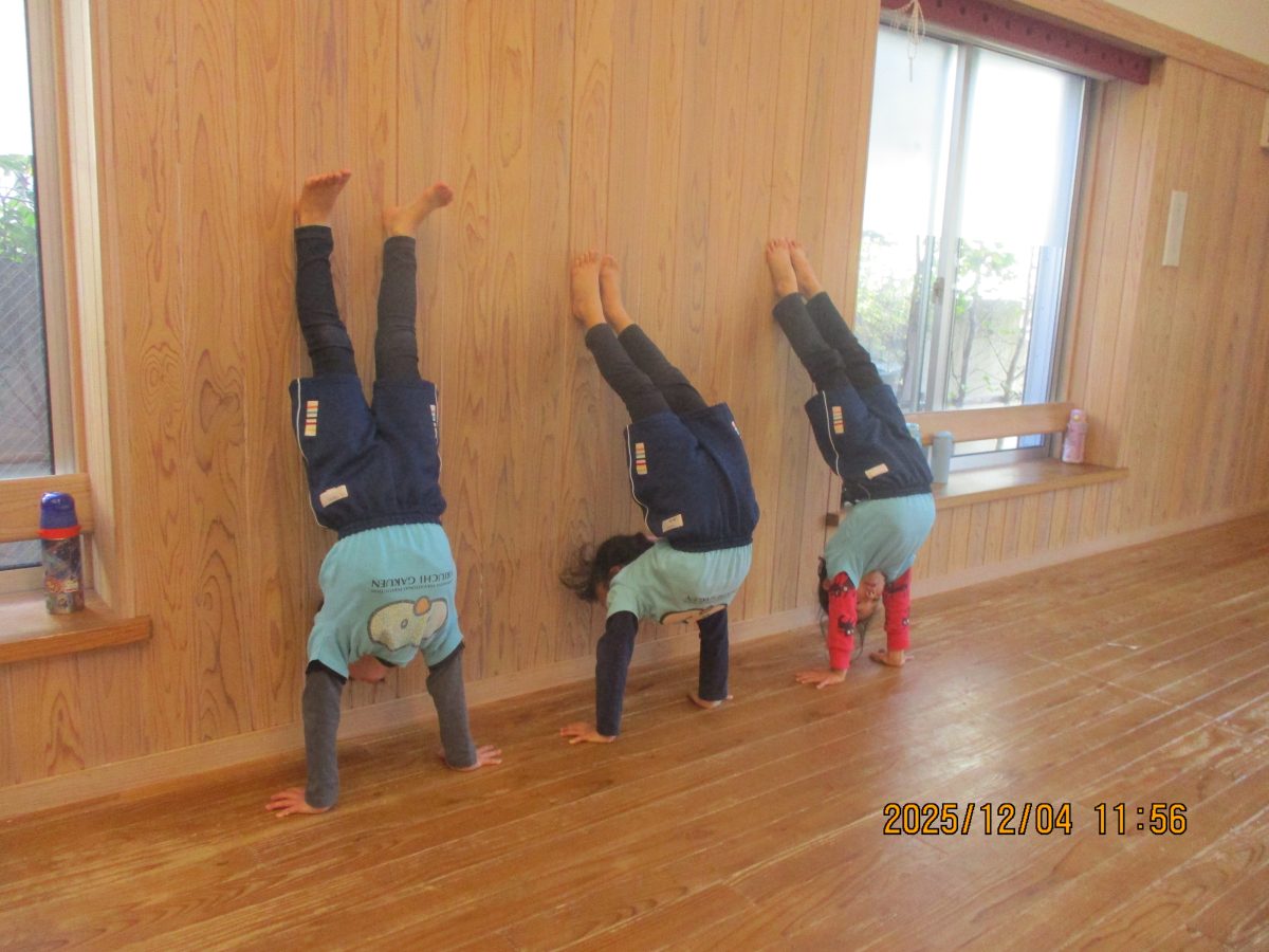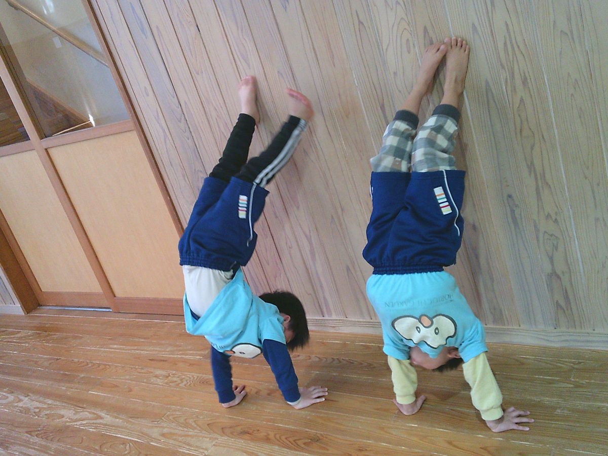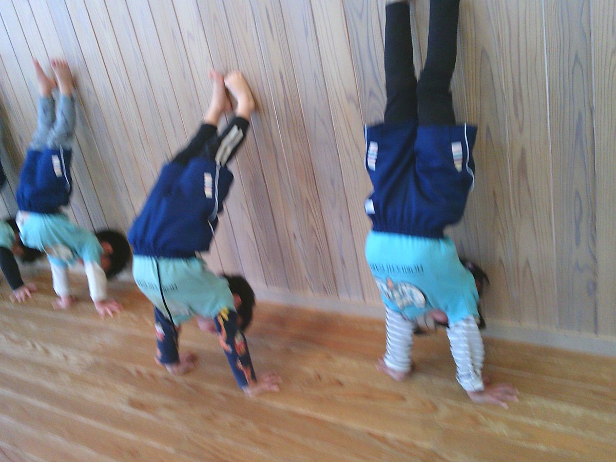 カニ歩き、壁逆立ち😏