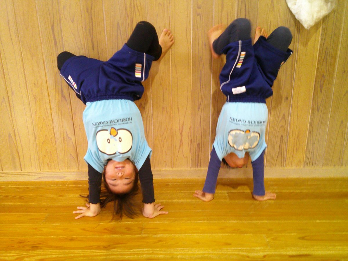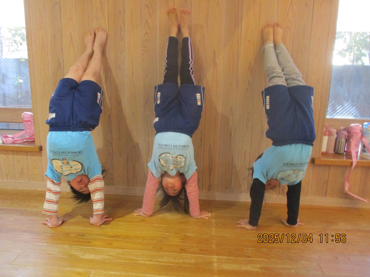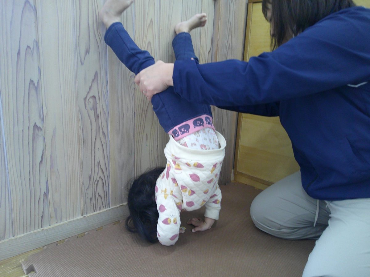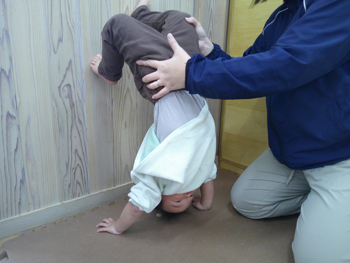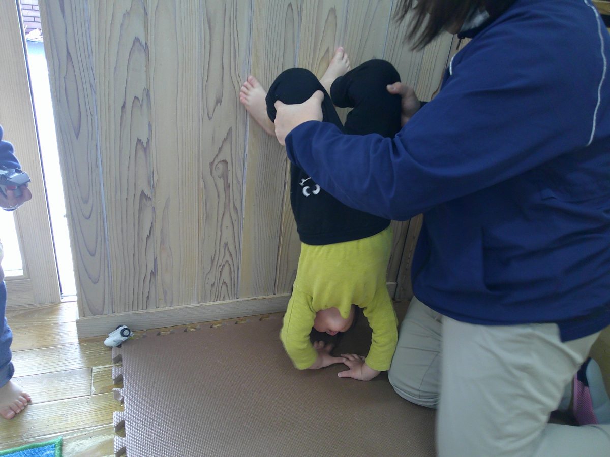 カニ歩き、壁逆立ち😏