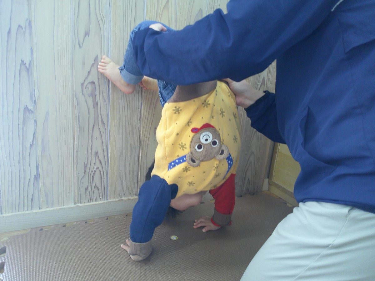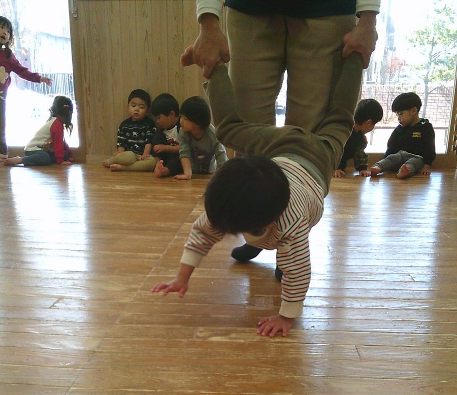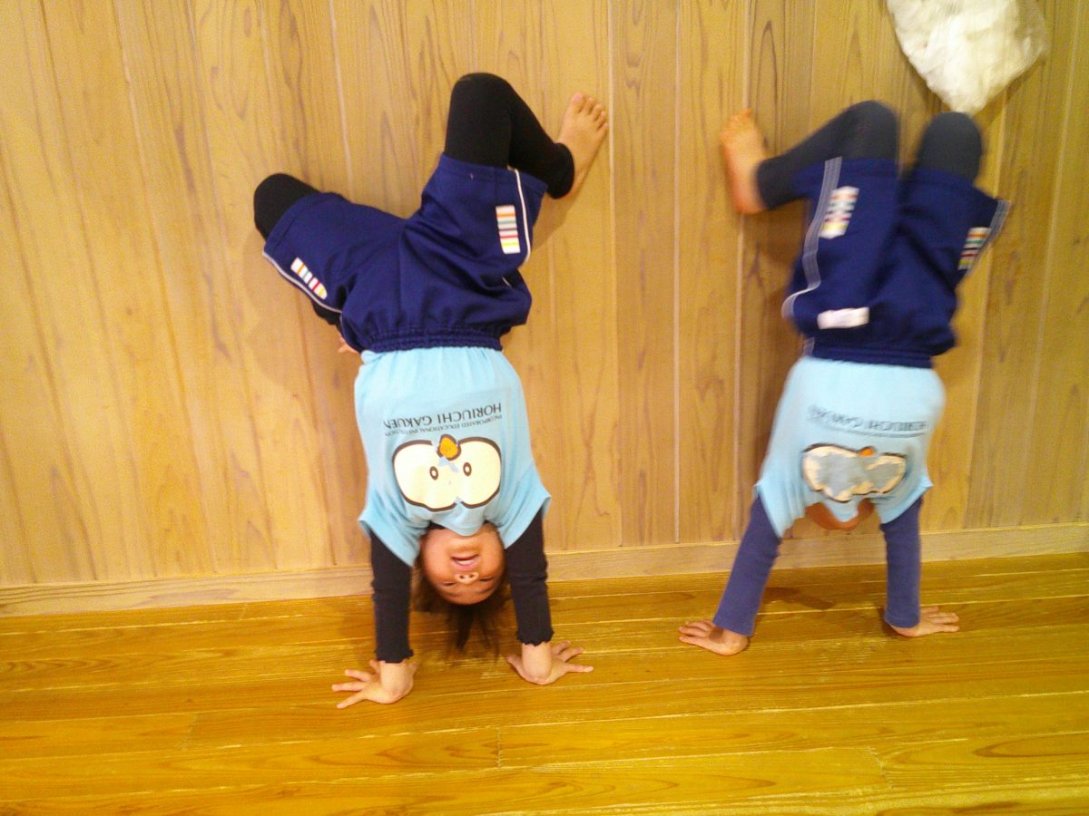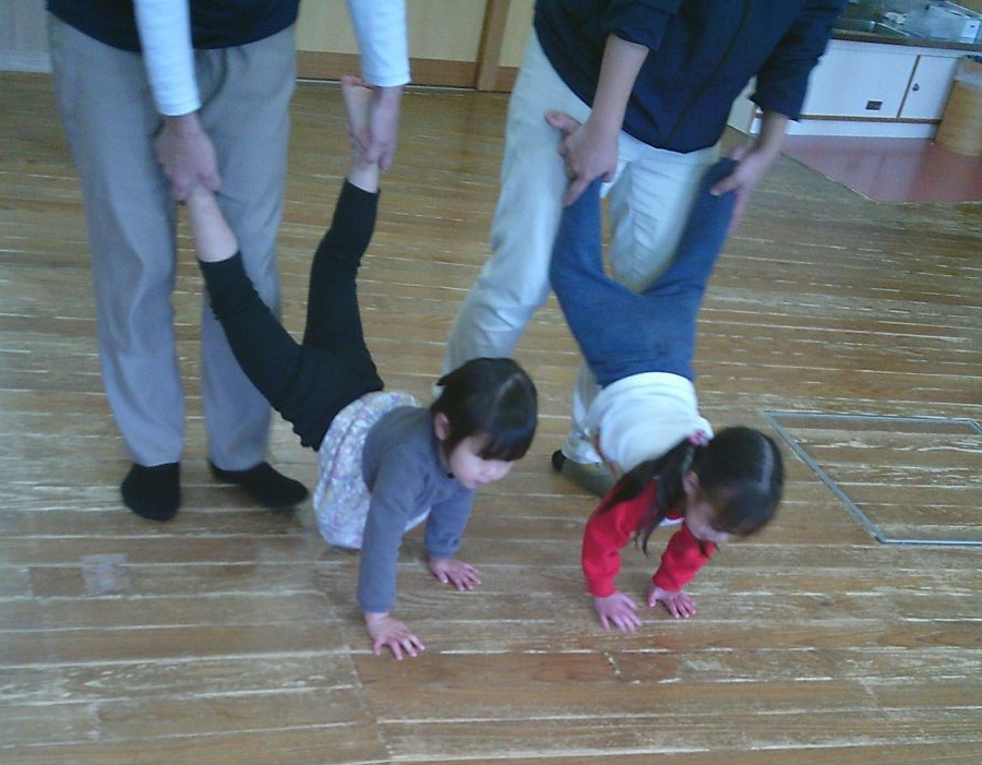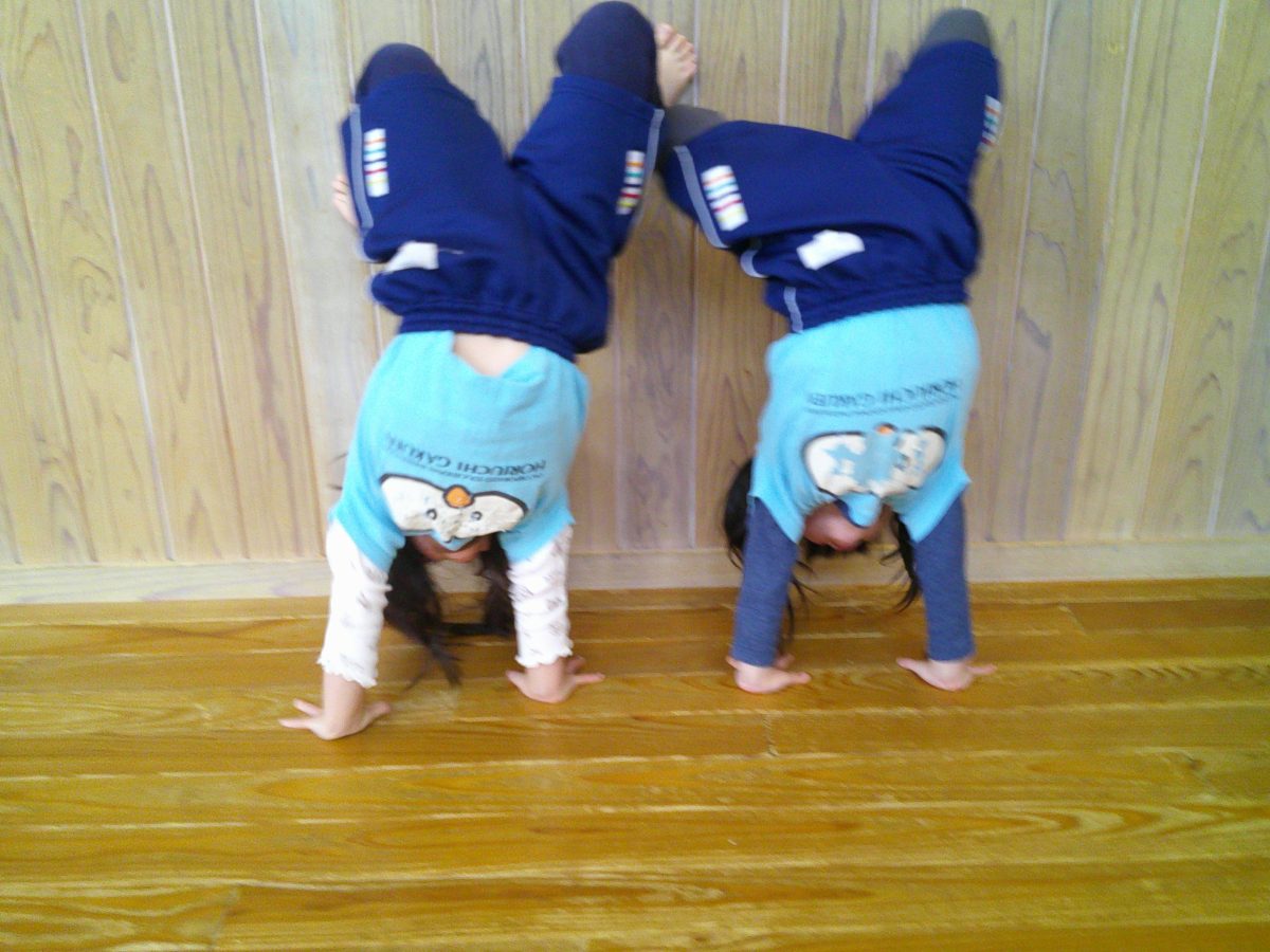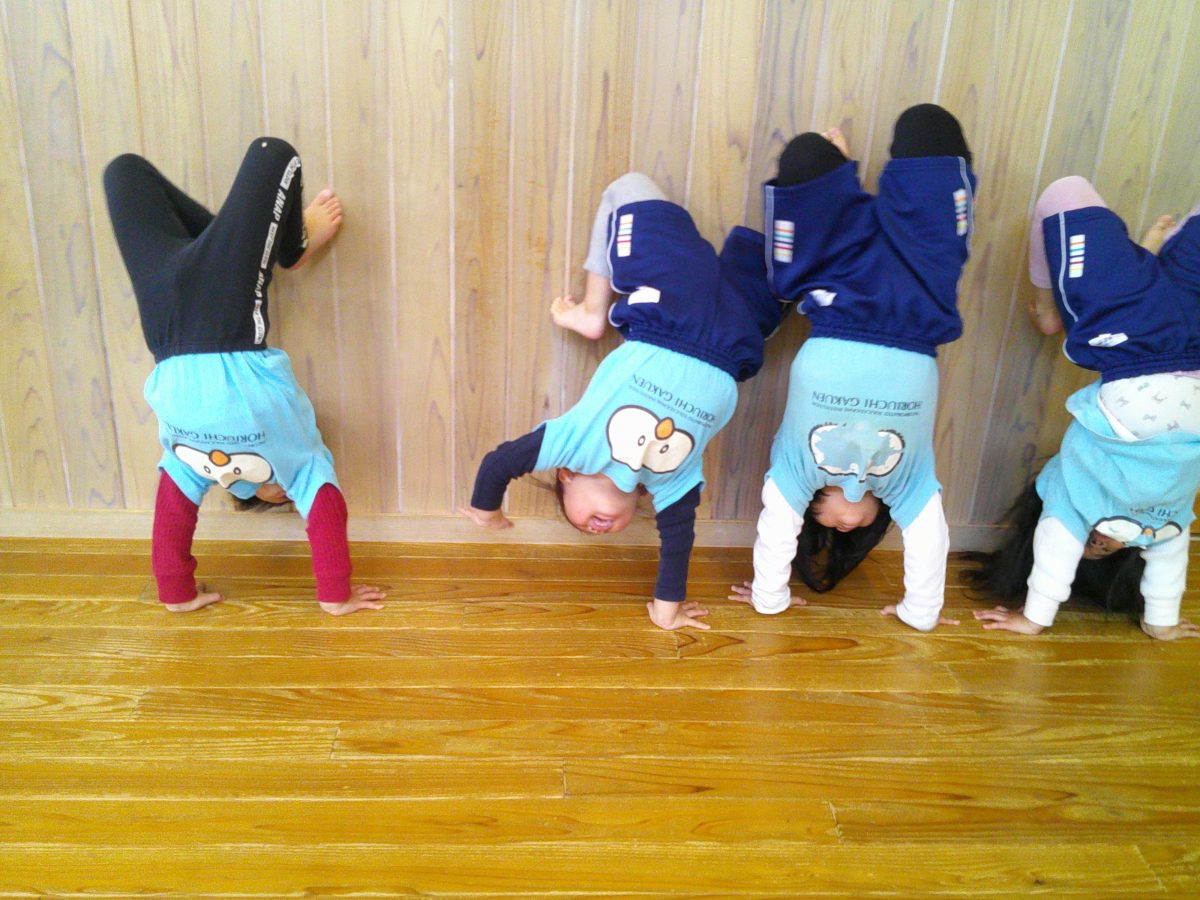 カニ歩き、壁逆立ち😏