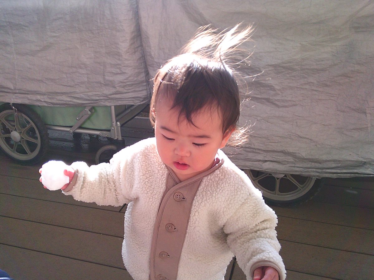 少し雪があったので、丸めて雪合戦!!!戦いだ!!!