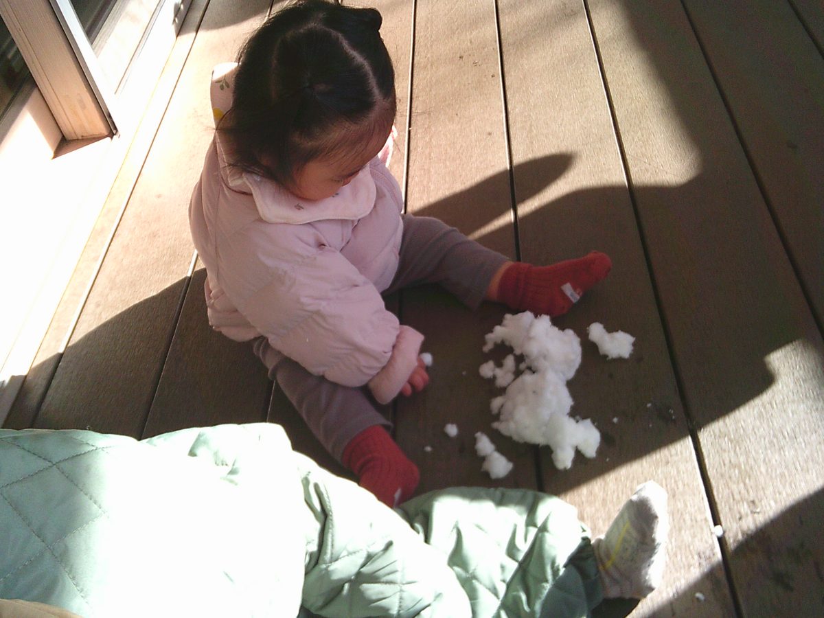 雪が降ったので、初雪に触ってみました🎵